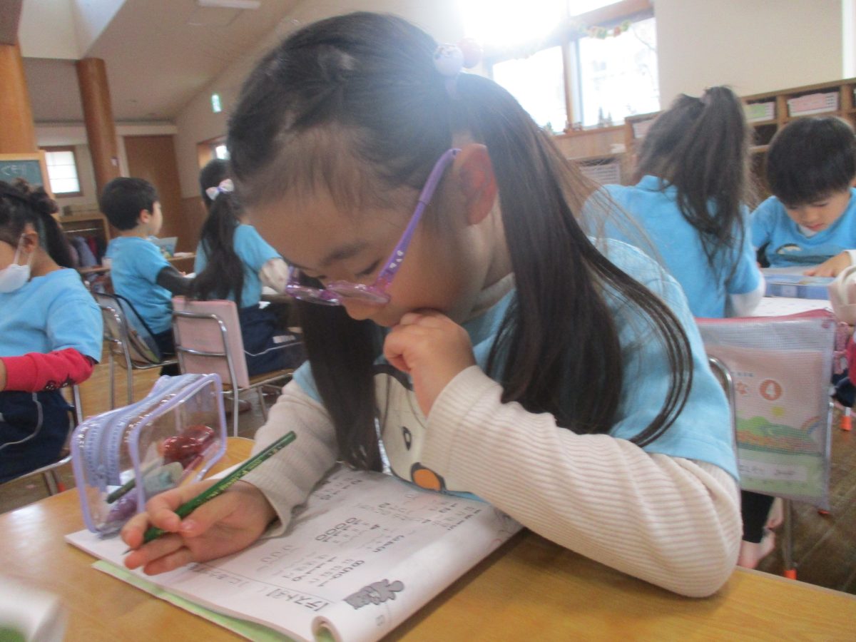 ワークも一生懸命頑張ったよ!!線からはみ出さず・・・・描く事ができました~💕