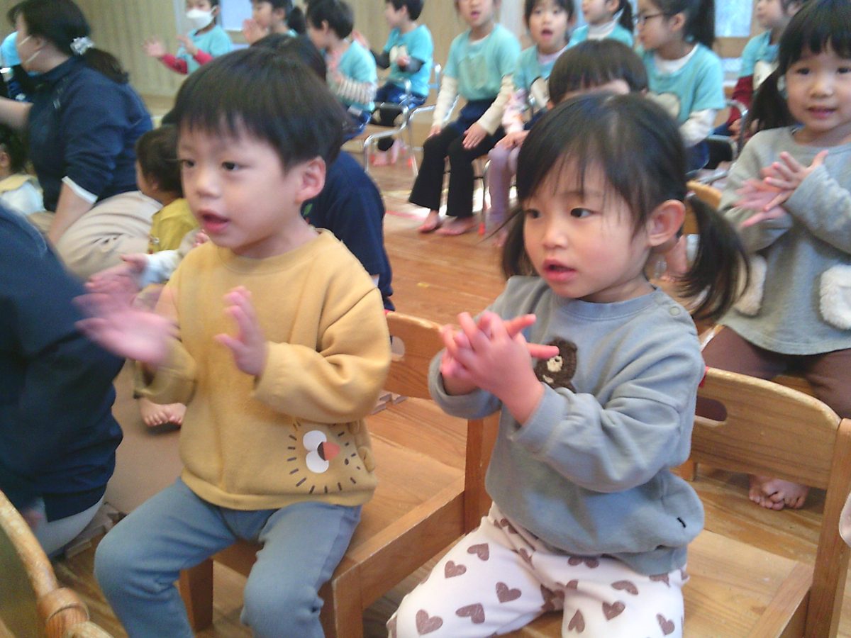 ハッピーバースデーの歌に合わせて体を揺らしたり、手拍子をして楽しみました😊💕