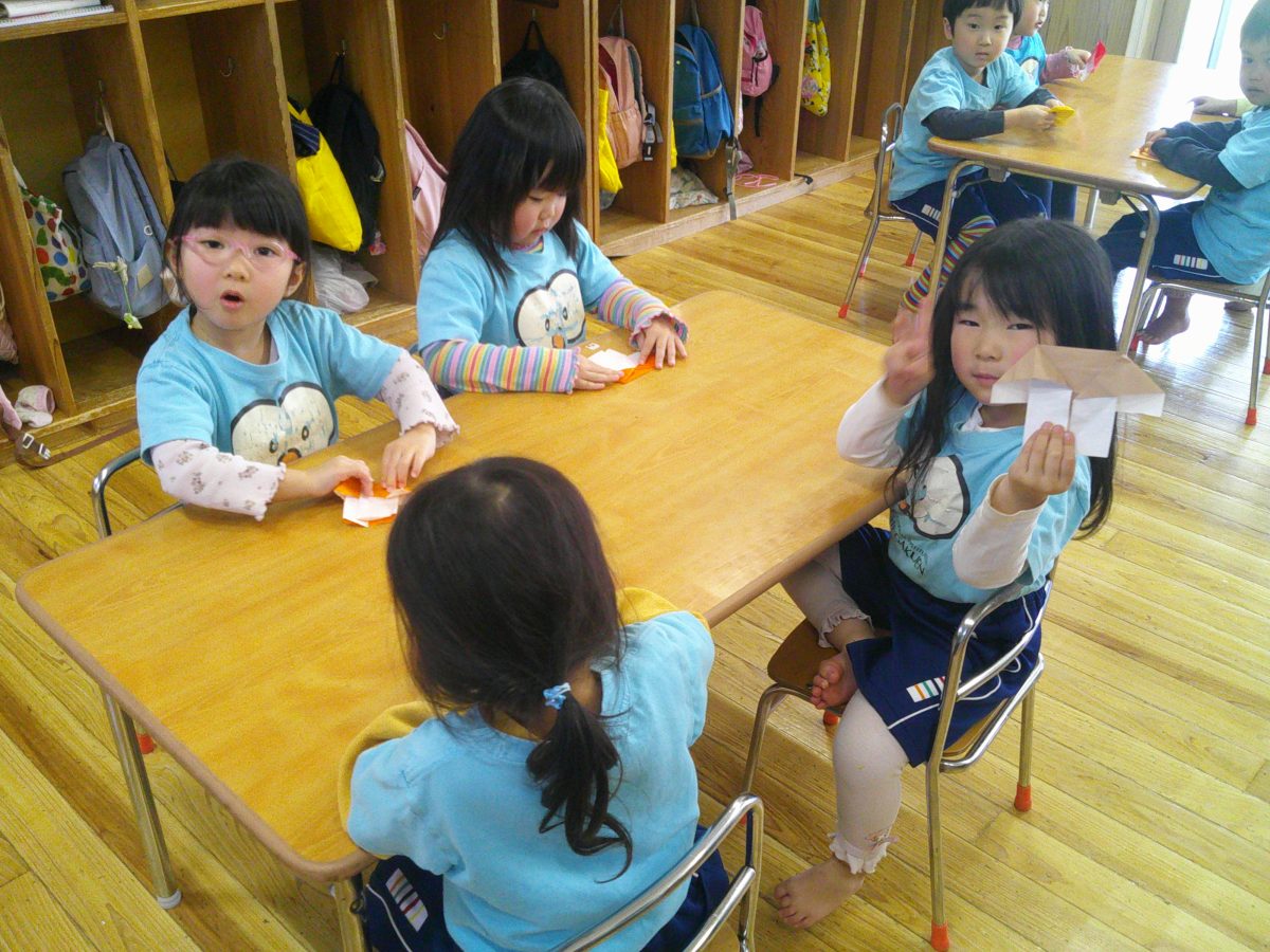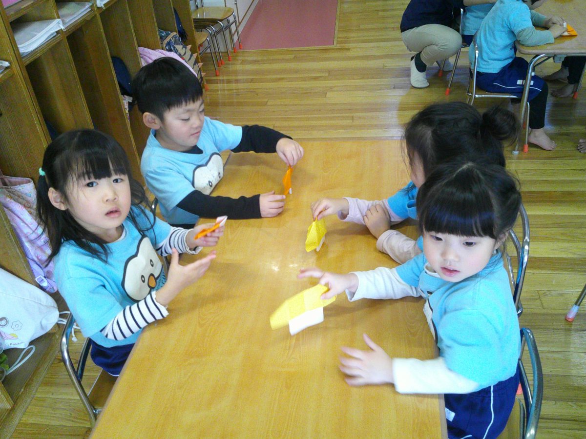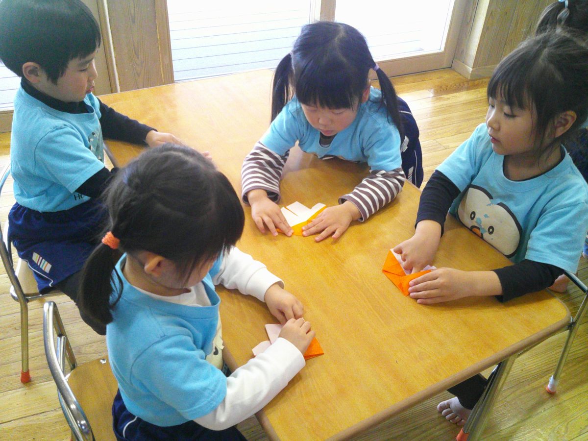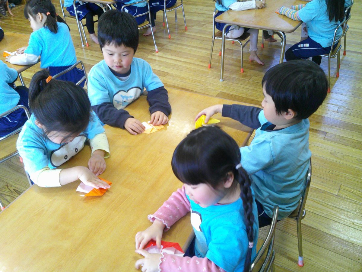 折り紙にも取り組みました❣同じ机に座っているお友だちとも教え合いっこをしながら一生懸命折っていました😊💕