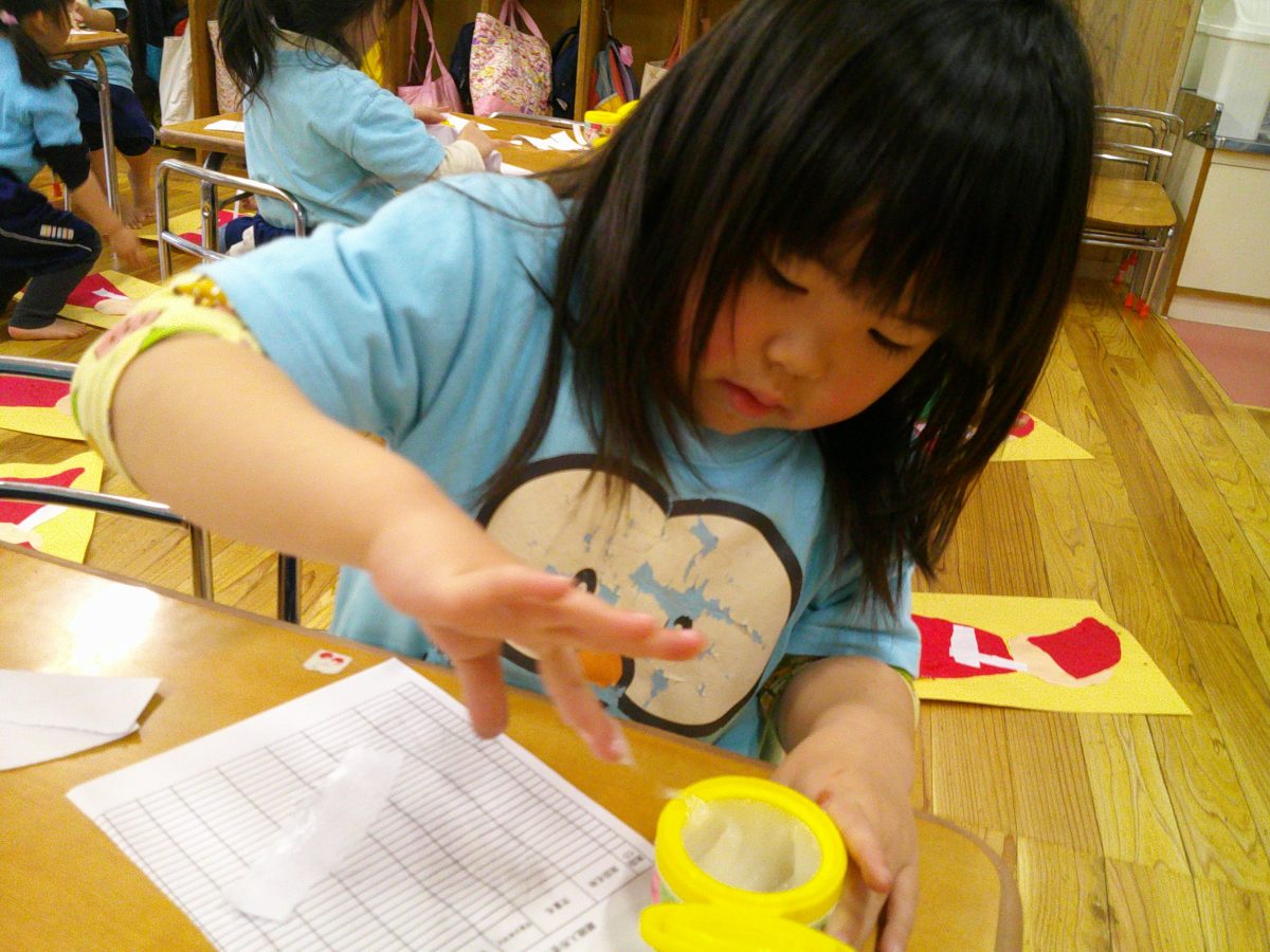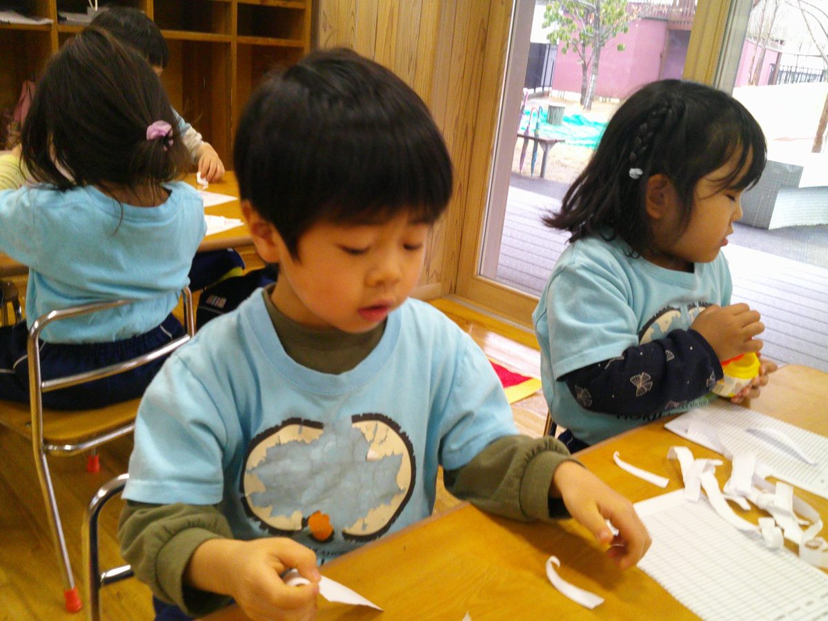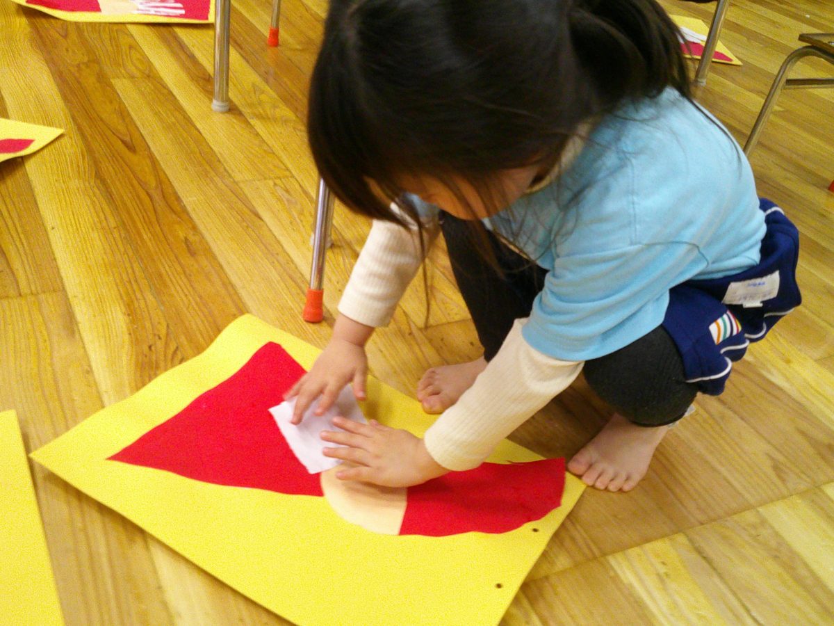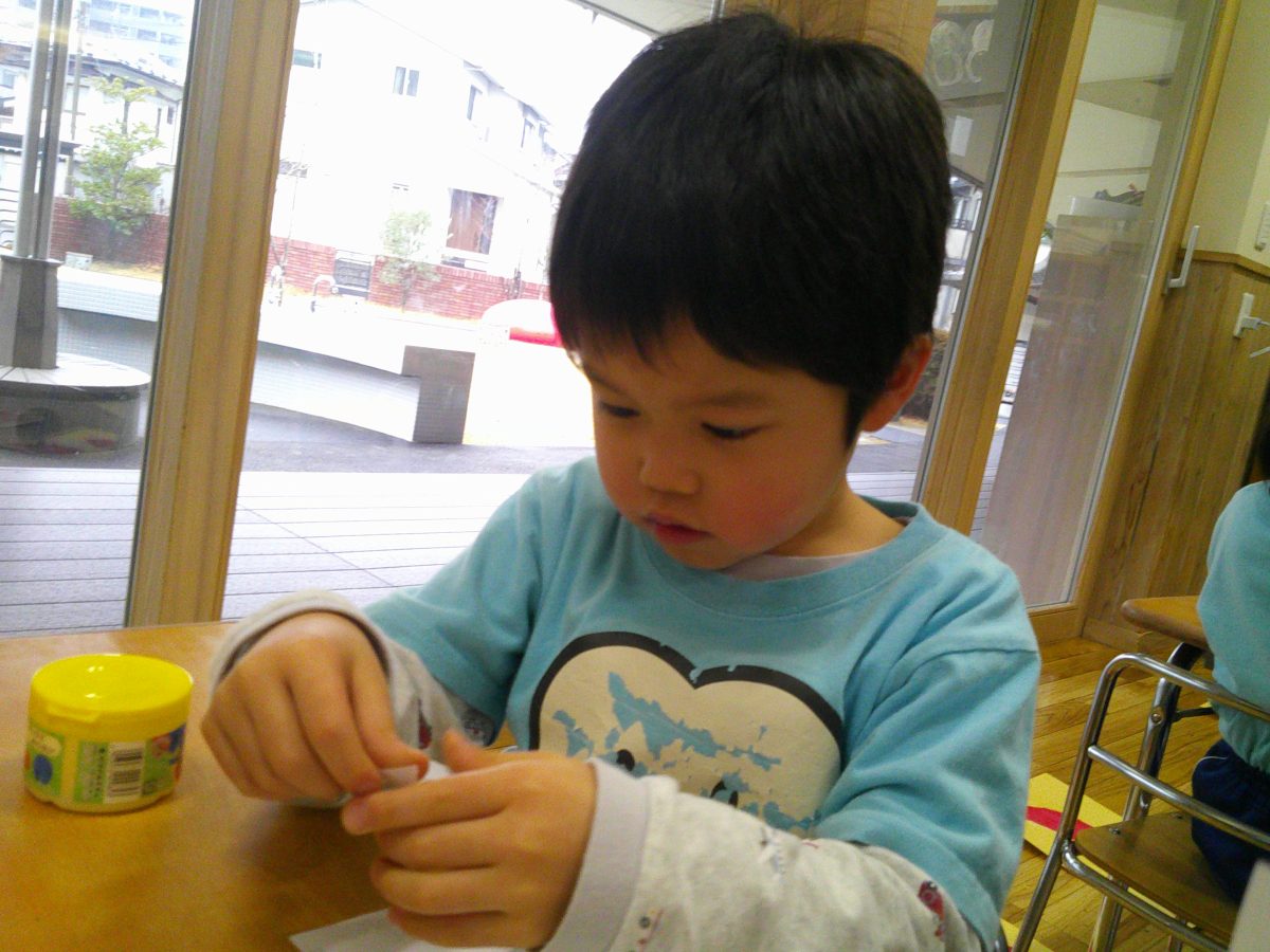 丁寧に糊を塗る姿が見られました💕完成まであと少し、、、