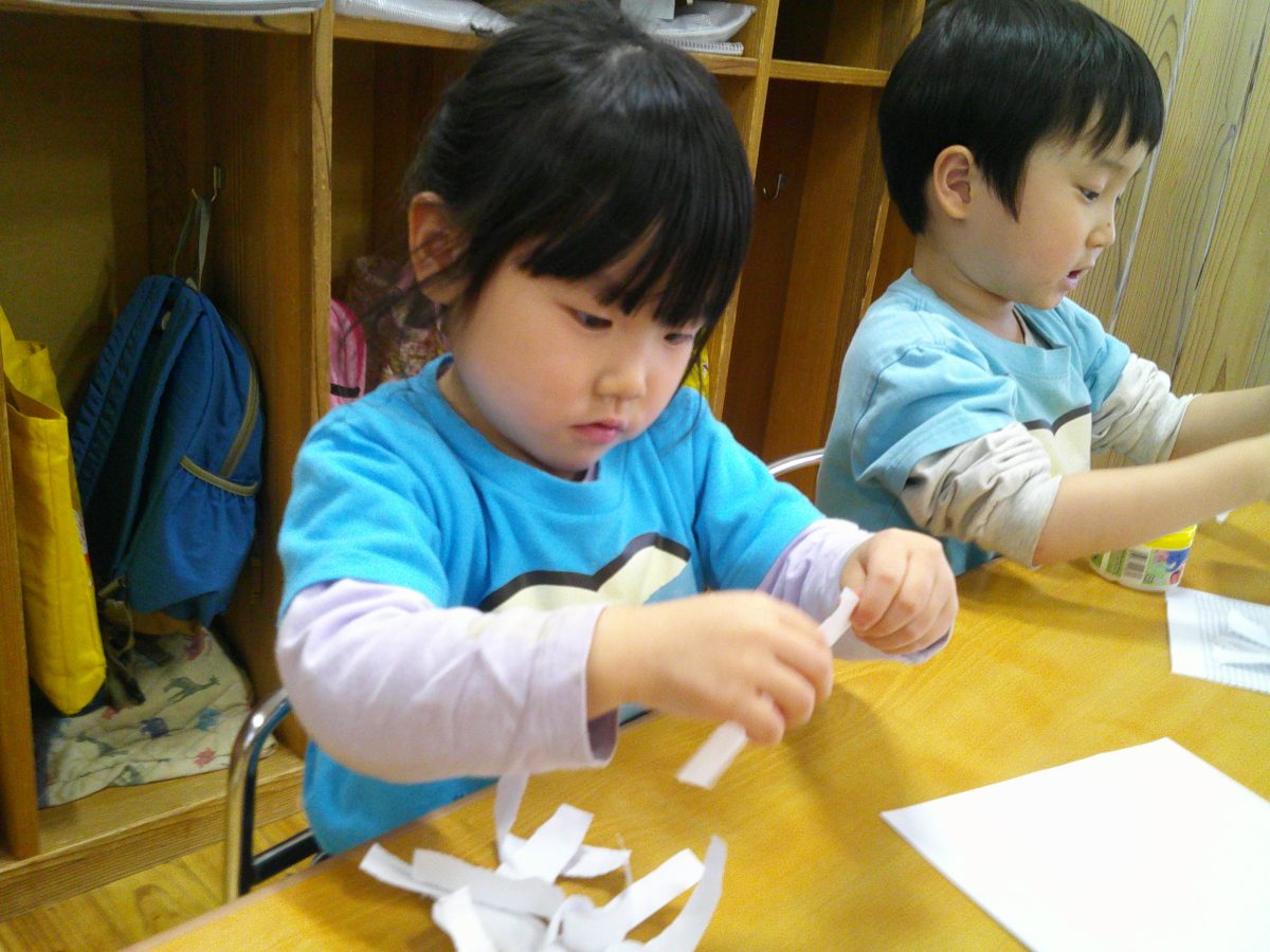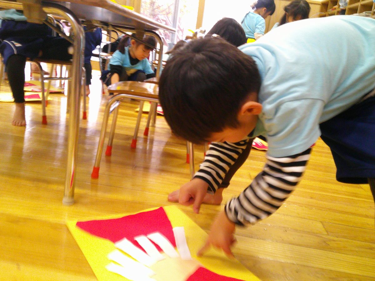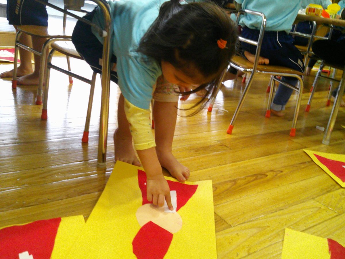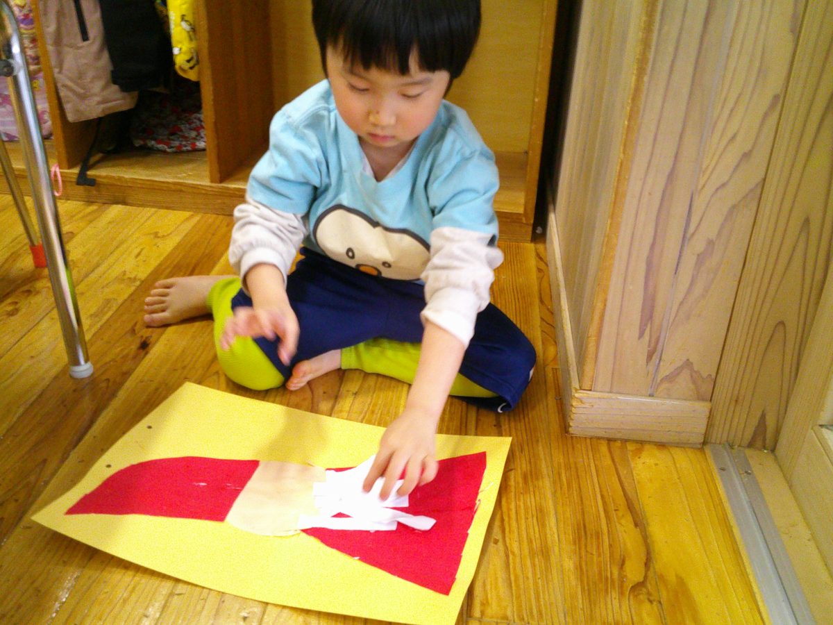 丁寧に糊を塗る姿が見られました💕完成まであと少し、、、