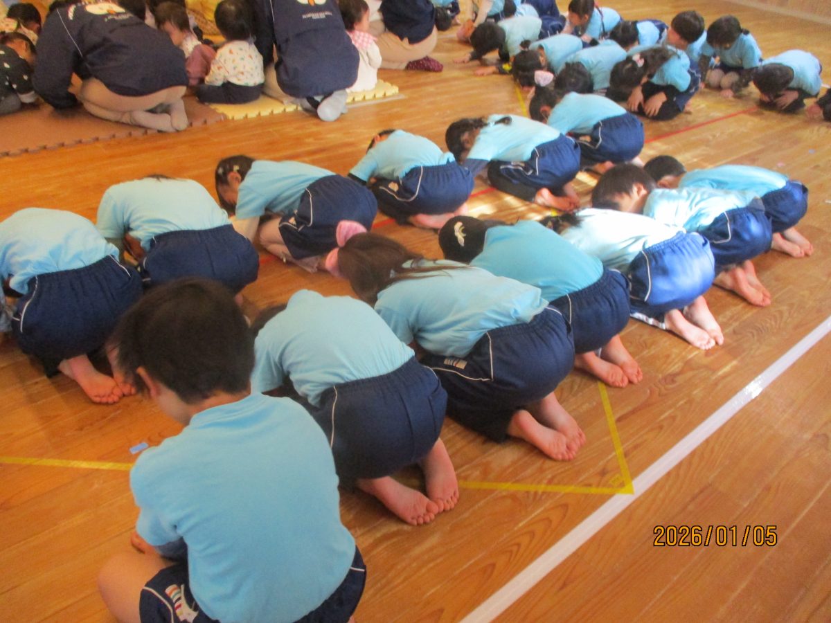 その後はホールに集まっての新年の顔合わせ会😄 新年のご挨拶も上手にできました☺️