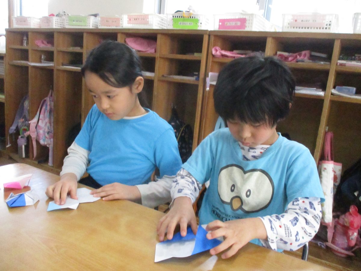 折り紙の説明書とにらめっこ🤔 『ちいさなせんせいたち』今回も大活躍です🥲