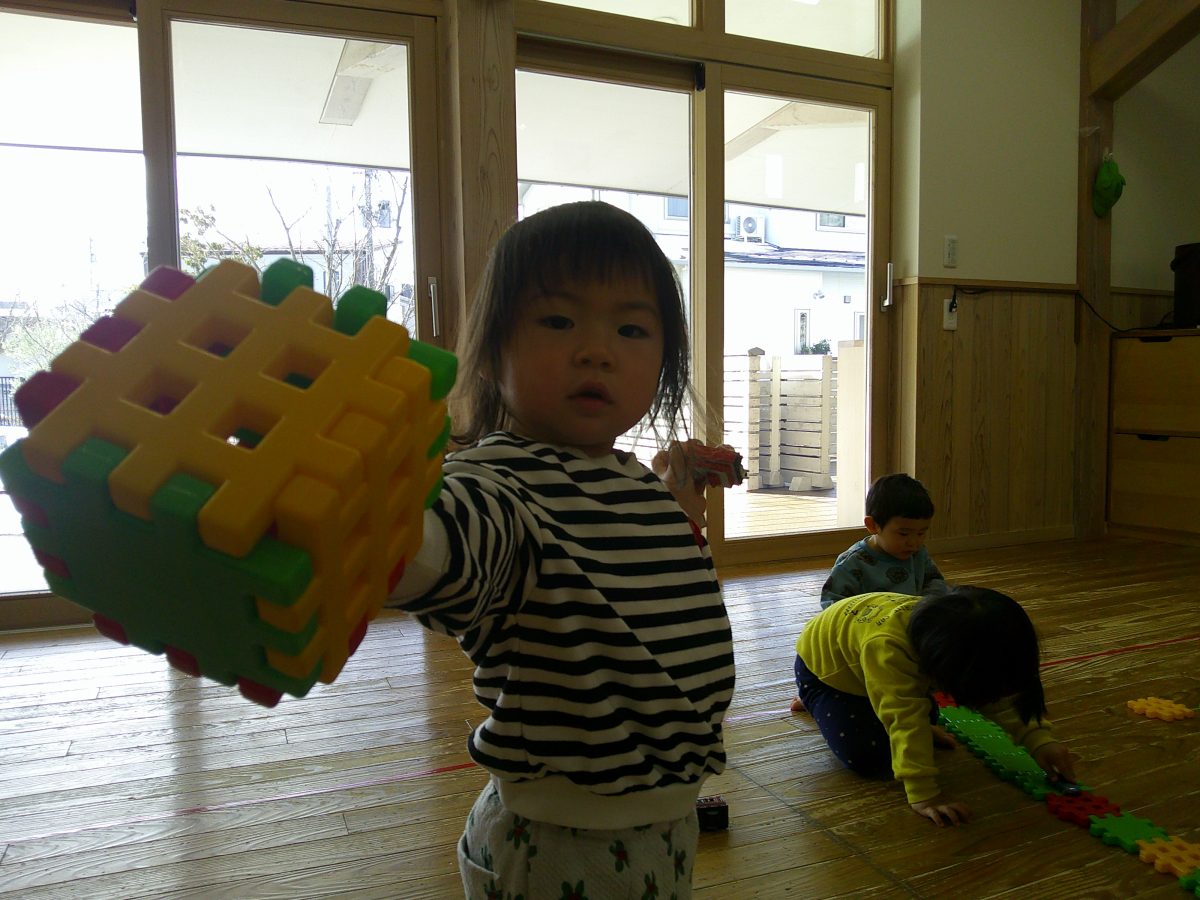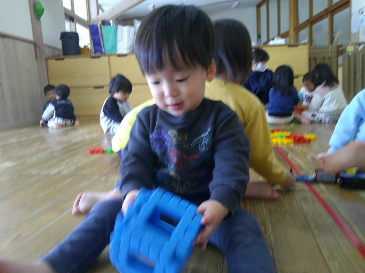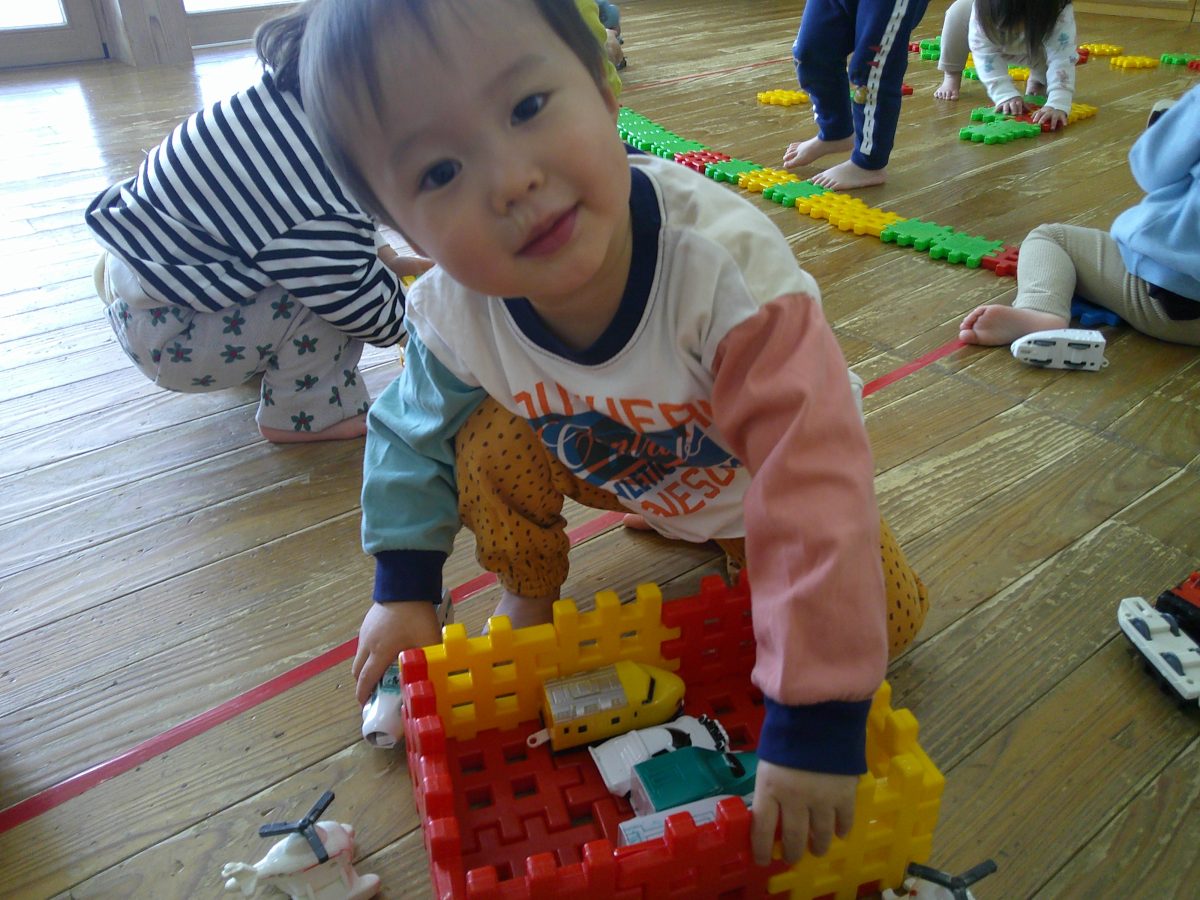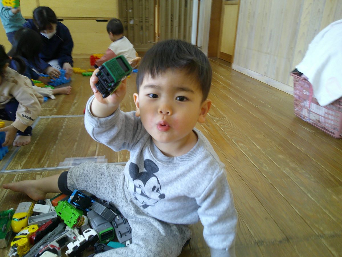 その後はお部屋で大きなブロックと電車や車のおもちゃで遊びました🚃