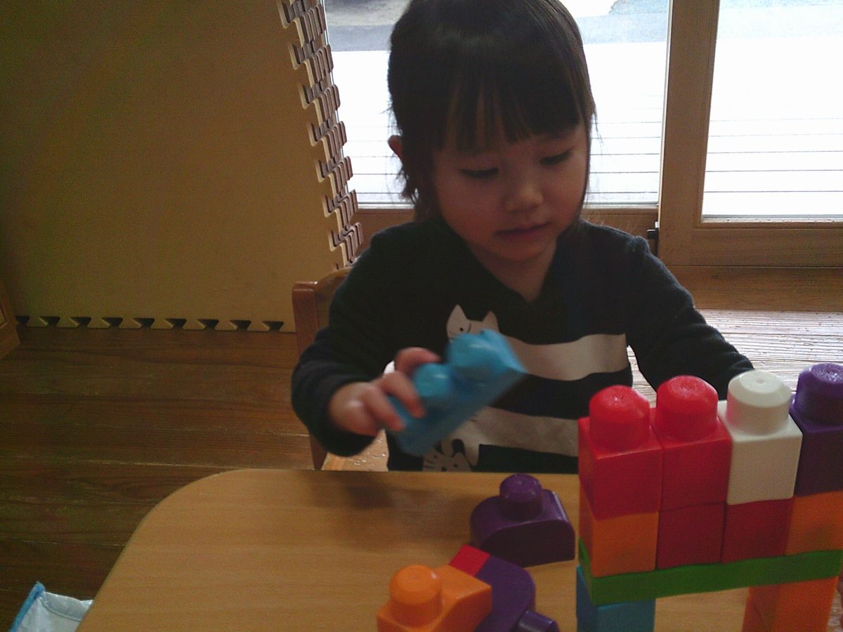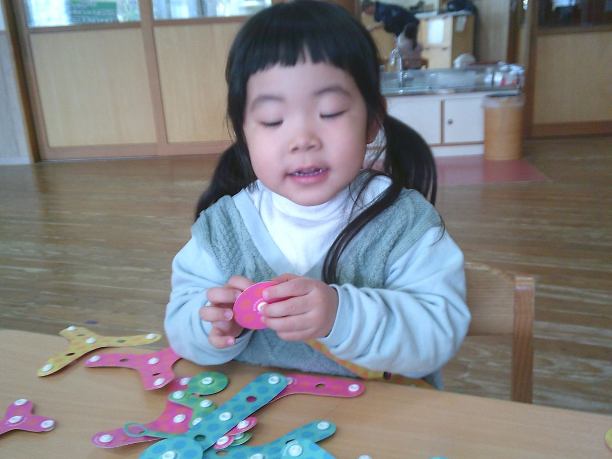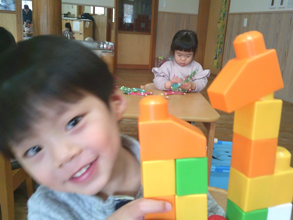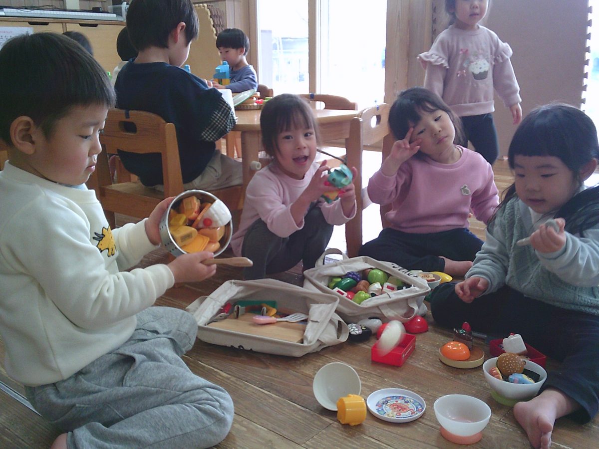自由遊びはおままごとやスナップ玩具、ブロックで
