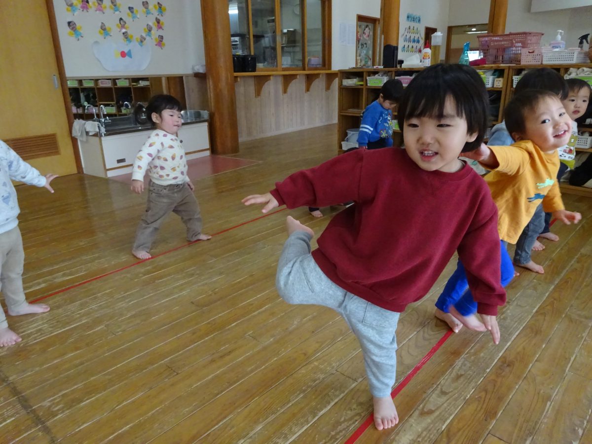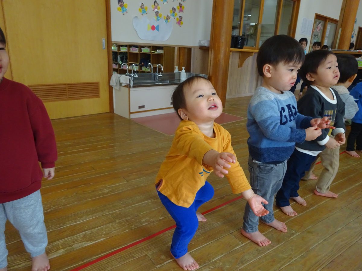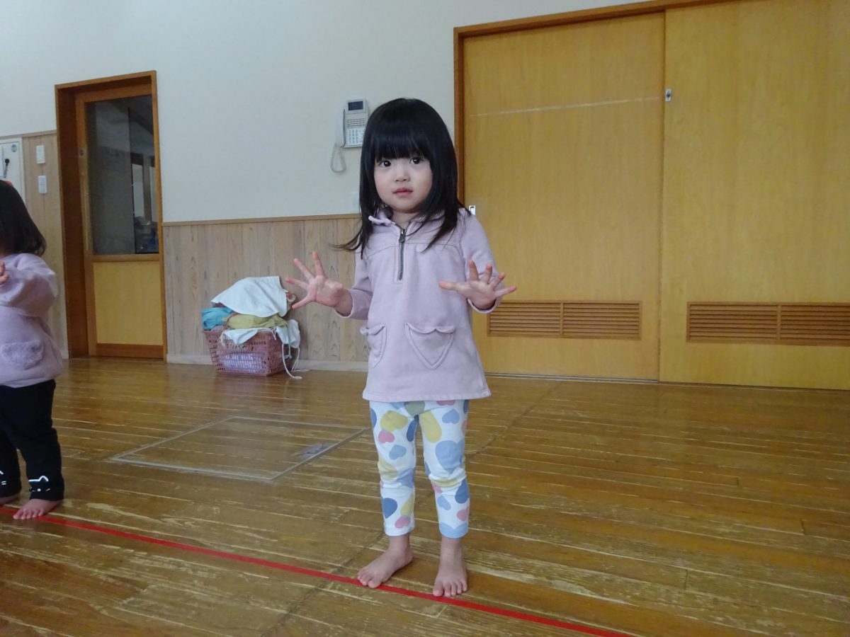 体操では鶴や爬虫類、どんぐり等、様々なものになりきって楽しみました😆💓