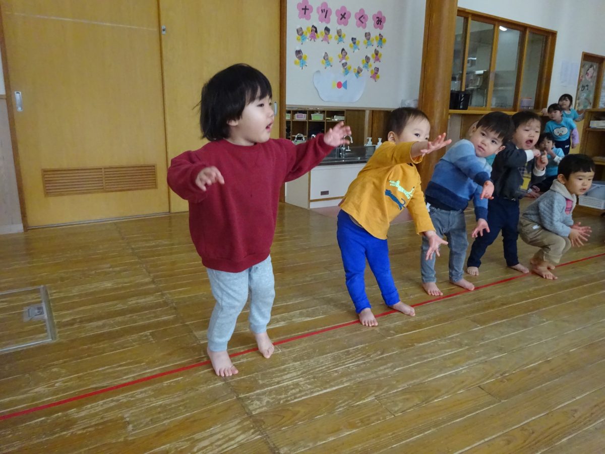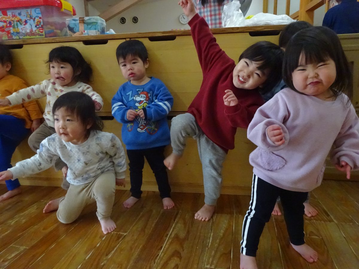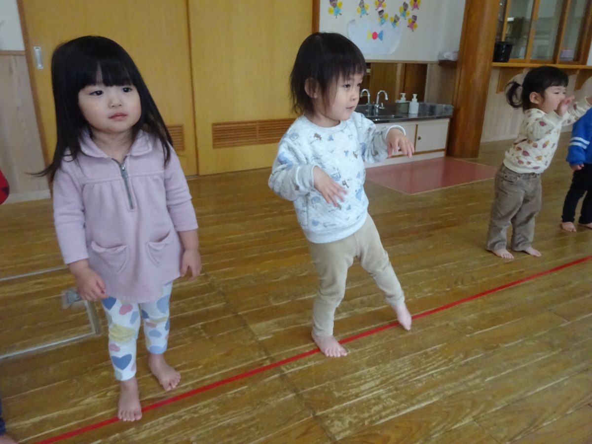 体操では鶴や爬虫類、どんぐり等、様々なものになりきって楽しみました😆💓