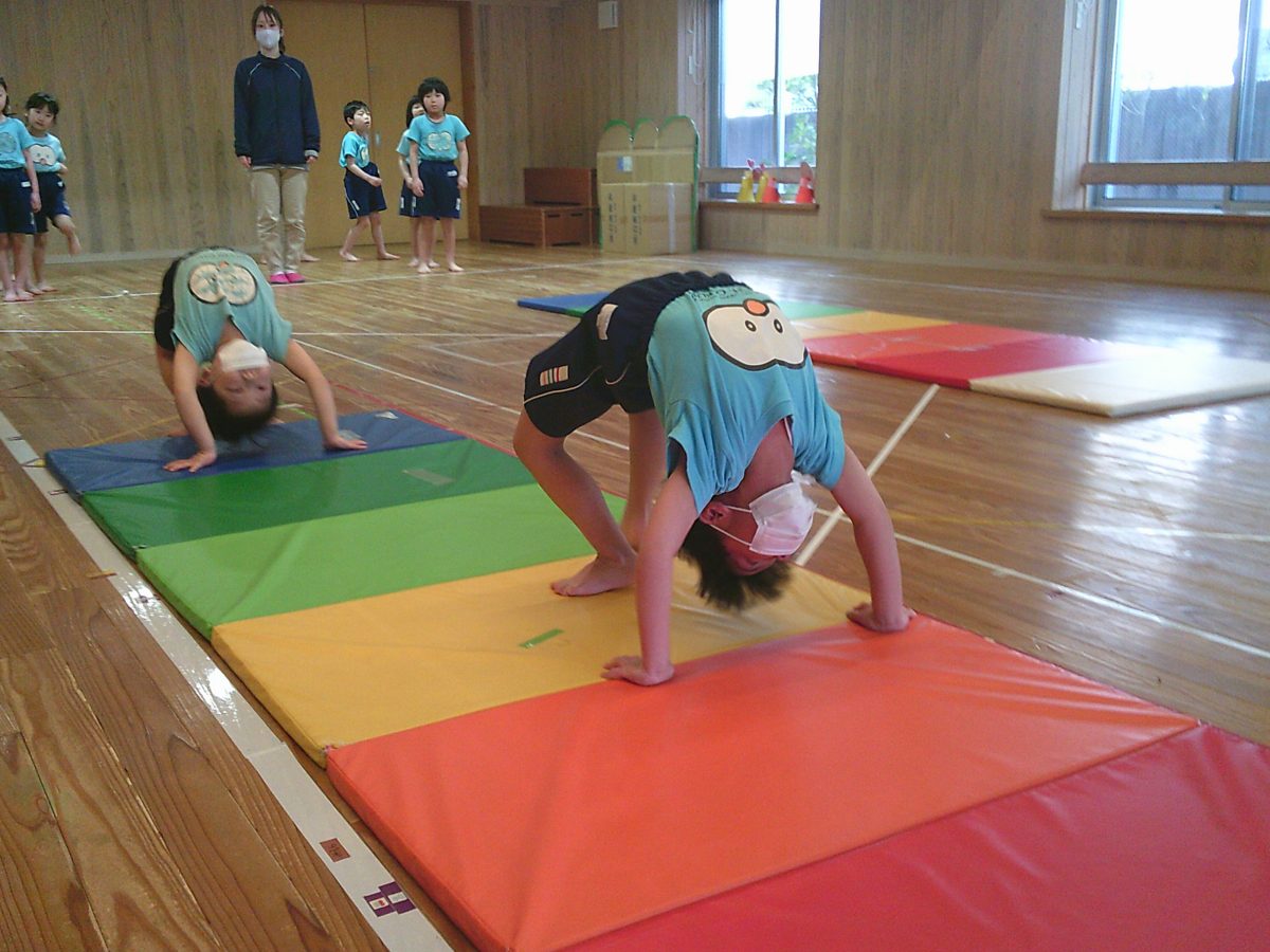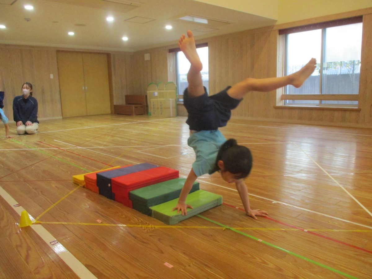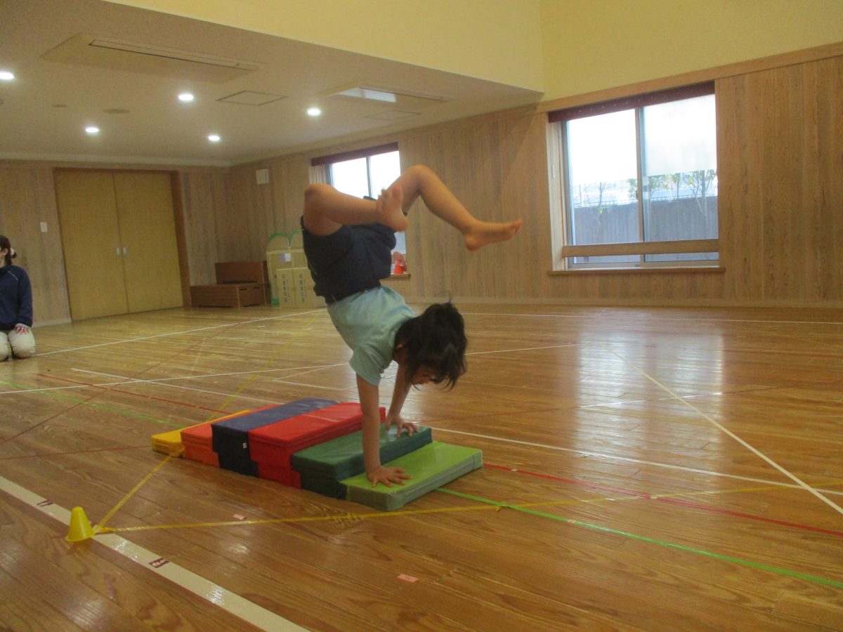 体操も楽しく頑張ったよ~💕足をあげてブリッジをする姿がカッコイイ~😮