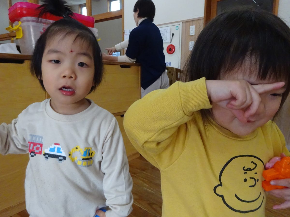 決して写真を撮らせないという強い気持ちを持つお友だち!!