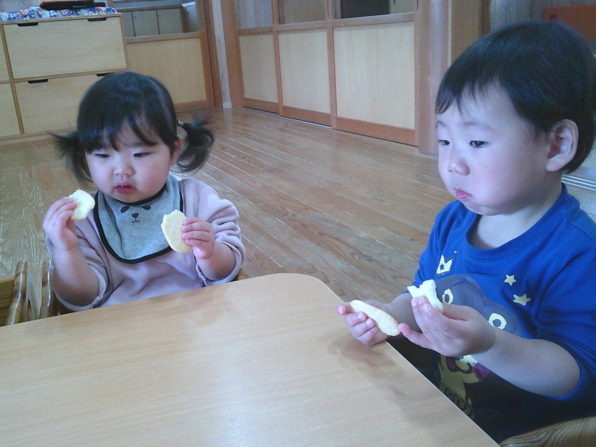朝のおやつ、大好きなおせんべい🍘モグモグモグ🎵
