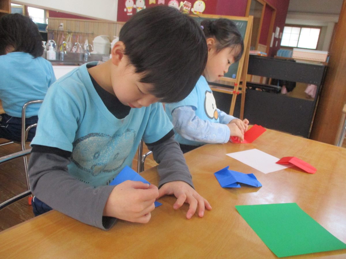 その後はみんなで製作タイム✂ 折り紙はやっぱり毎回悩みます😥
