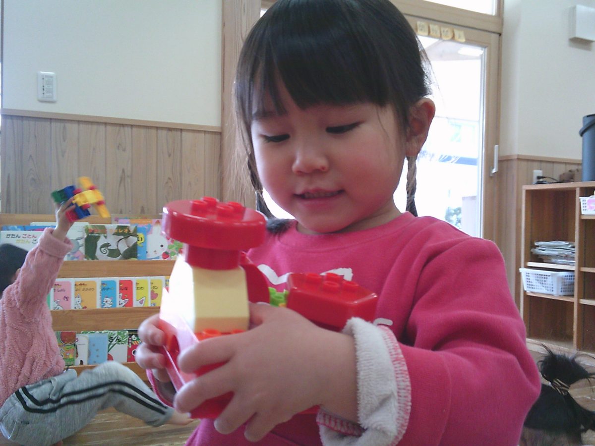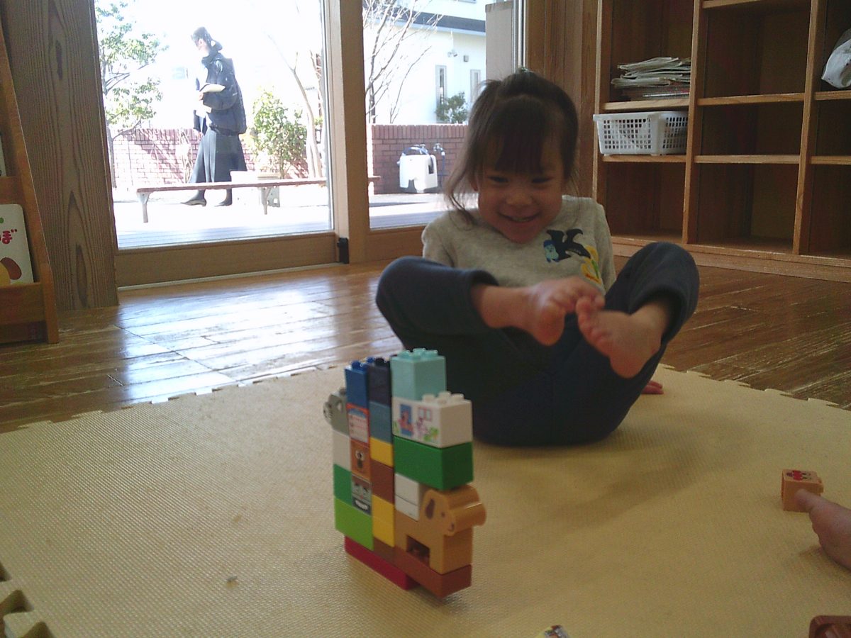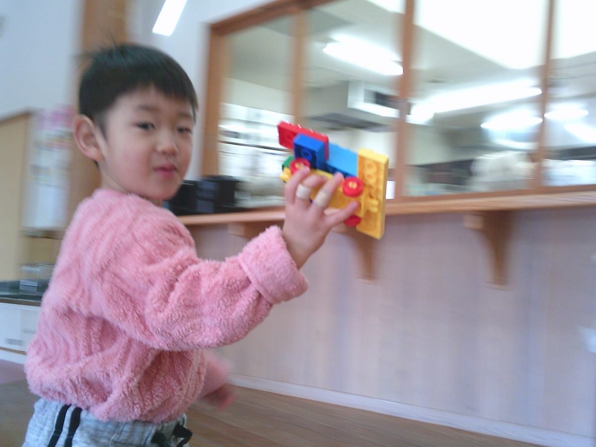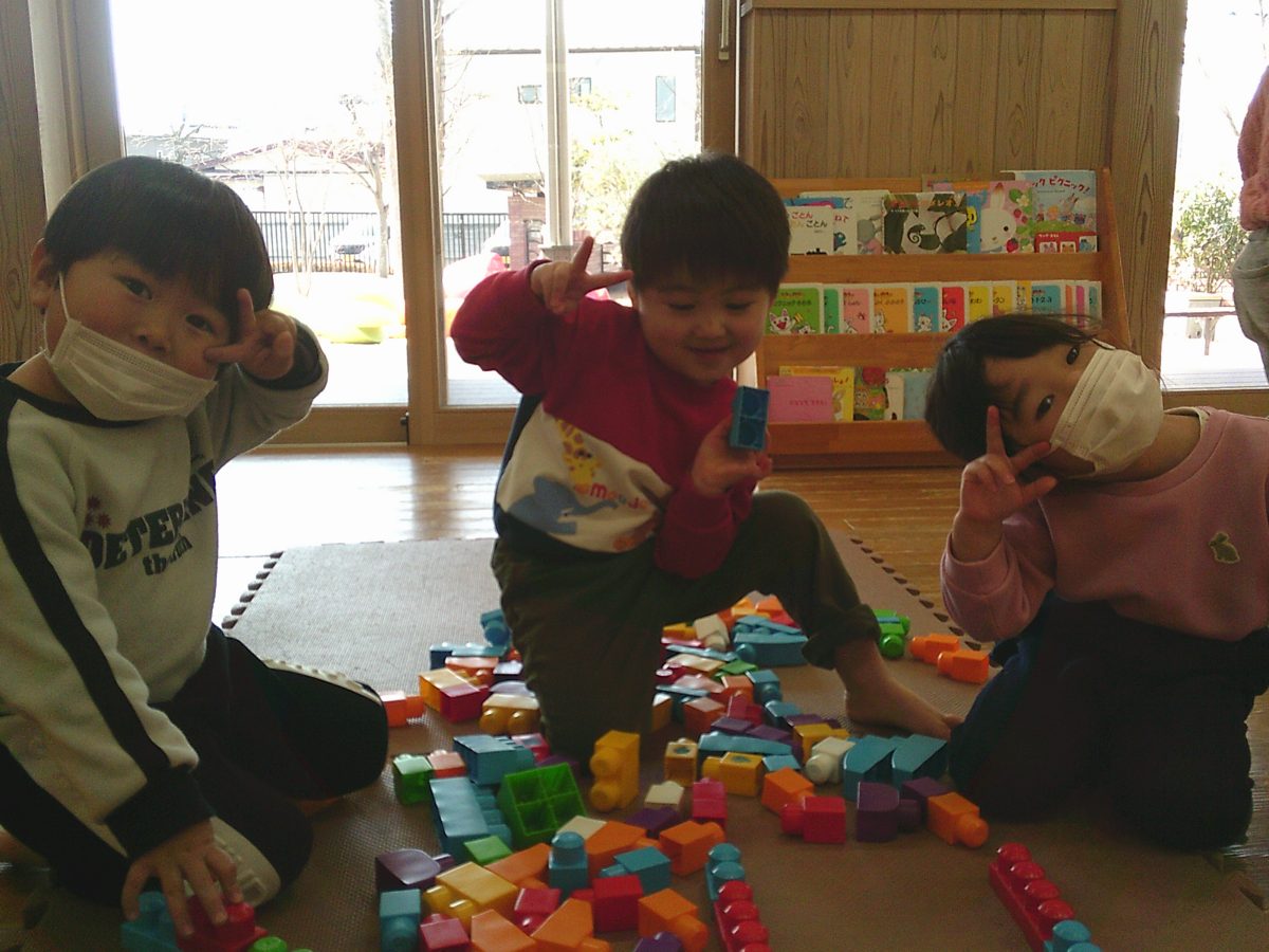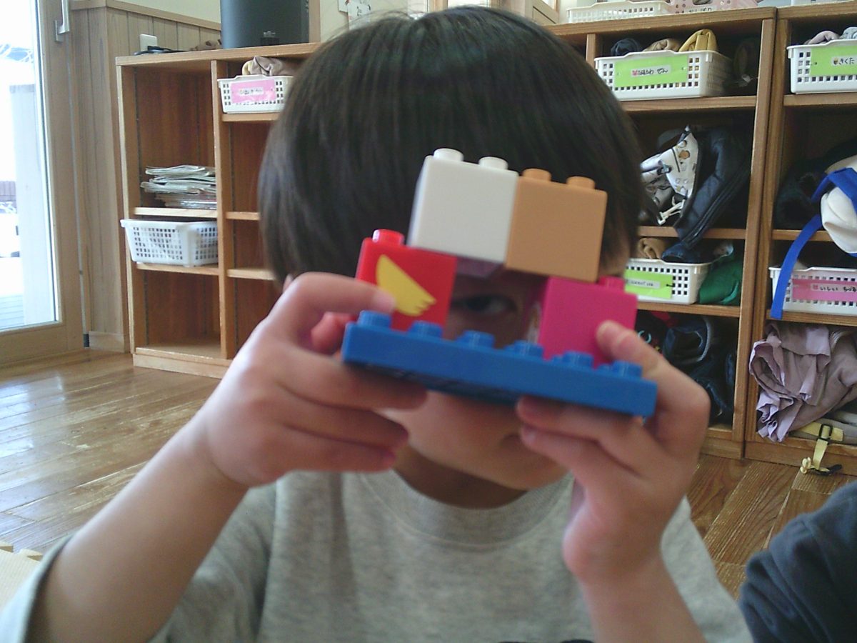 大好きな製作。なにができるかな?順番が来るまで、仲良くブロックタイムです😄