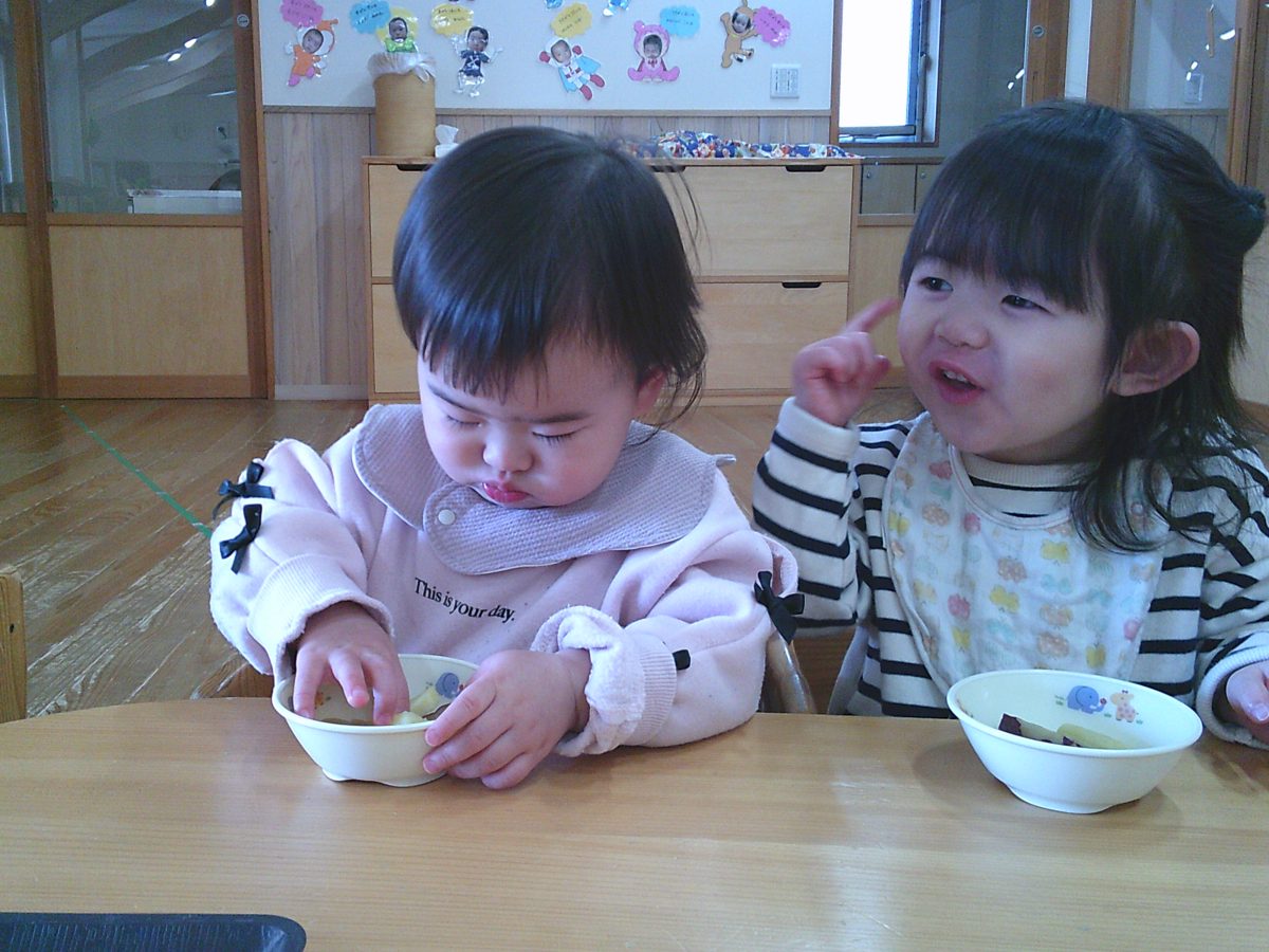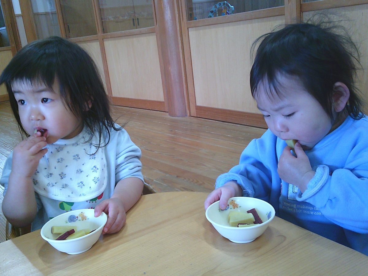 今日の朝おやつはみんなの大好きなおいもでした〜😆パクパクモグモグ進みが良いです🍴