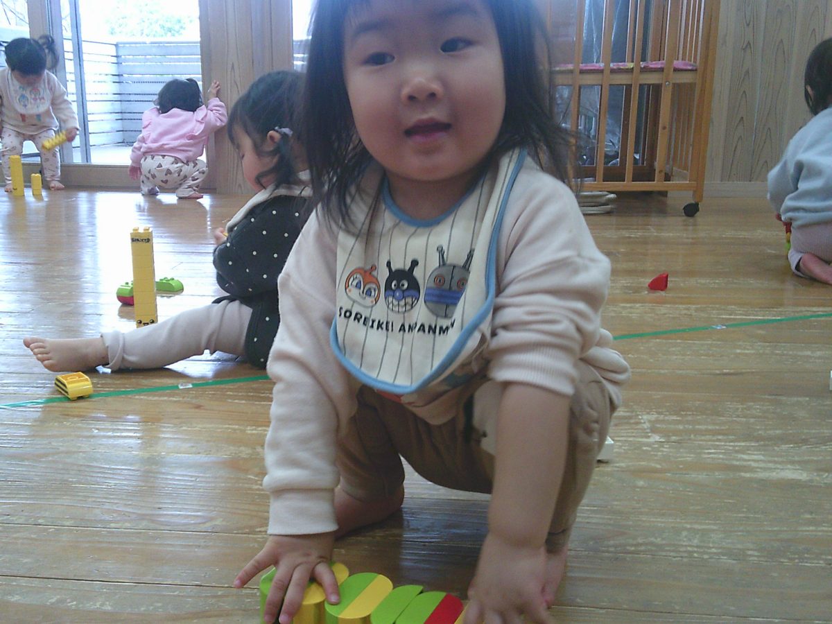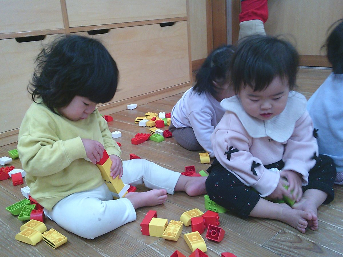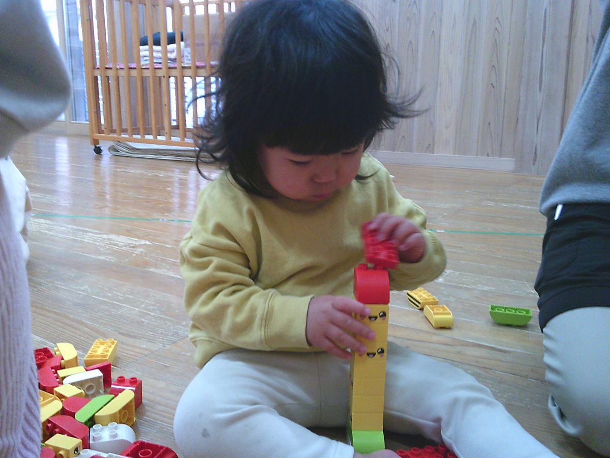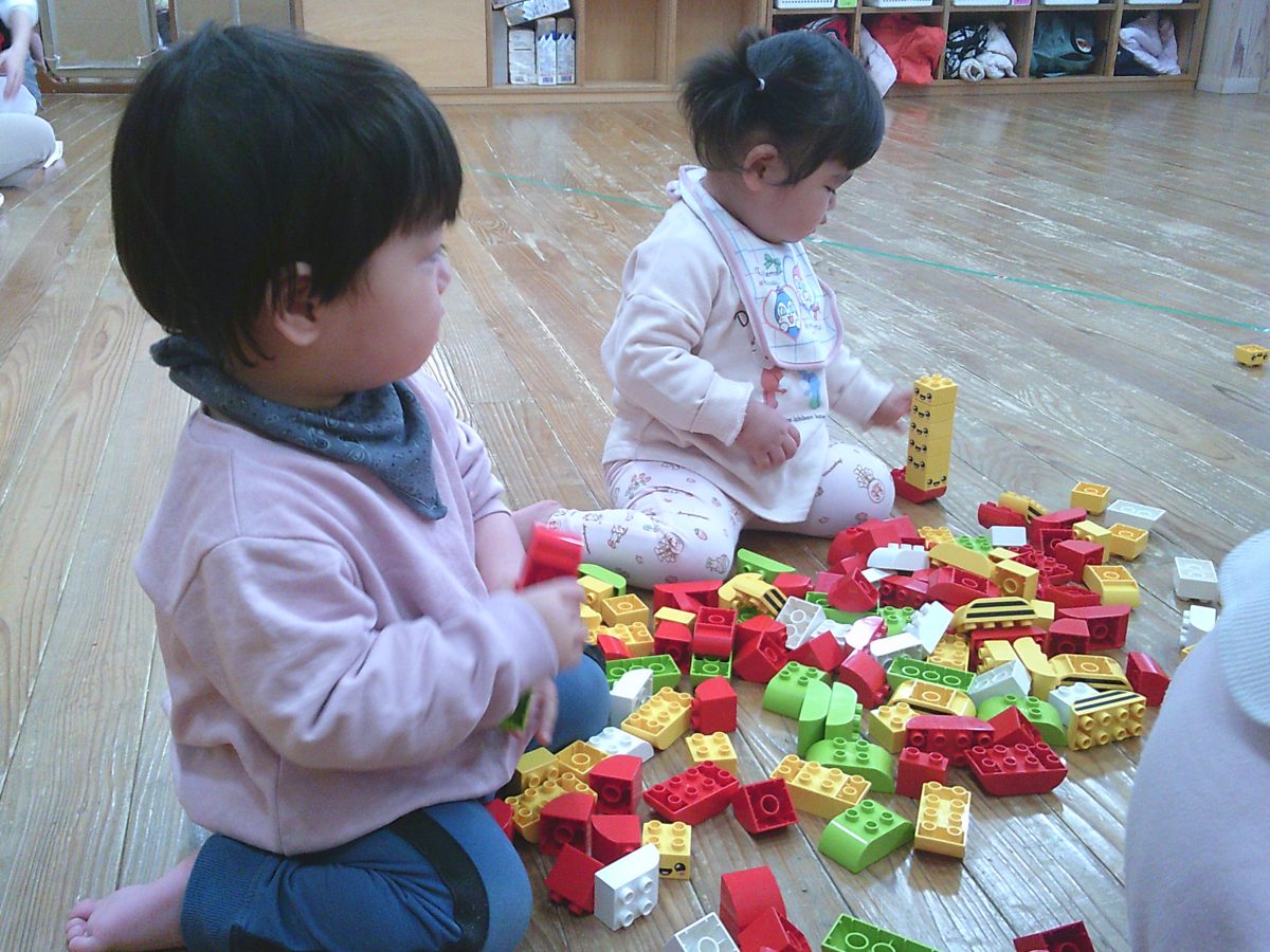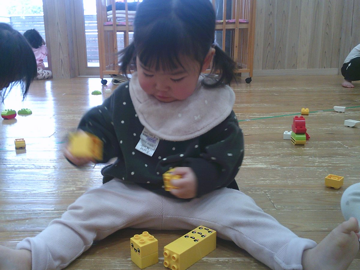 ブロックで座ってじっくり手や指を使って遊びます😆