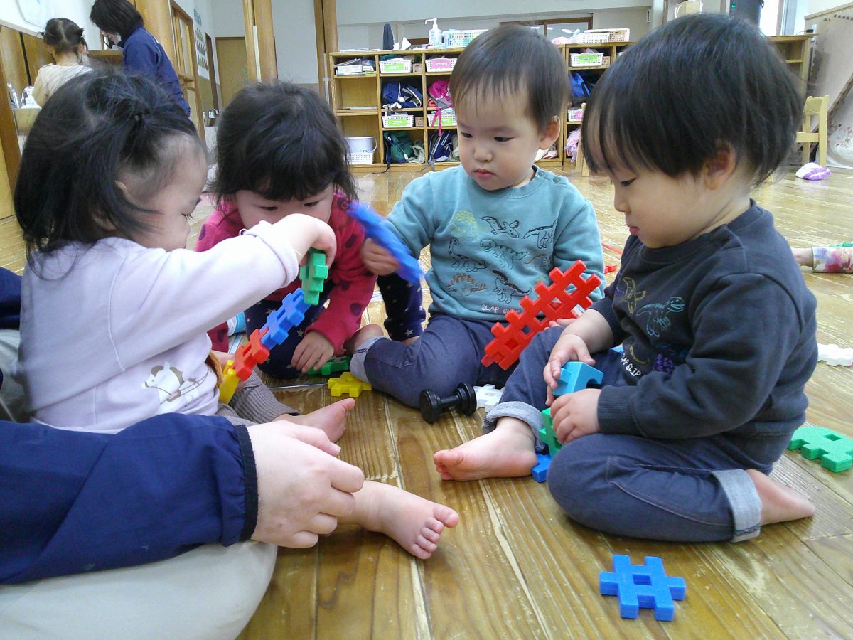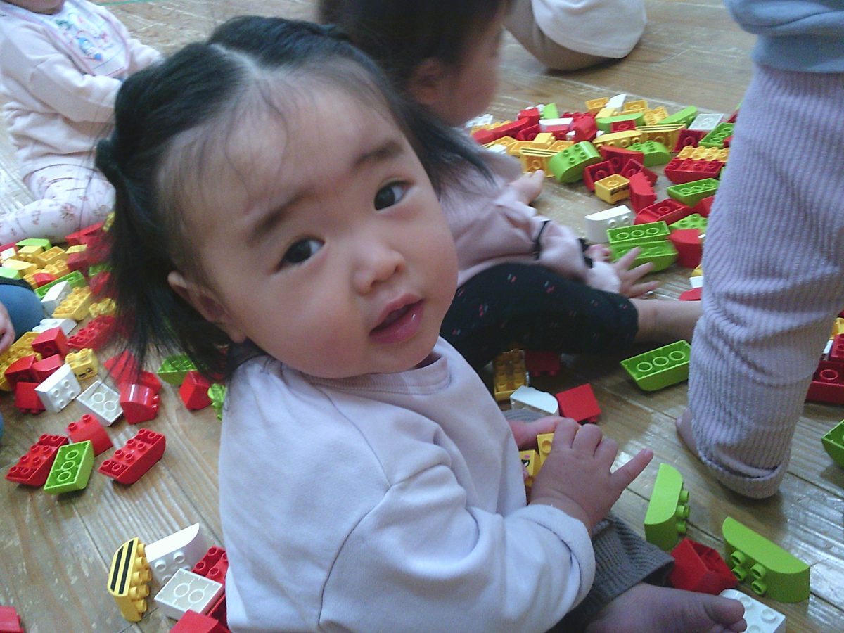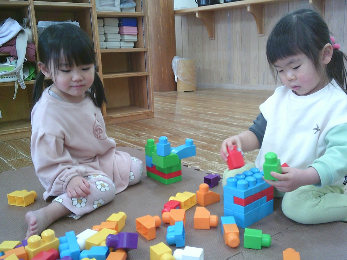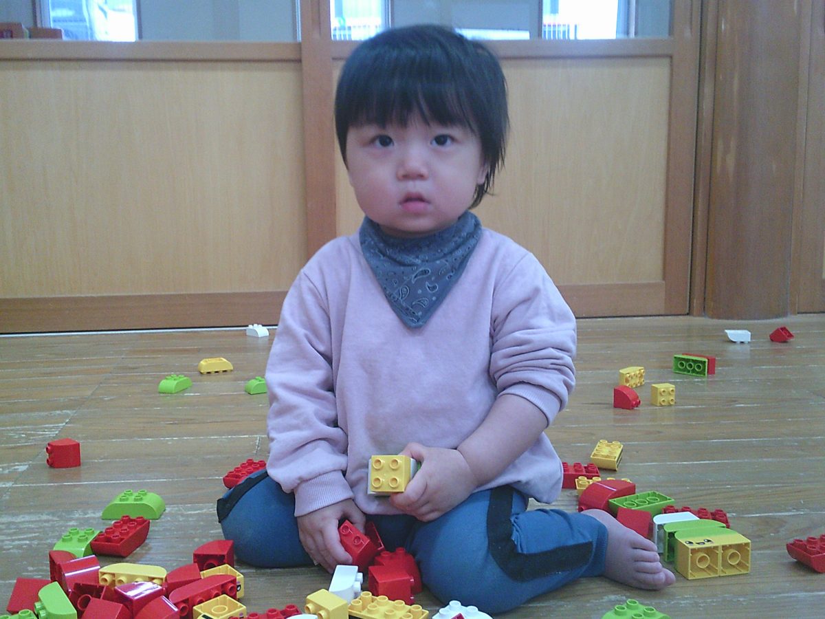 ブロックで座ってじっくり手や指を使って遊びます😆