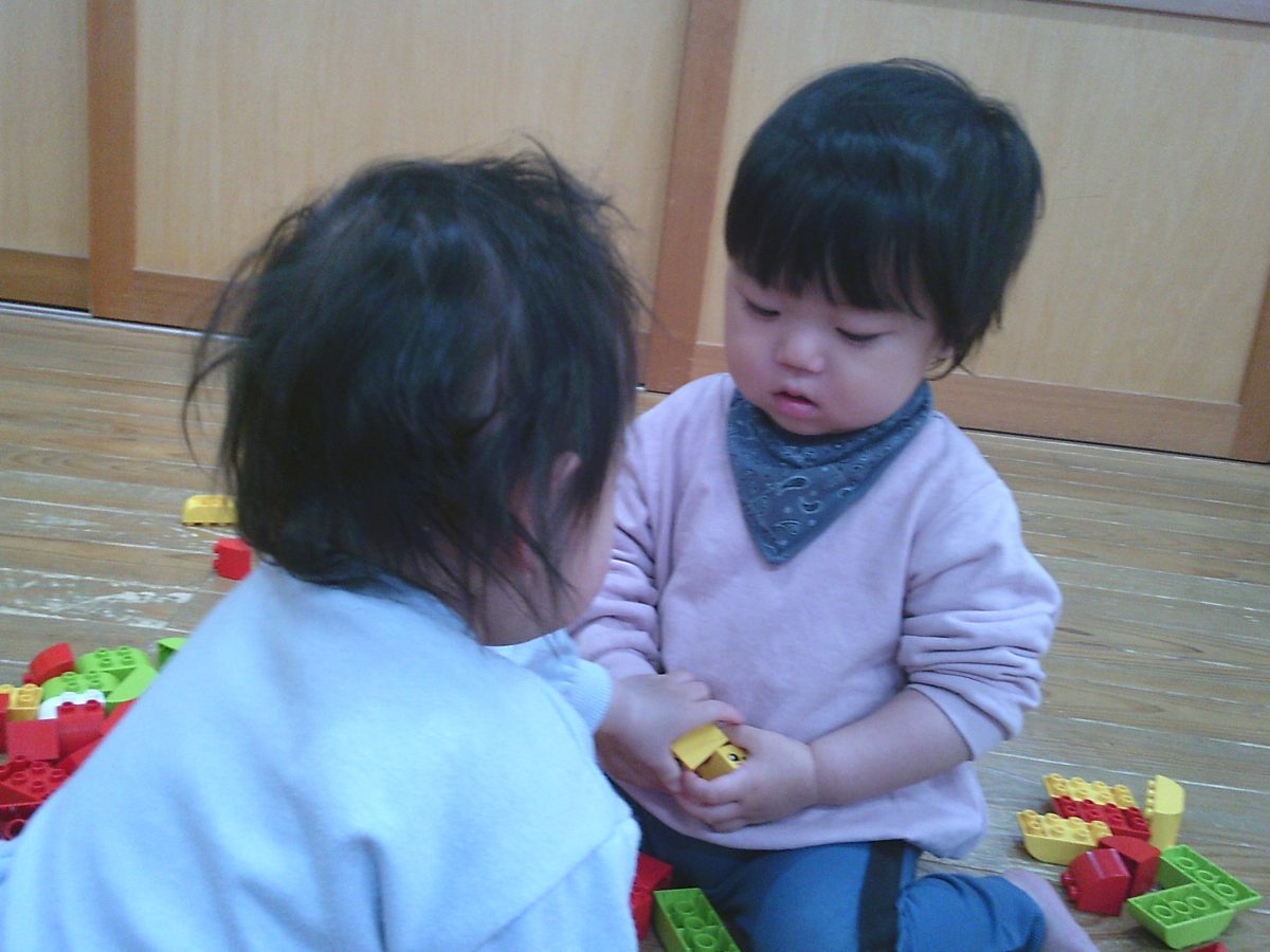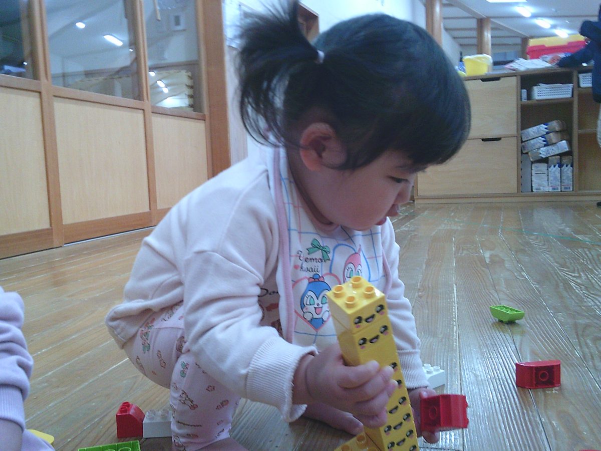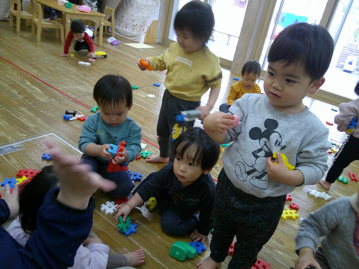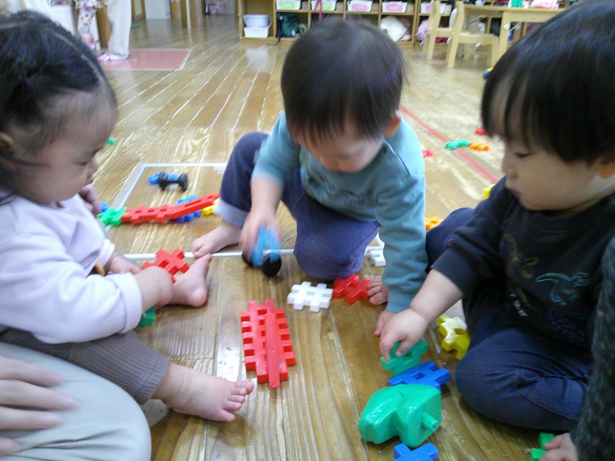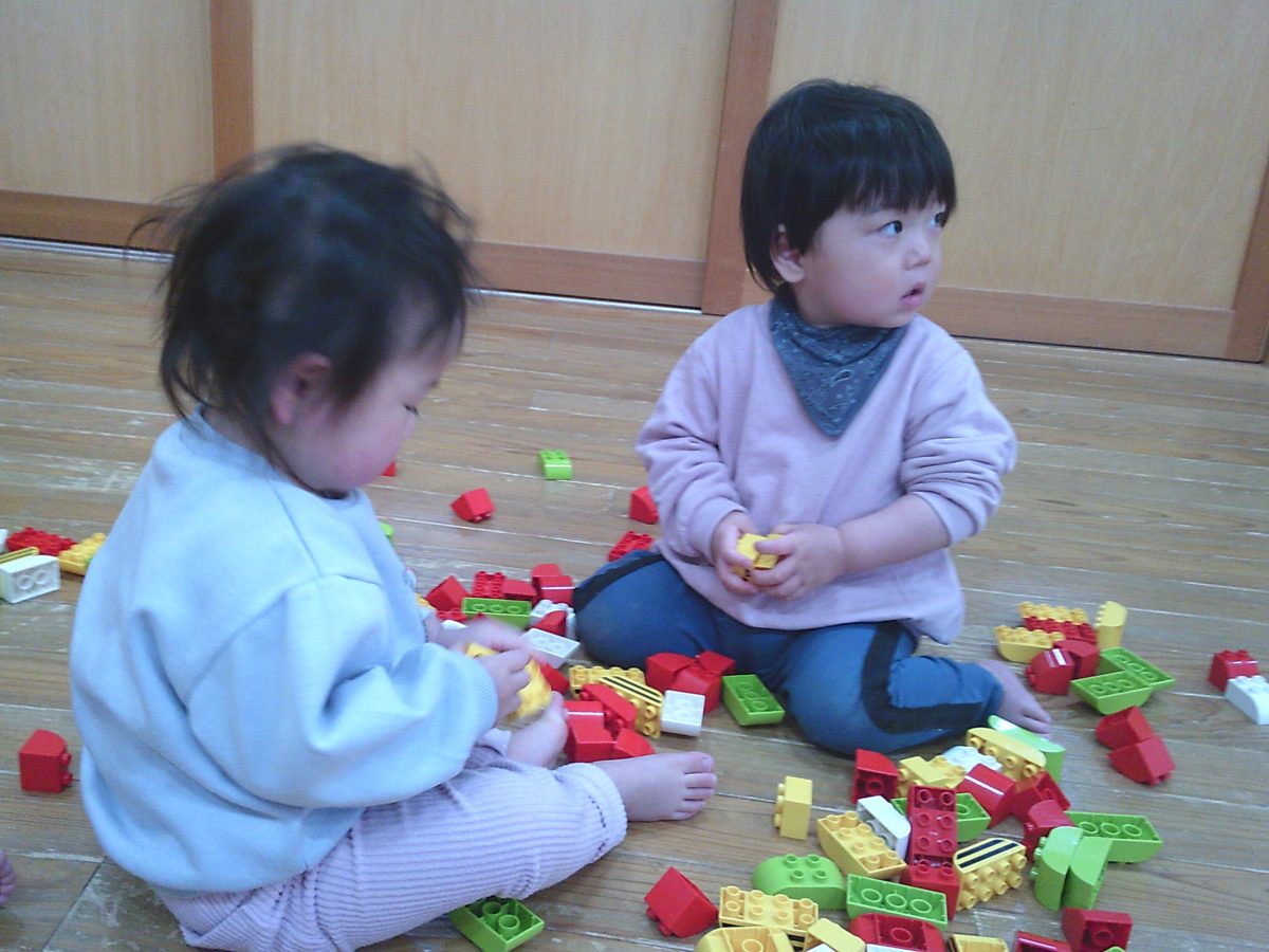 ブロックで座ってじっくり手や指を使って遊びます😆