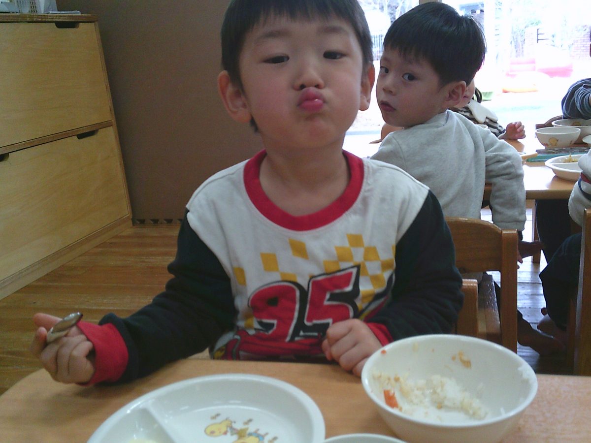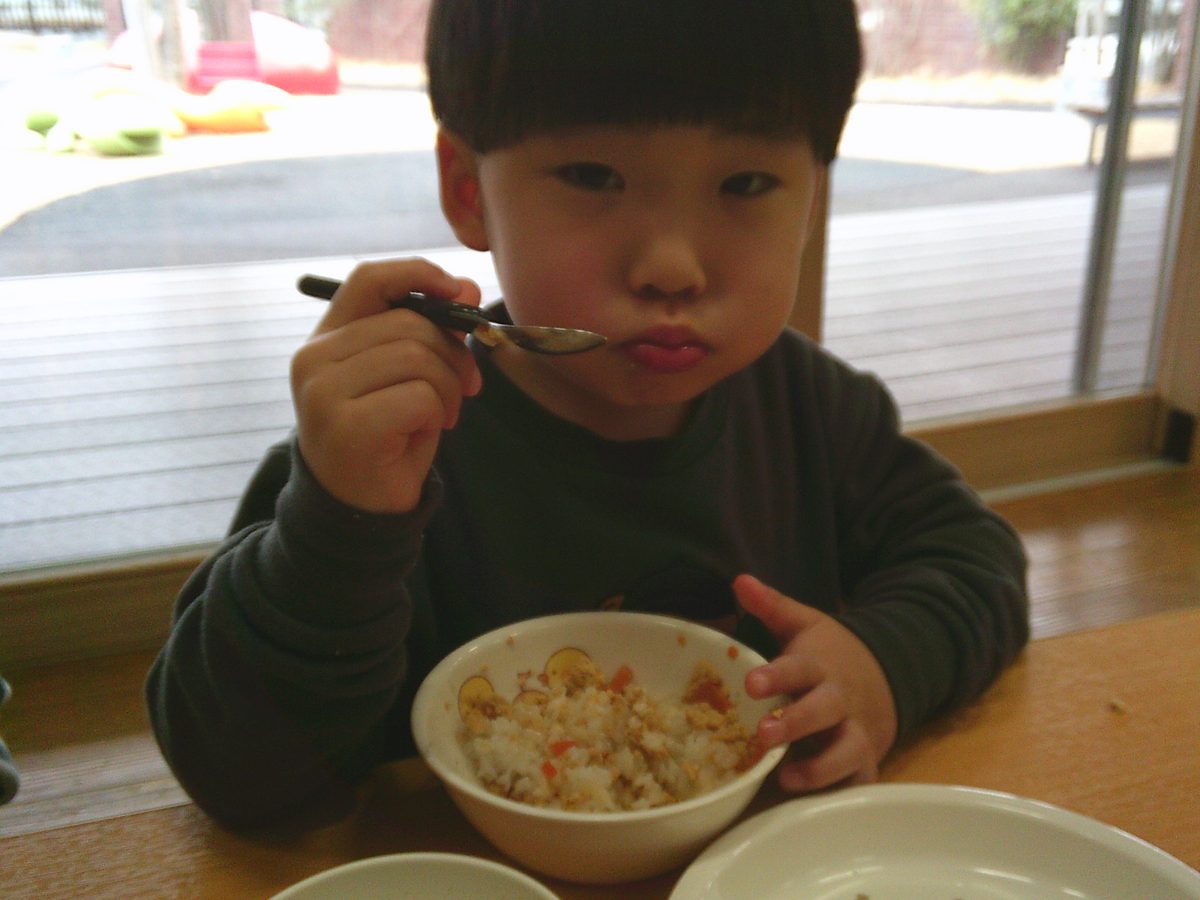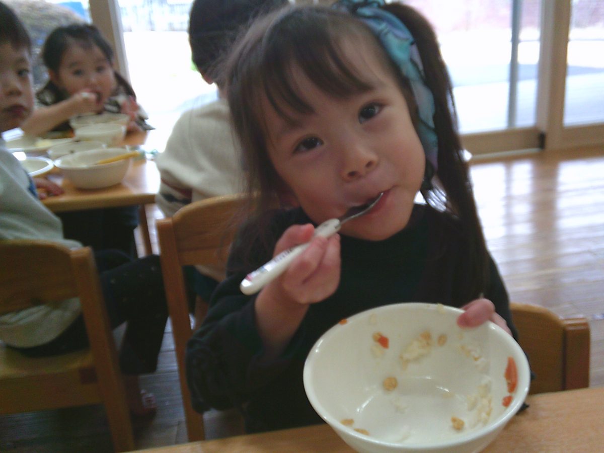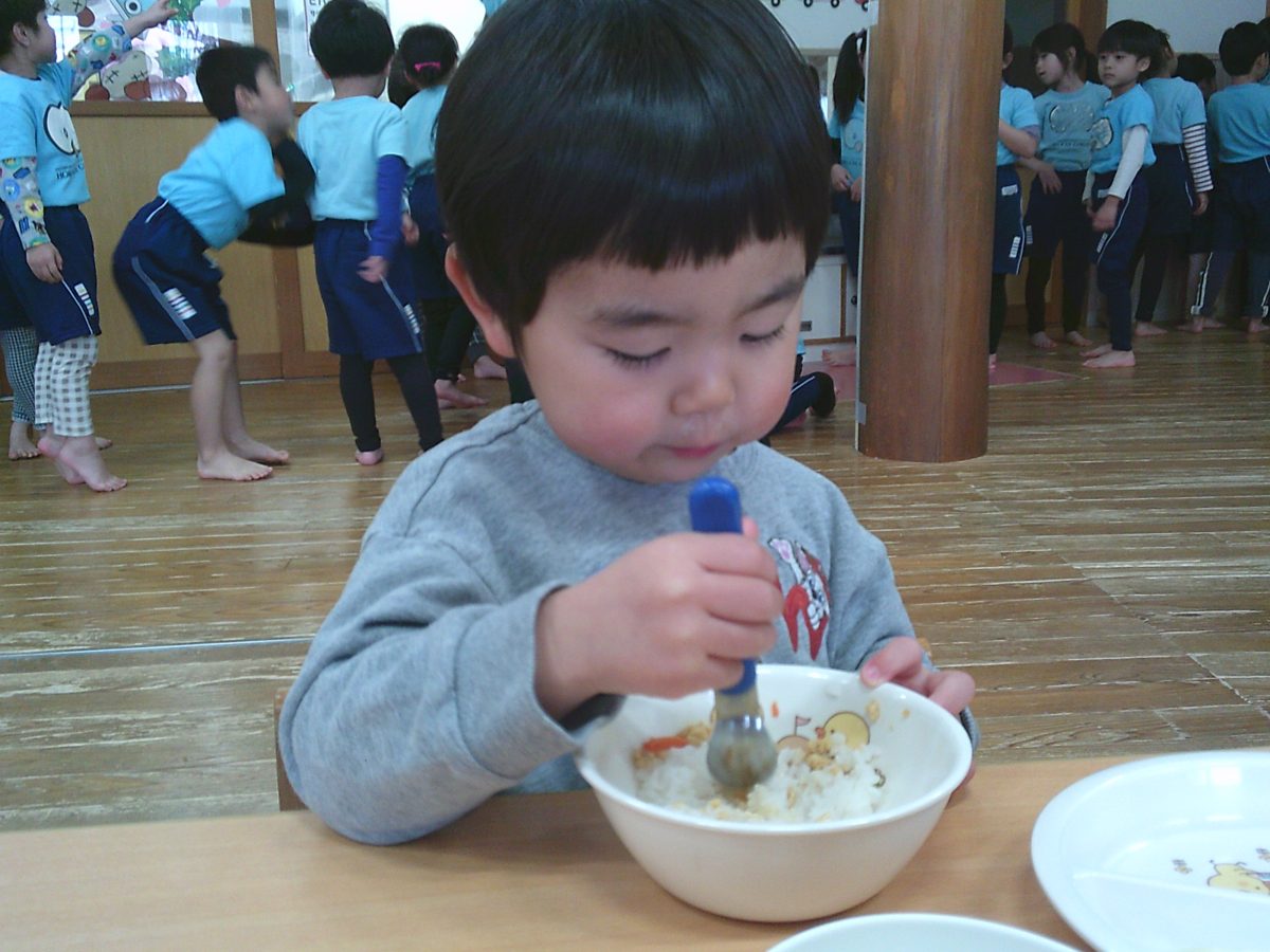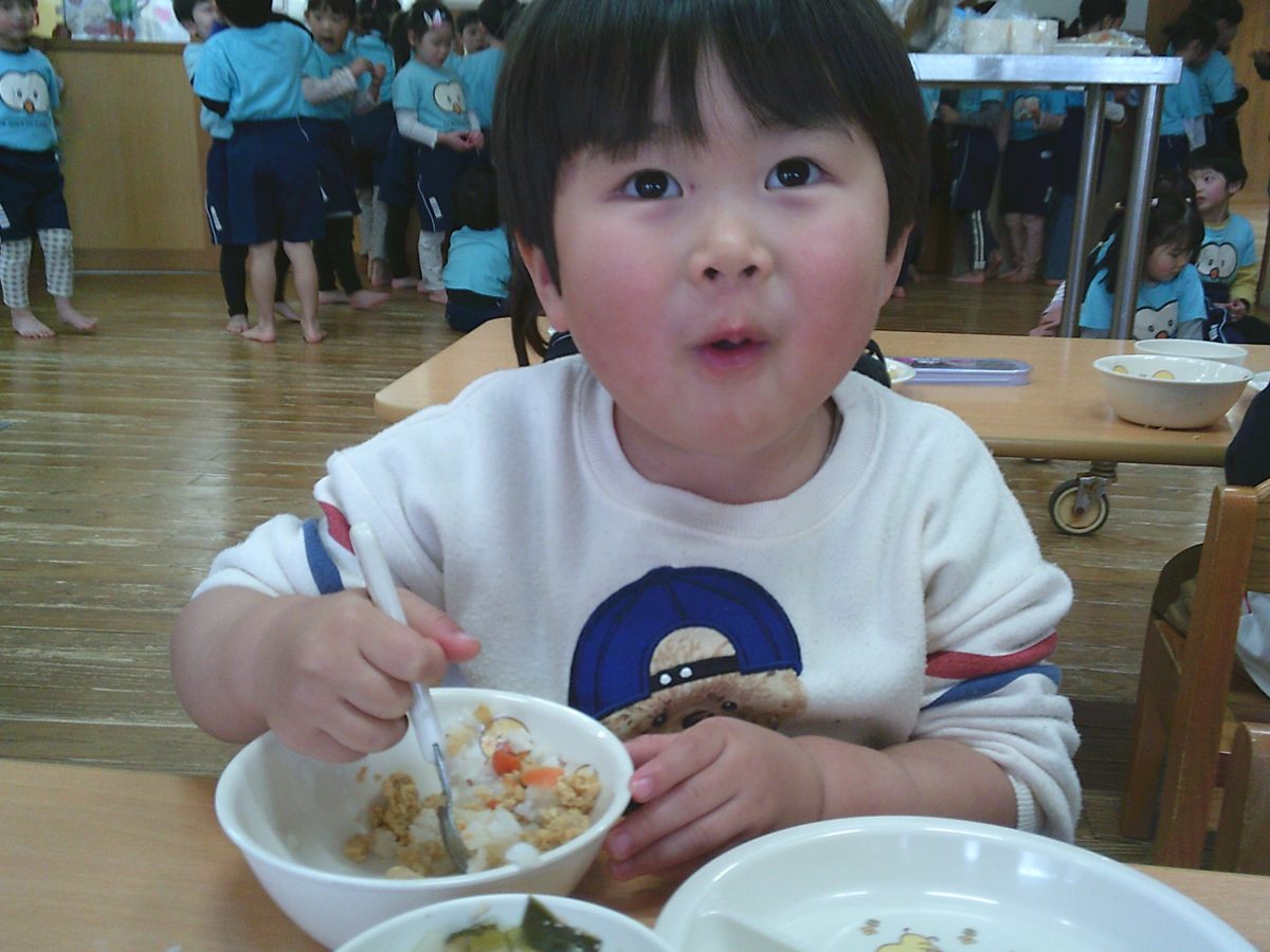 お給食はおいしいおいしいと大喜びの子どもたちでした🍚