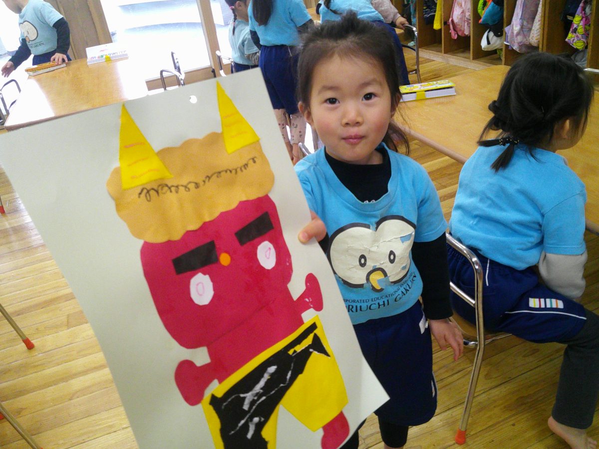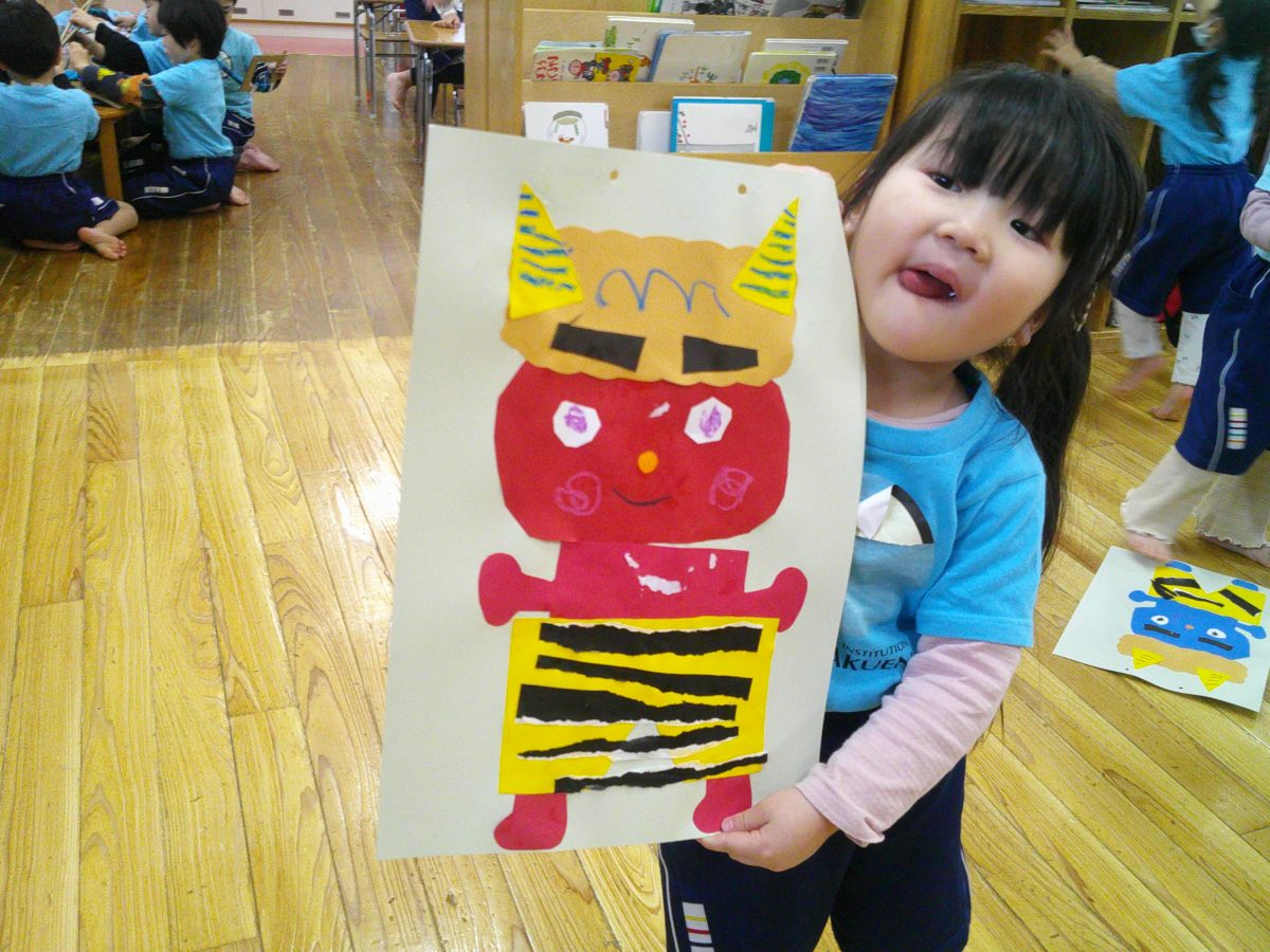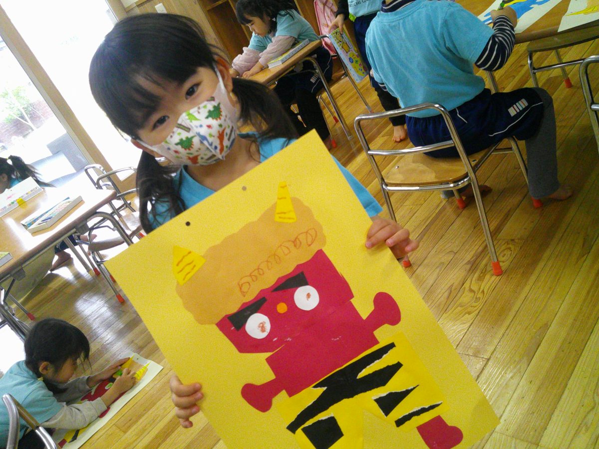 鬼のお顔完成~~💕とっても可愛い鬼さんが出来上がりました🌟