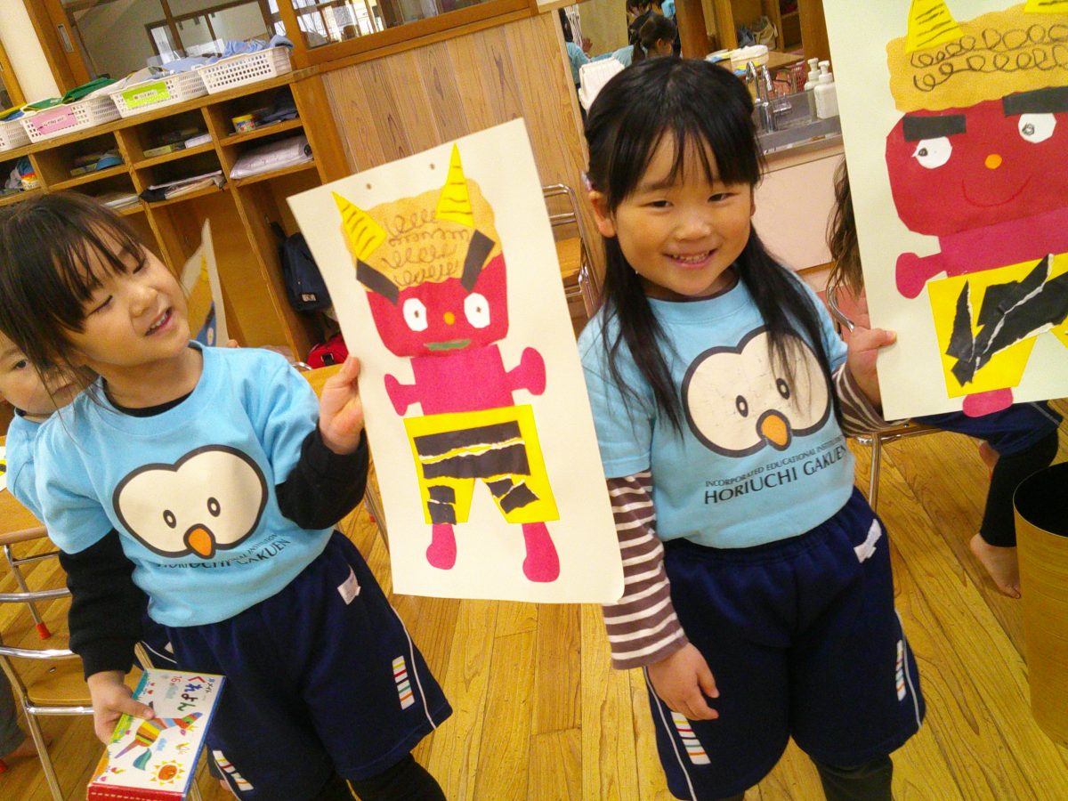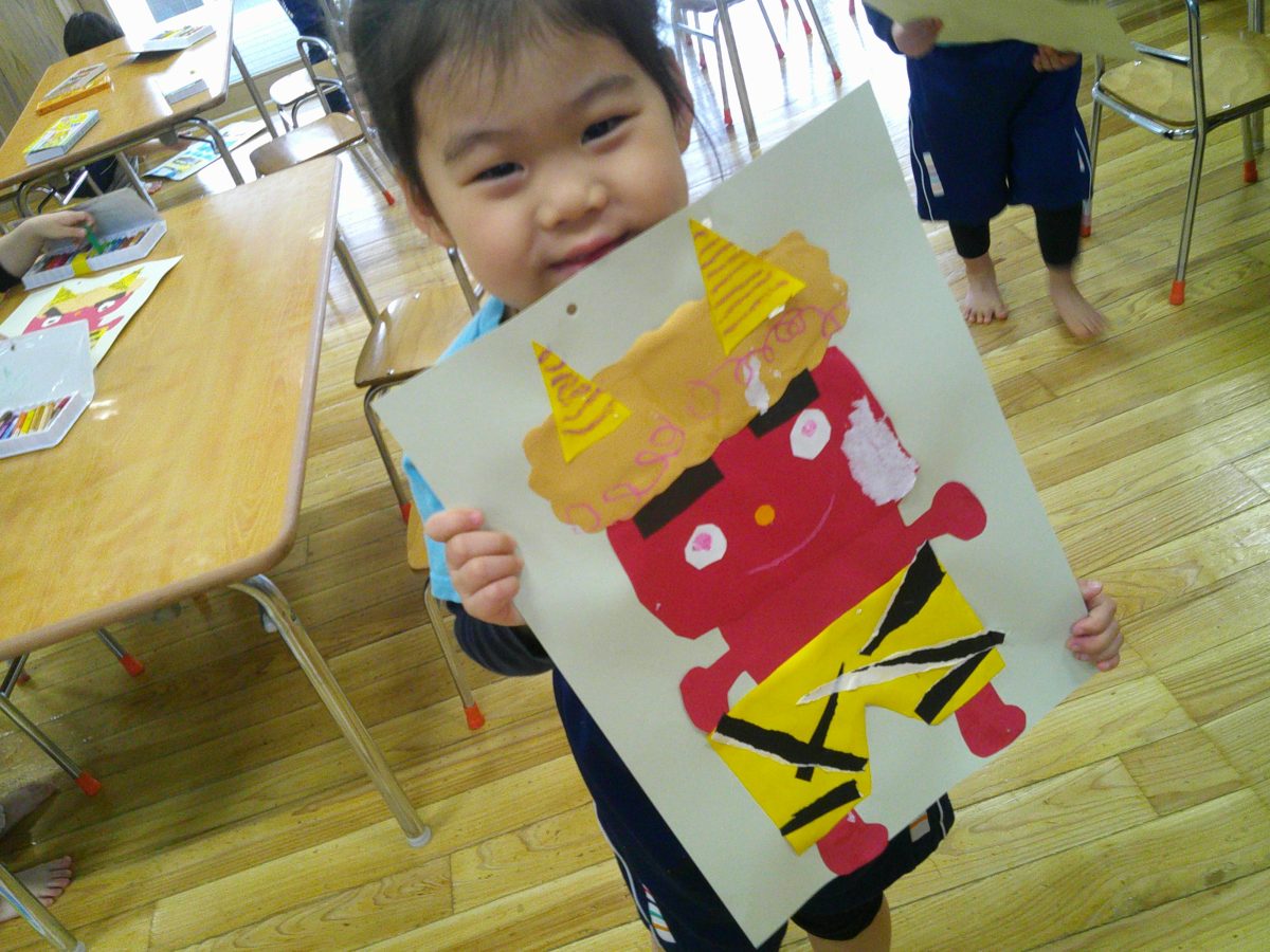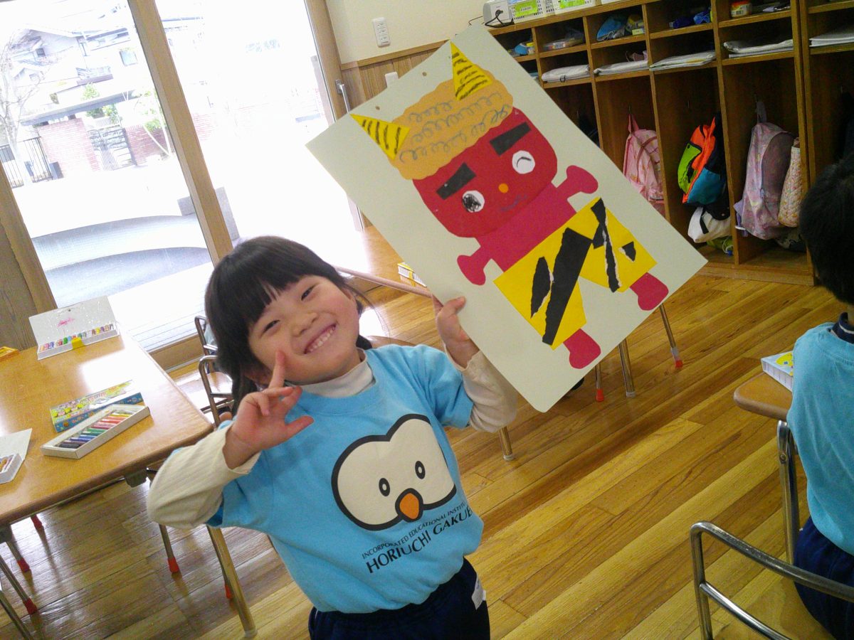 鬼のお顔完成~~💕とっても可愛い鬼さんが出来上がりました🌟