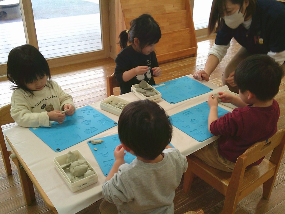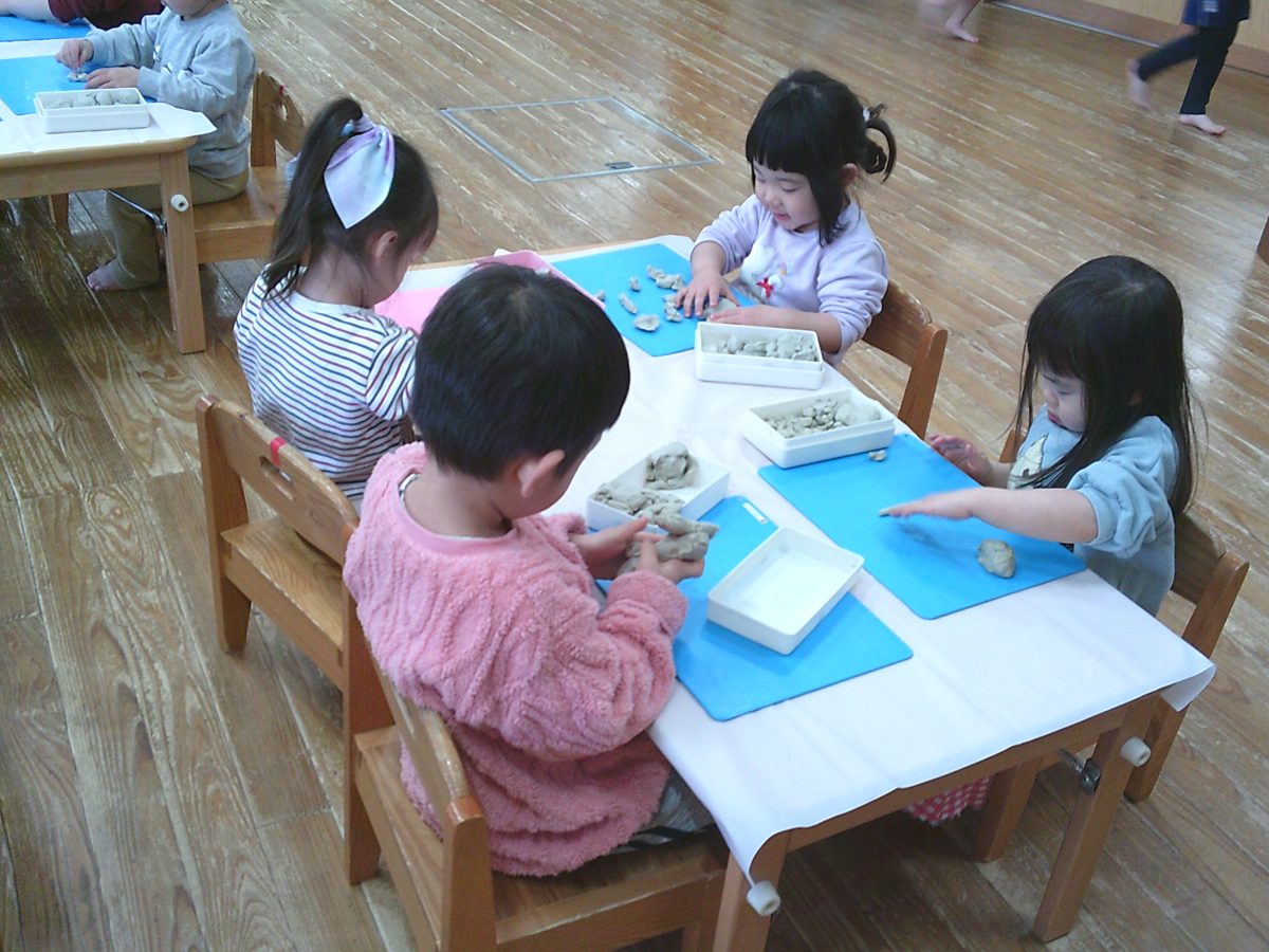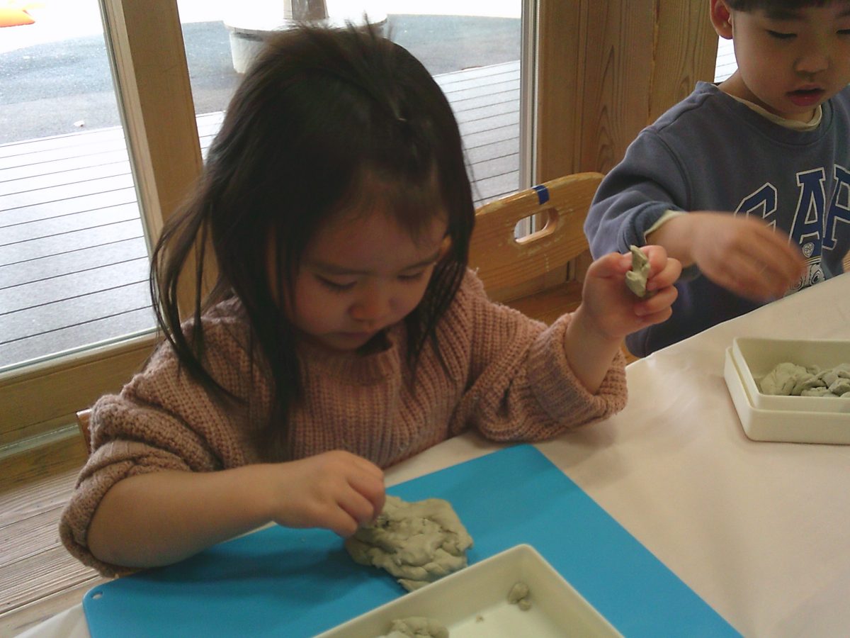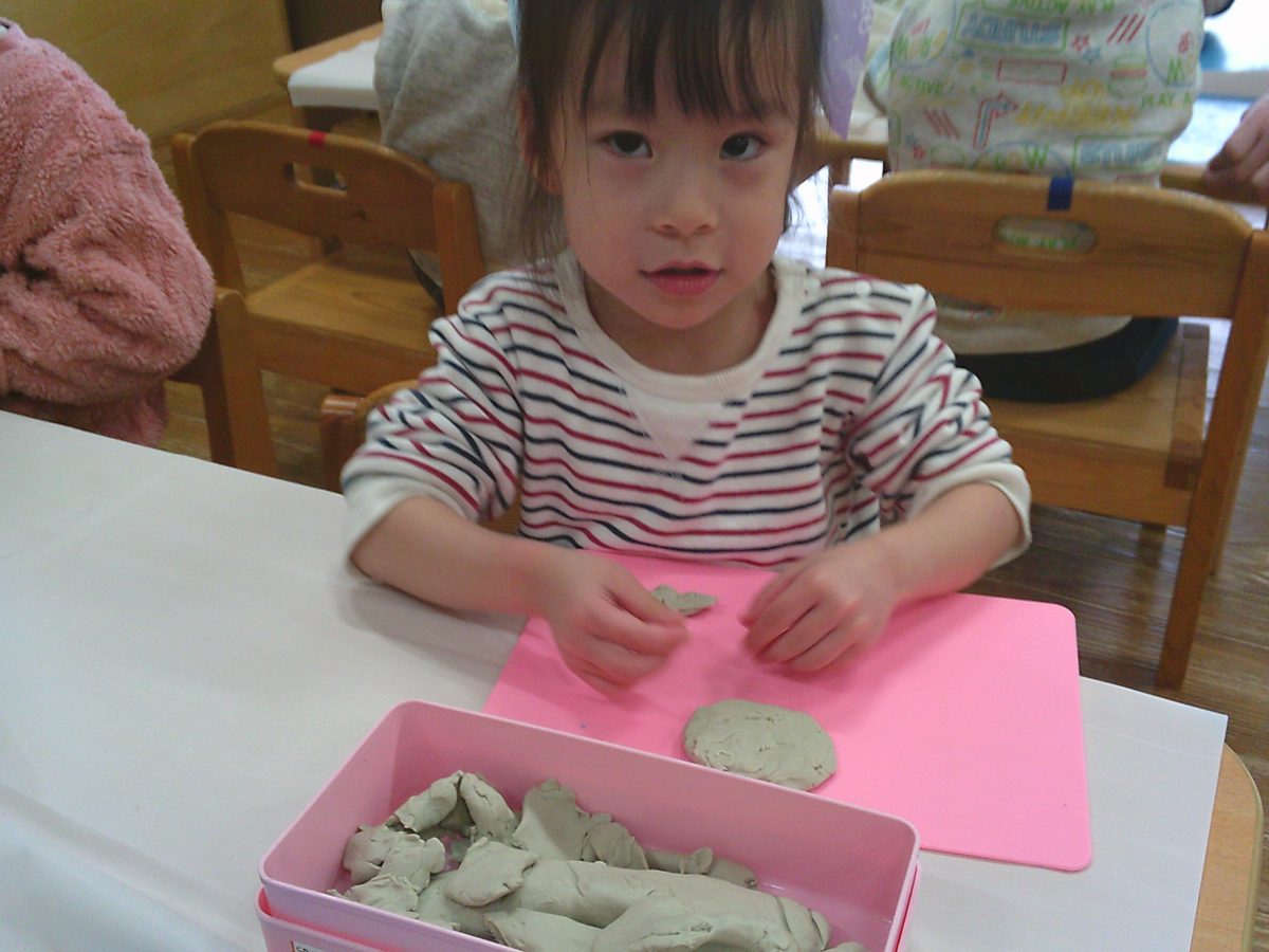 練習のあとは粘土遊び😊にぎにぎにぎ🎶「これ見て~~💕」「先生丸作って~🎶」リクエストもたくさんです😊