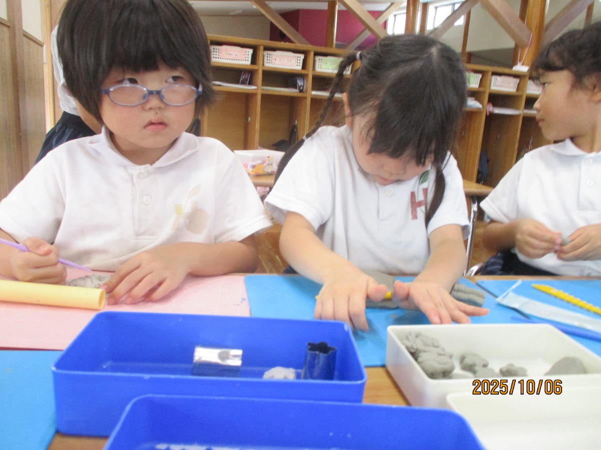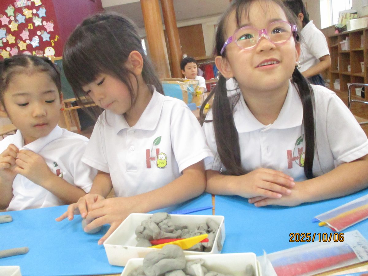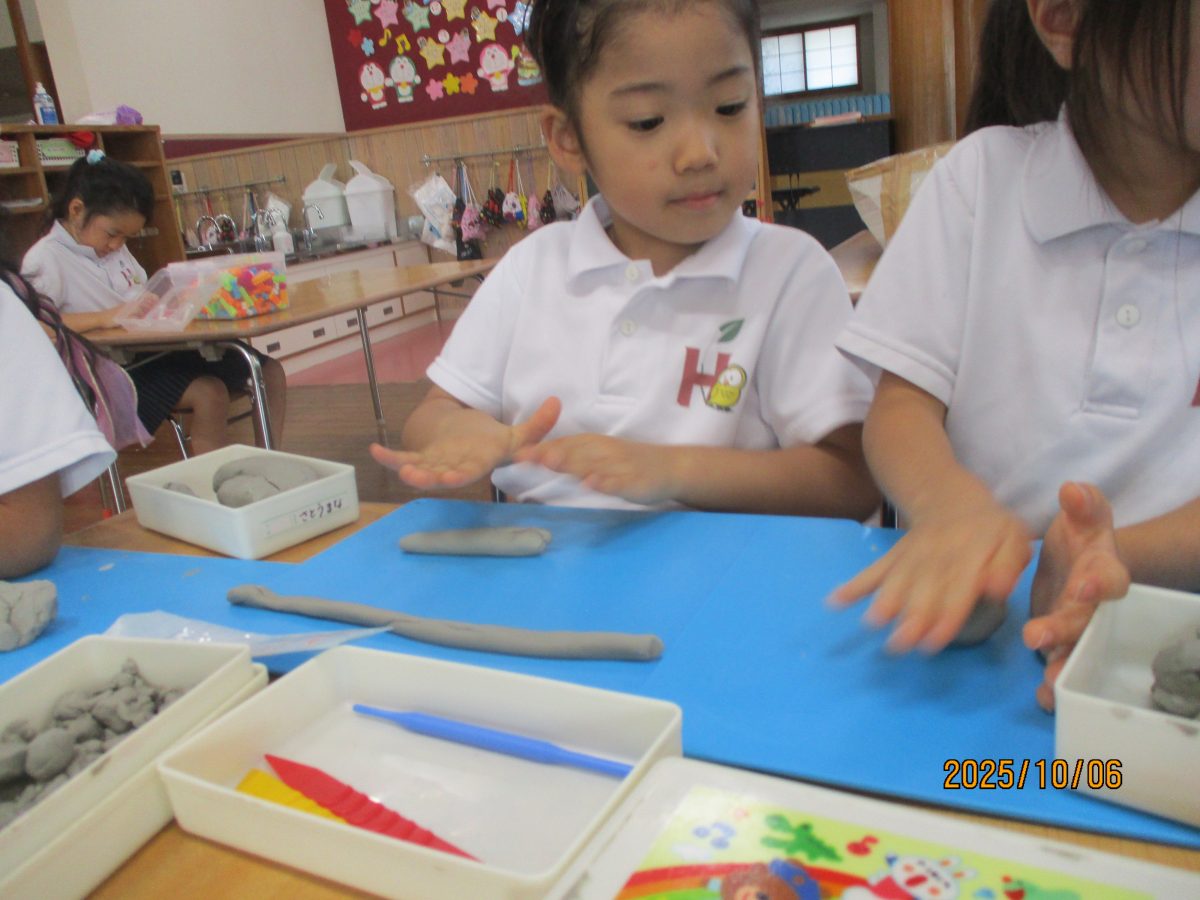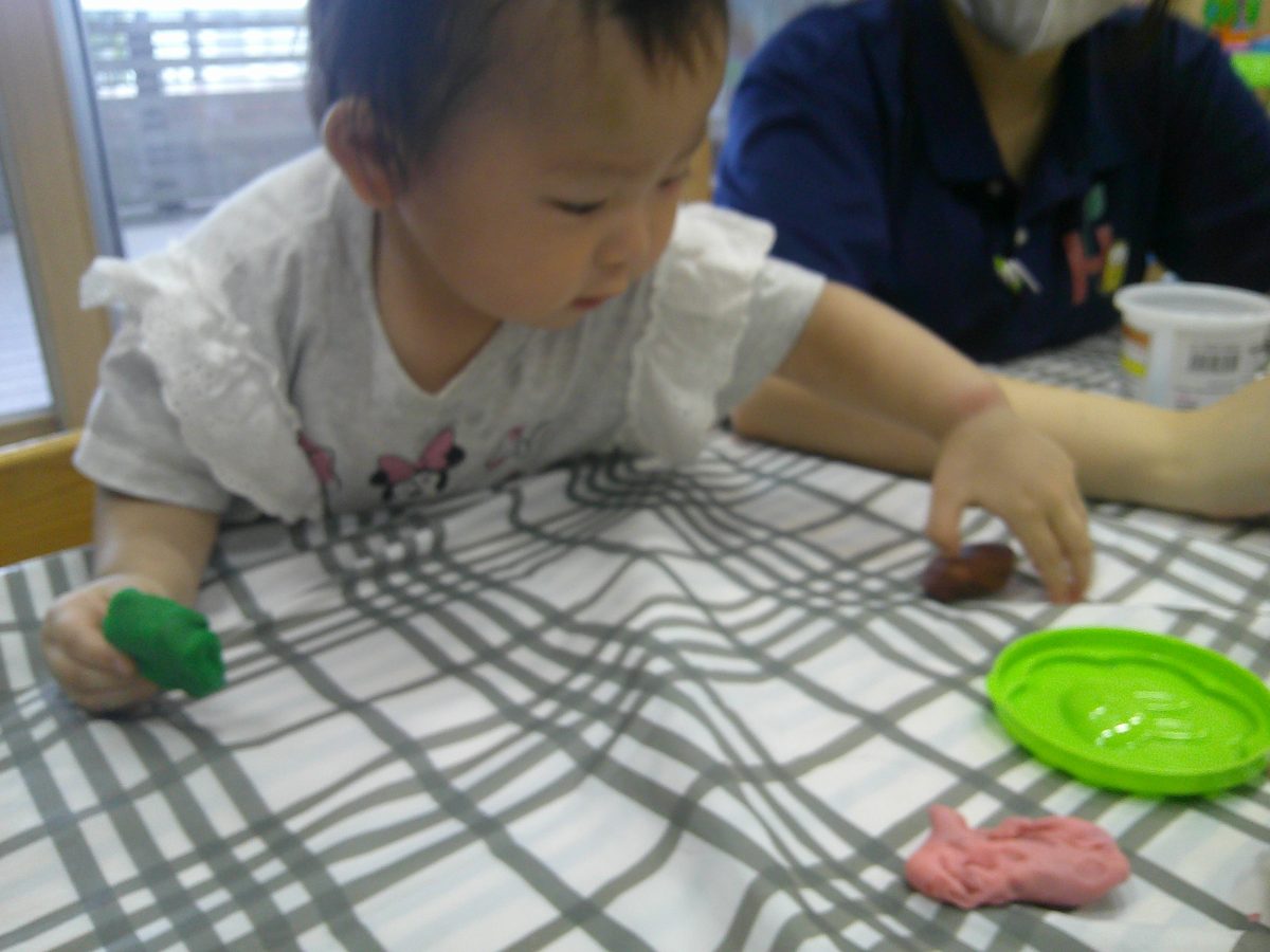 小麦粉粘土やシール貼りをして遊びました😊💕