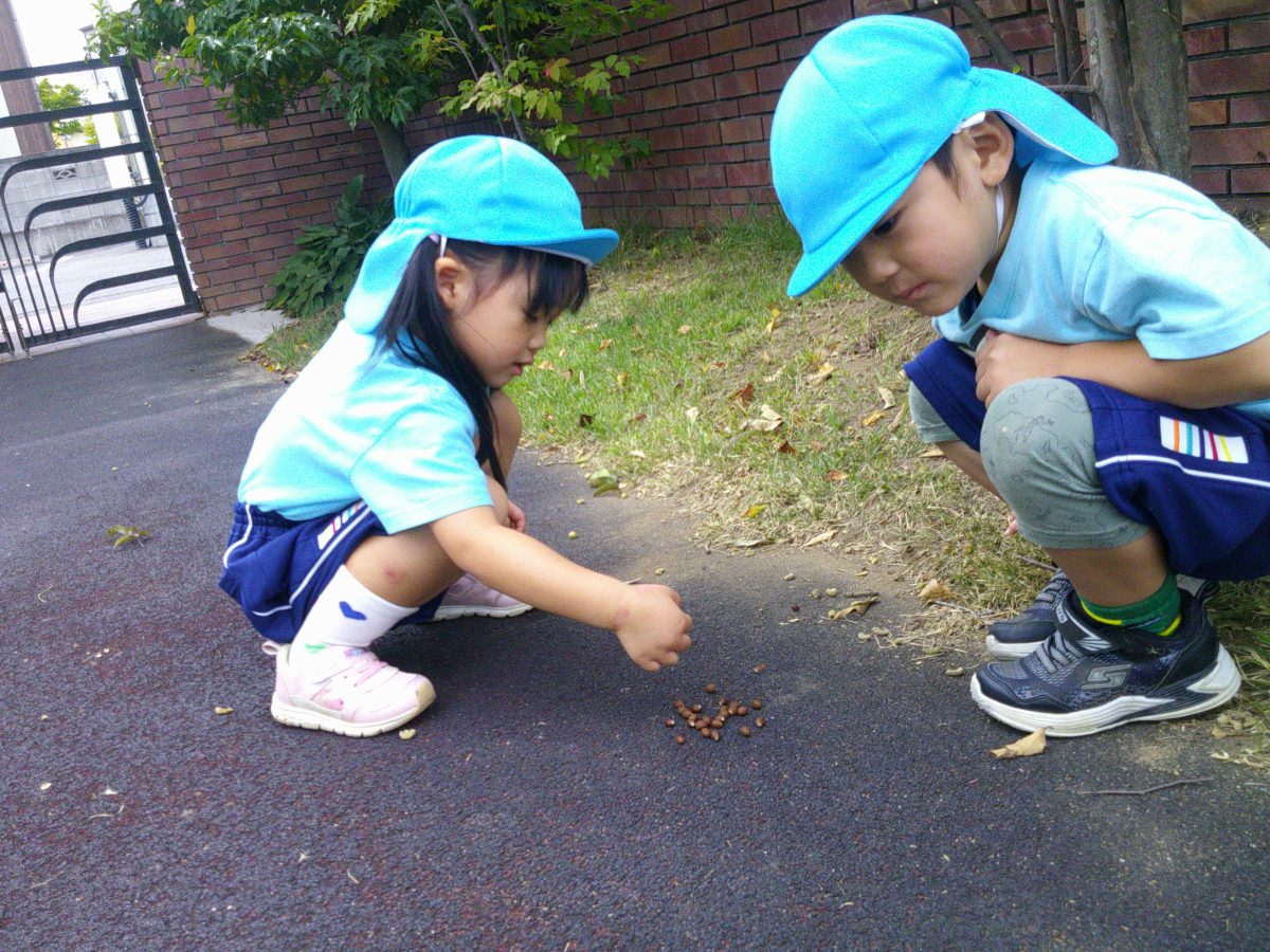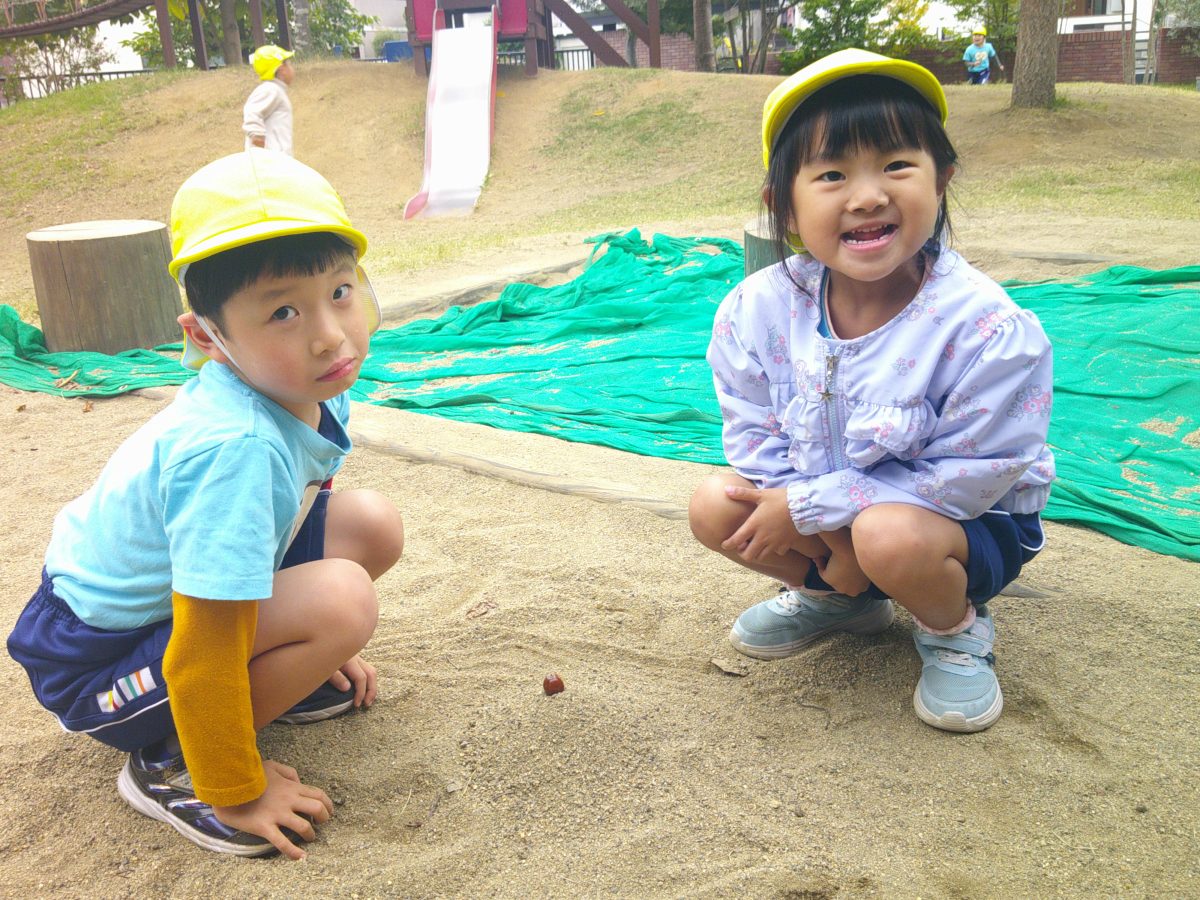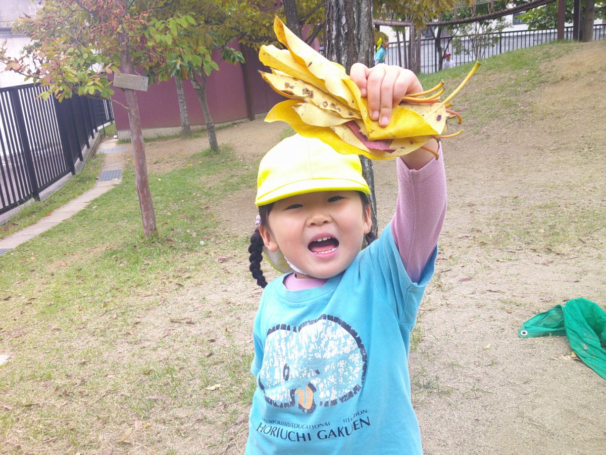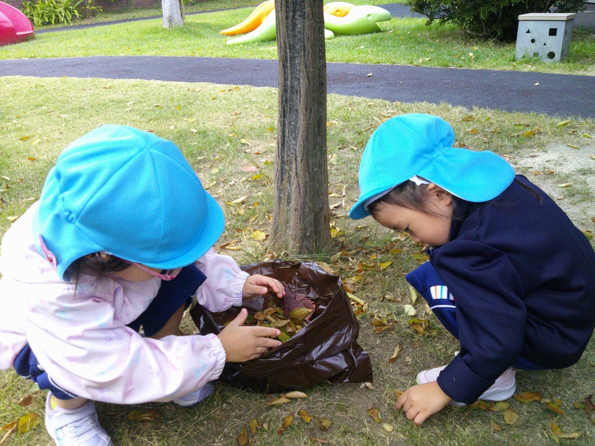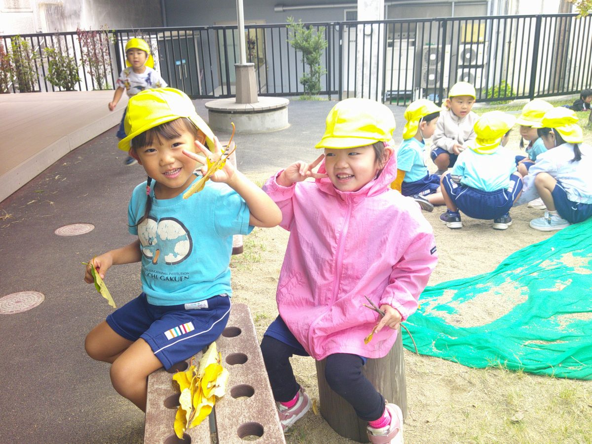 戸外でのびのびと遊びました😆落ち葉を拾って・・🍠焼こうねって約束しました✨