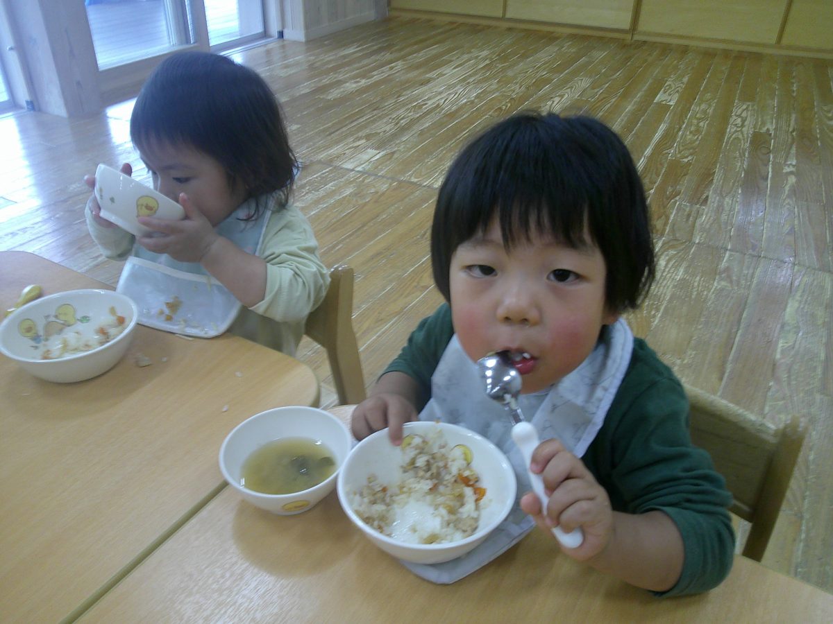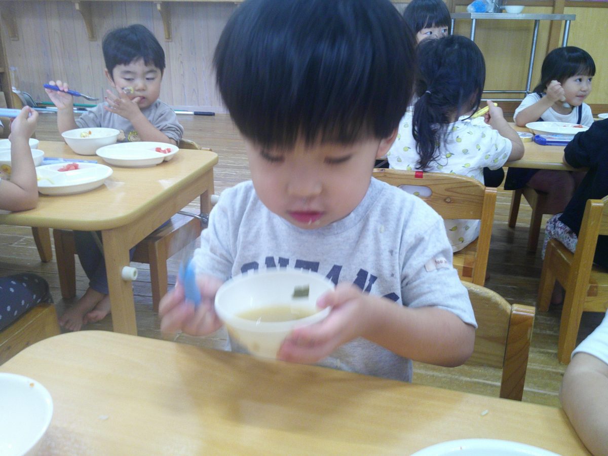 いっぱい動いて、遊んだので給食もモリモリ食べていました。お味噌汁のおかわりコールが止まりません😅