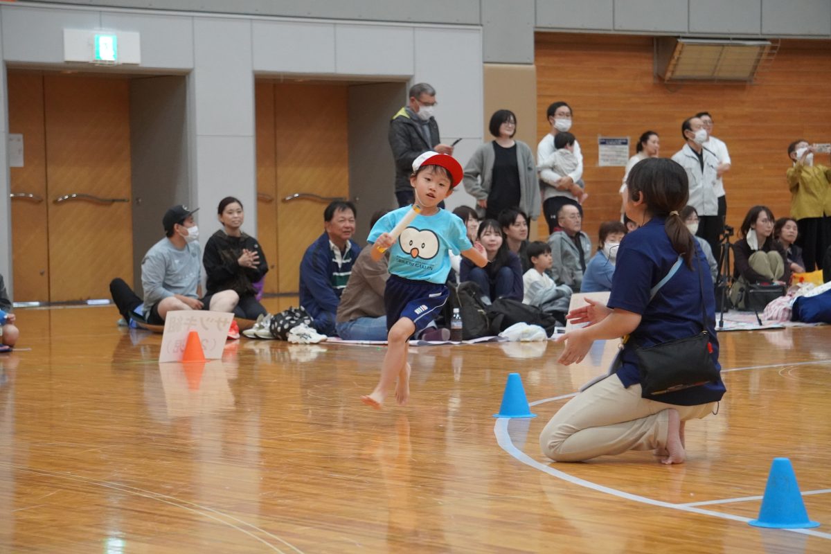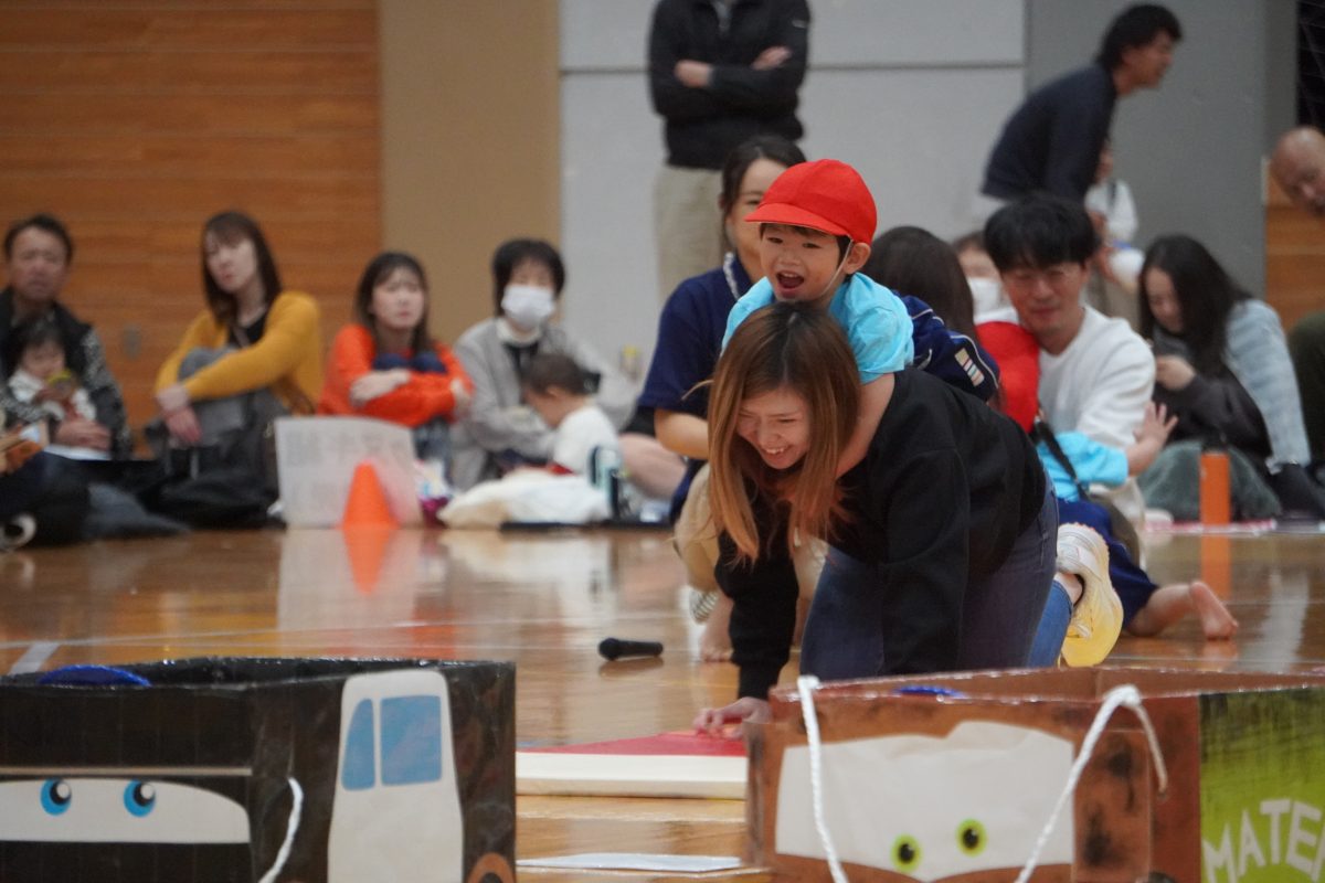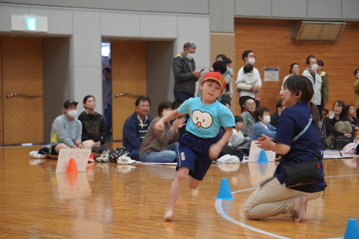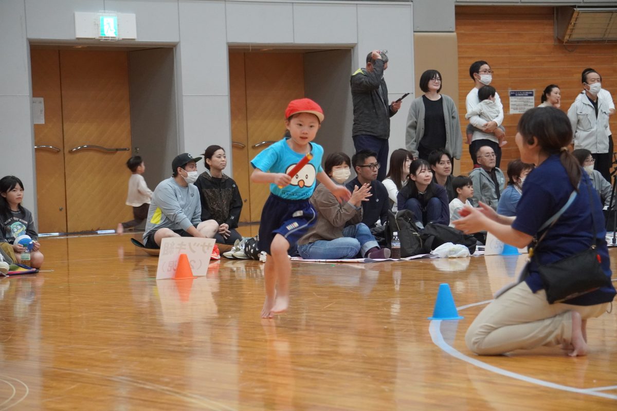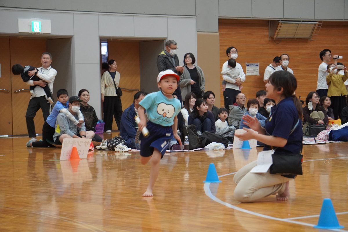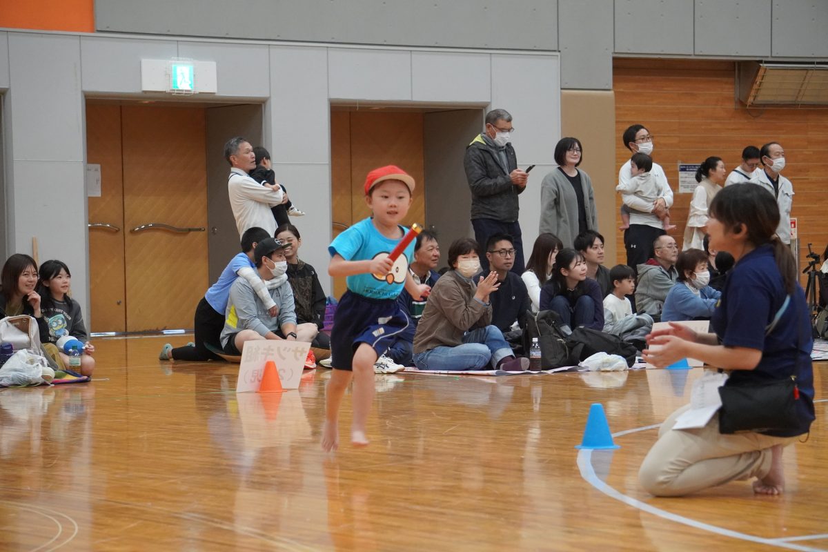 お家の方と力を合わせて走ったり、障害物をクリアしたり…。
