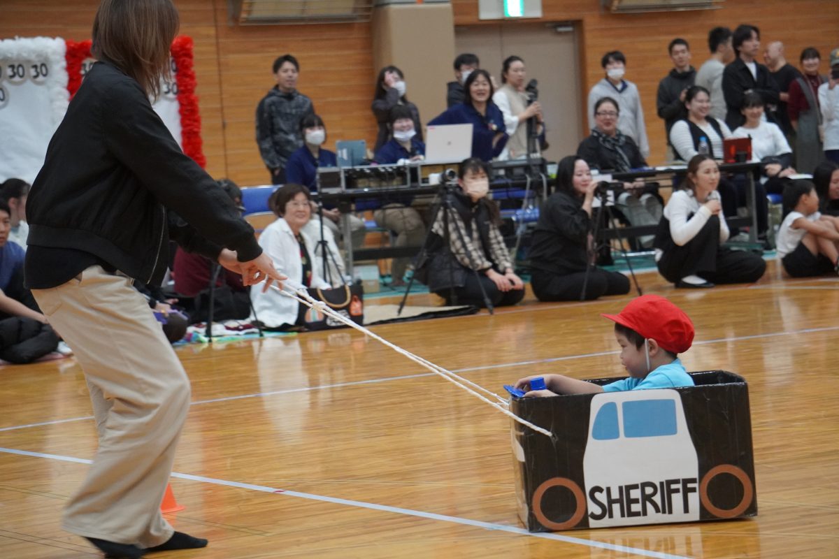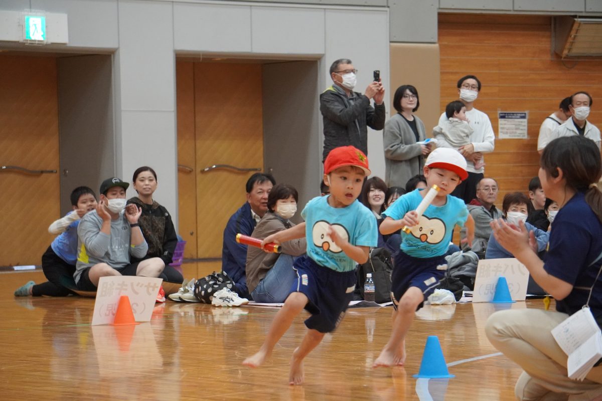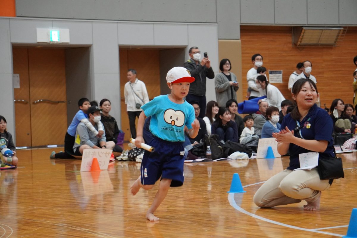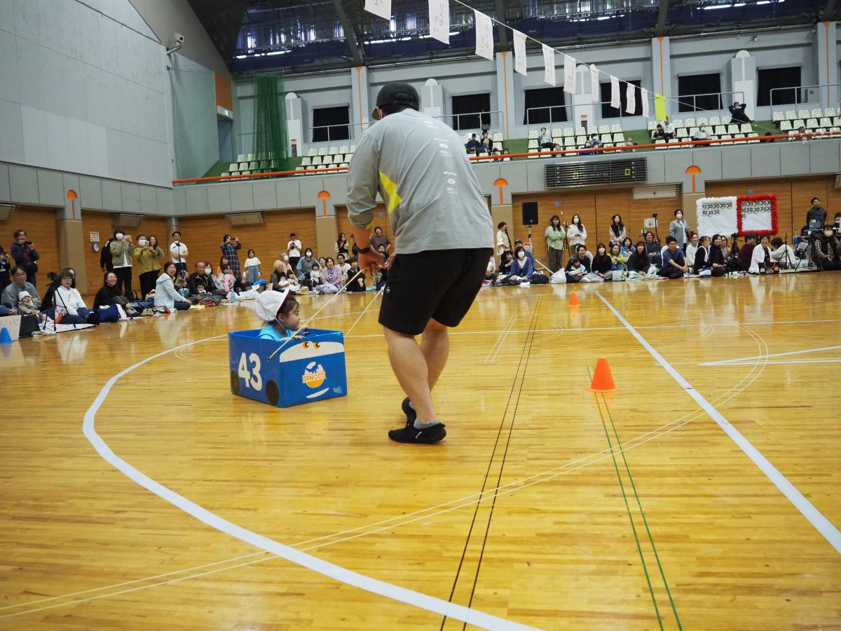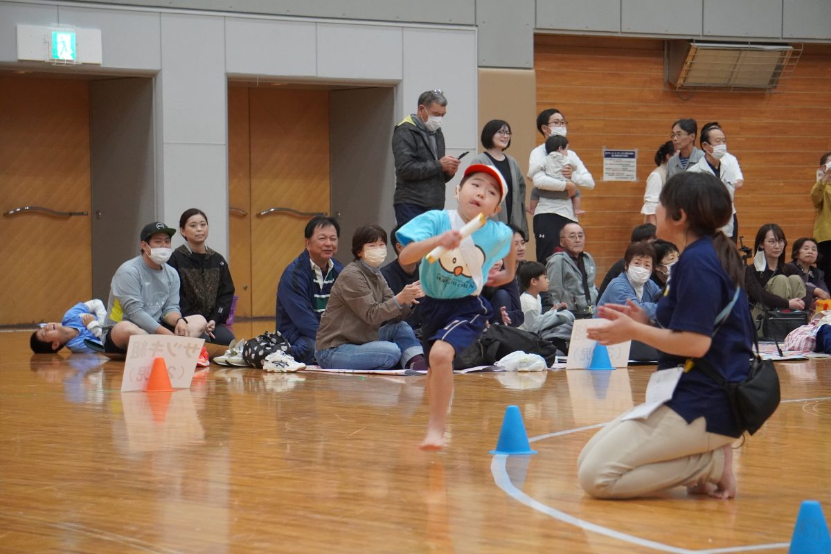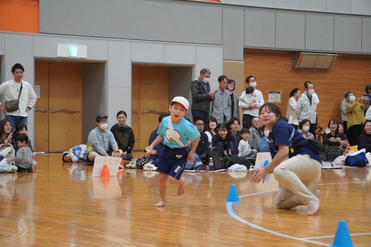 お家の方と力を合わせて走ったり、障害物をクリアしたり…。