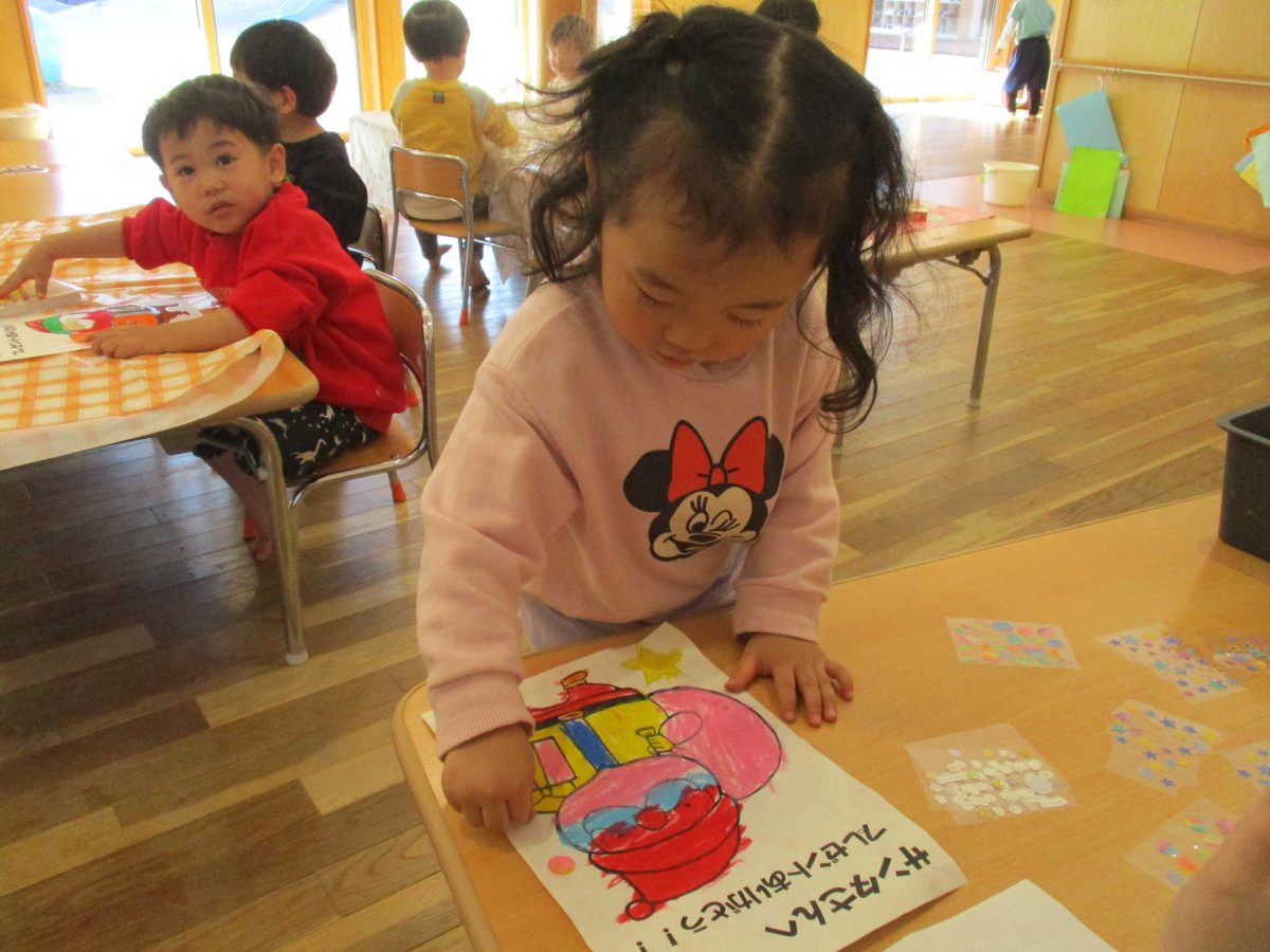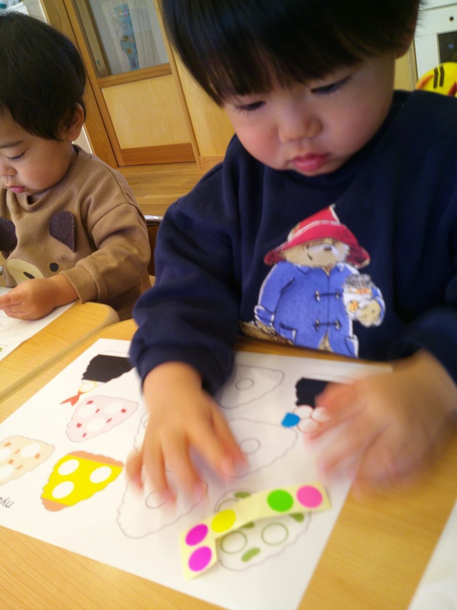 シール貼りをしました👆小さいシールにも挑戦したよ✨