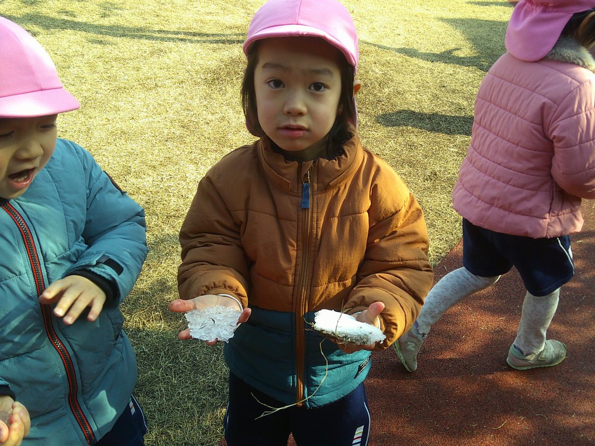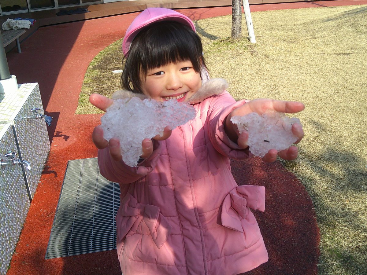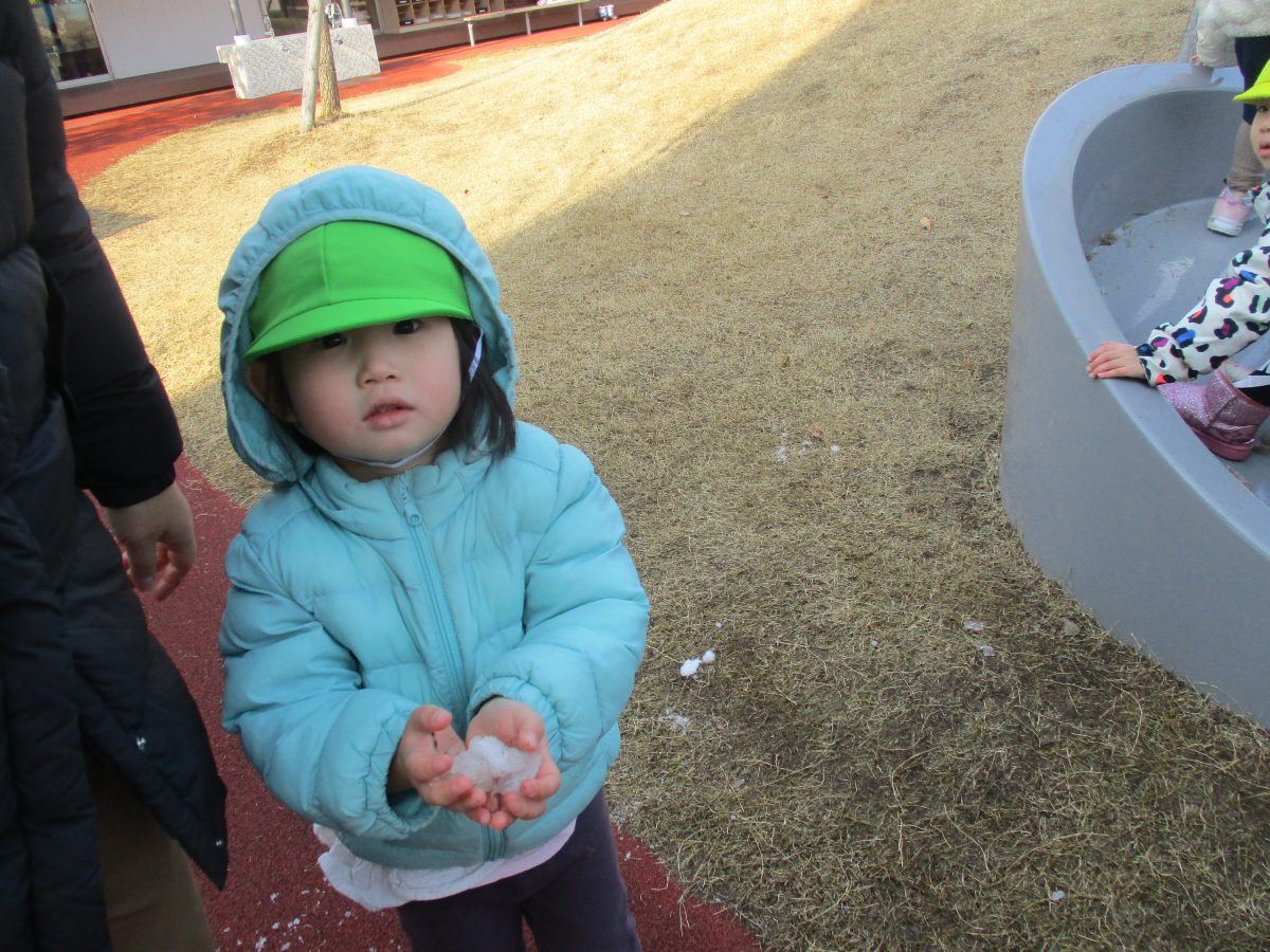 今日はお外にも行って遊びました!まだ溶けてない氷を発見!👀✨