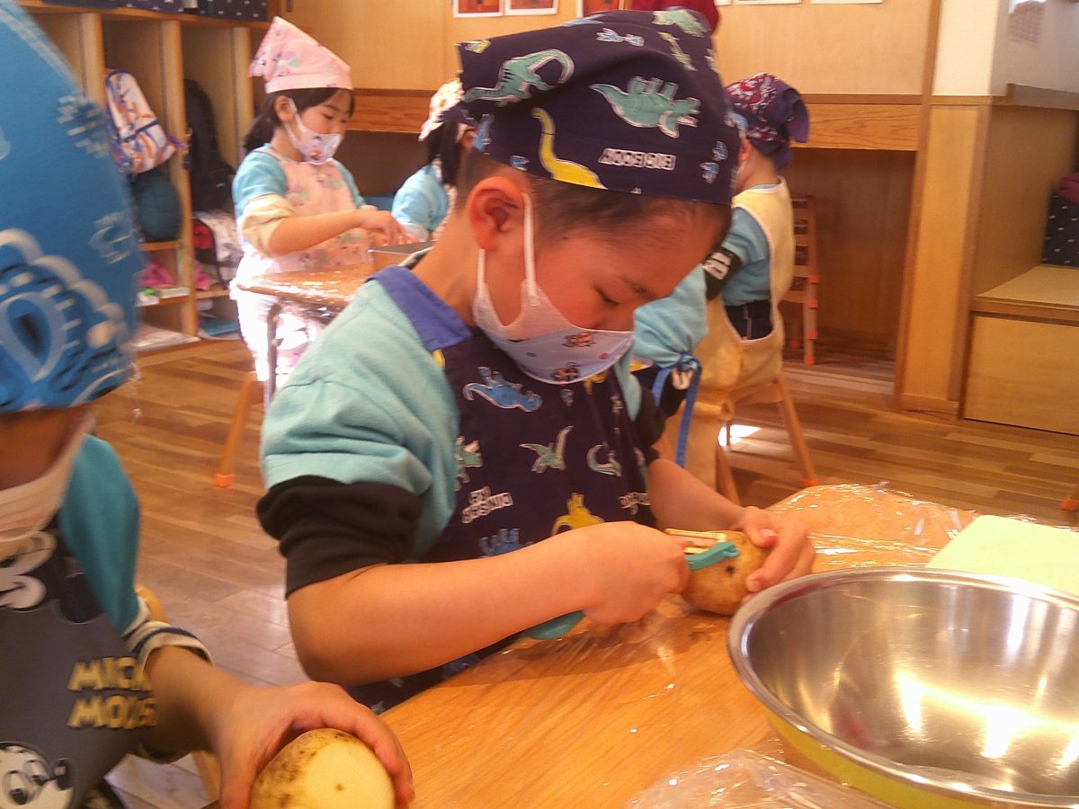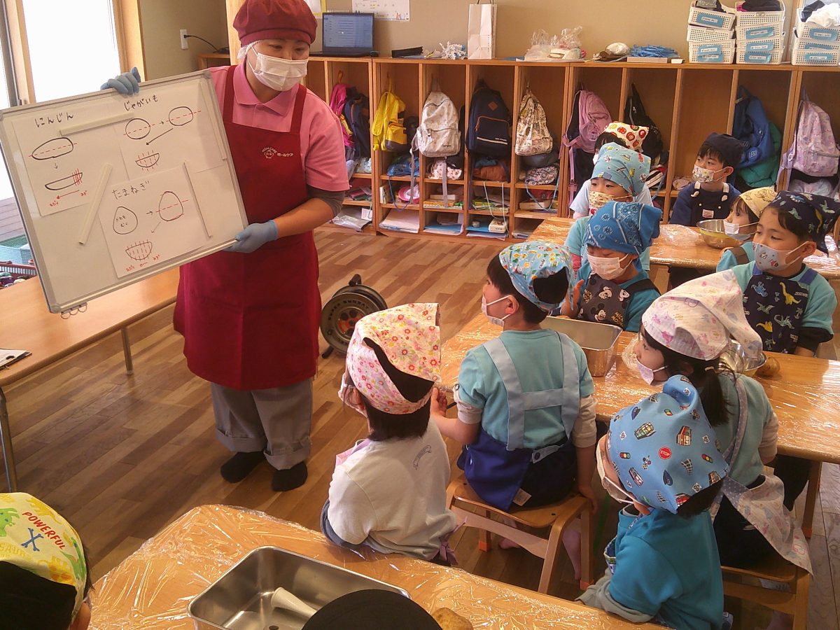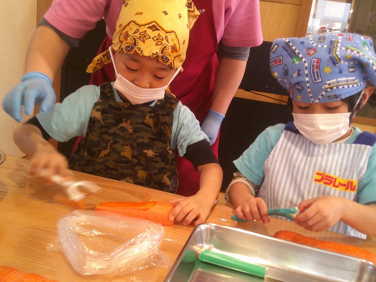 ミールケアさんの話をよく聞いて、野菜の皮をむいたり、包丁で切ったりしました🥕🥔