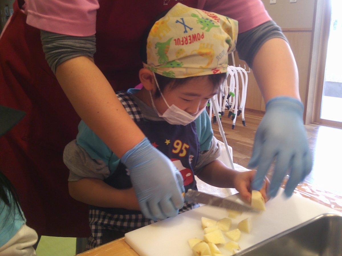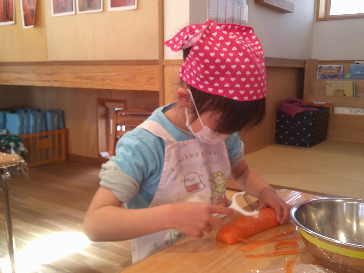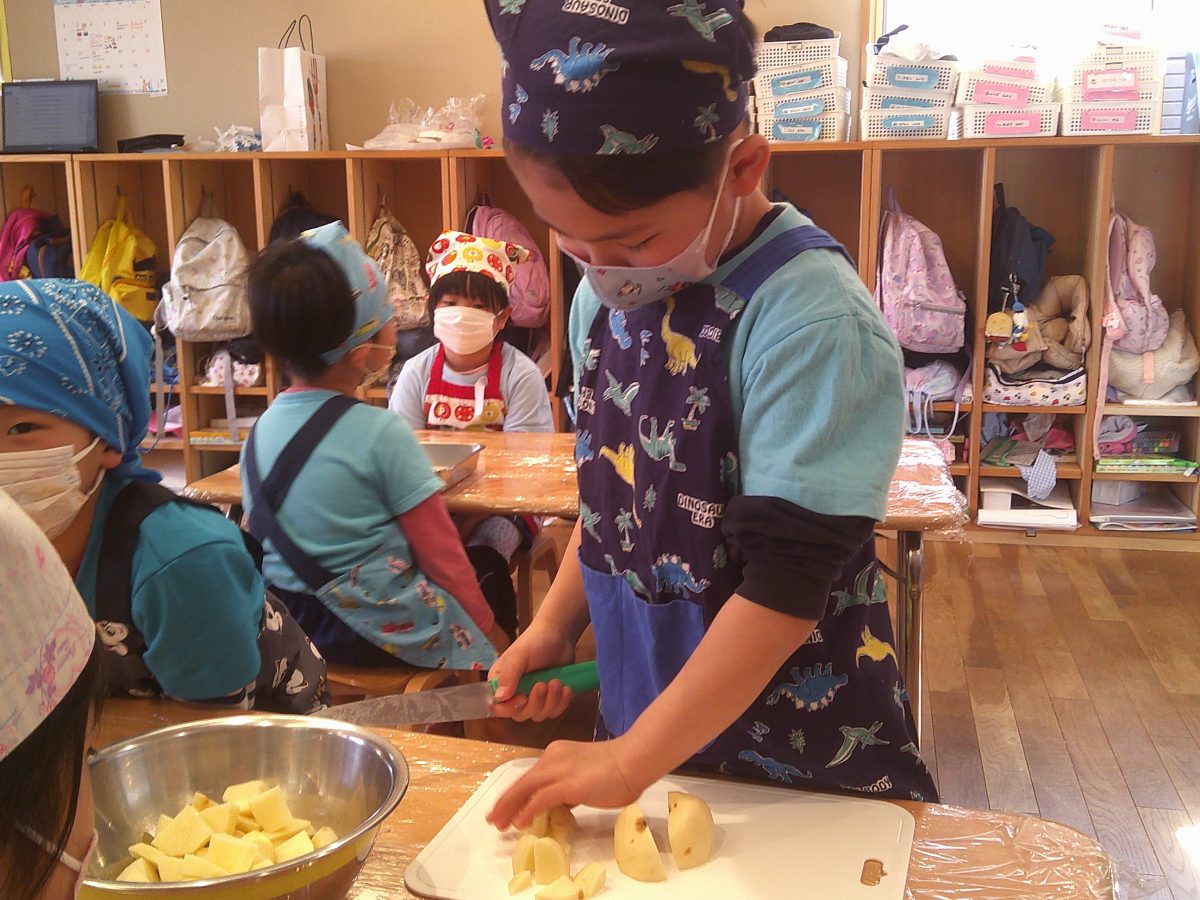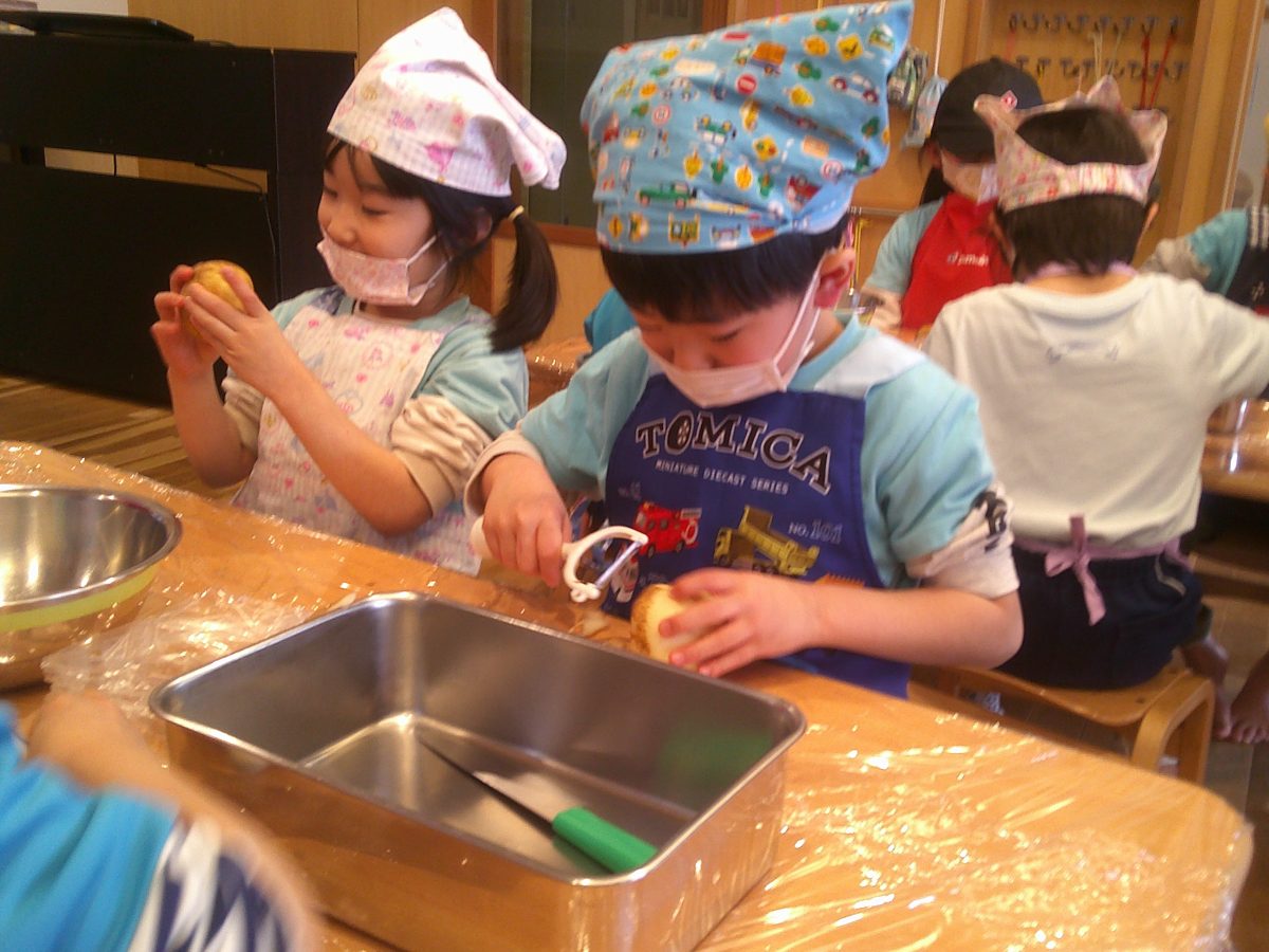 ミールケアさんの話をよく聞いて、野菜の皮をむいたり、包丁で切ったりしました🥕🥔