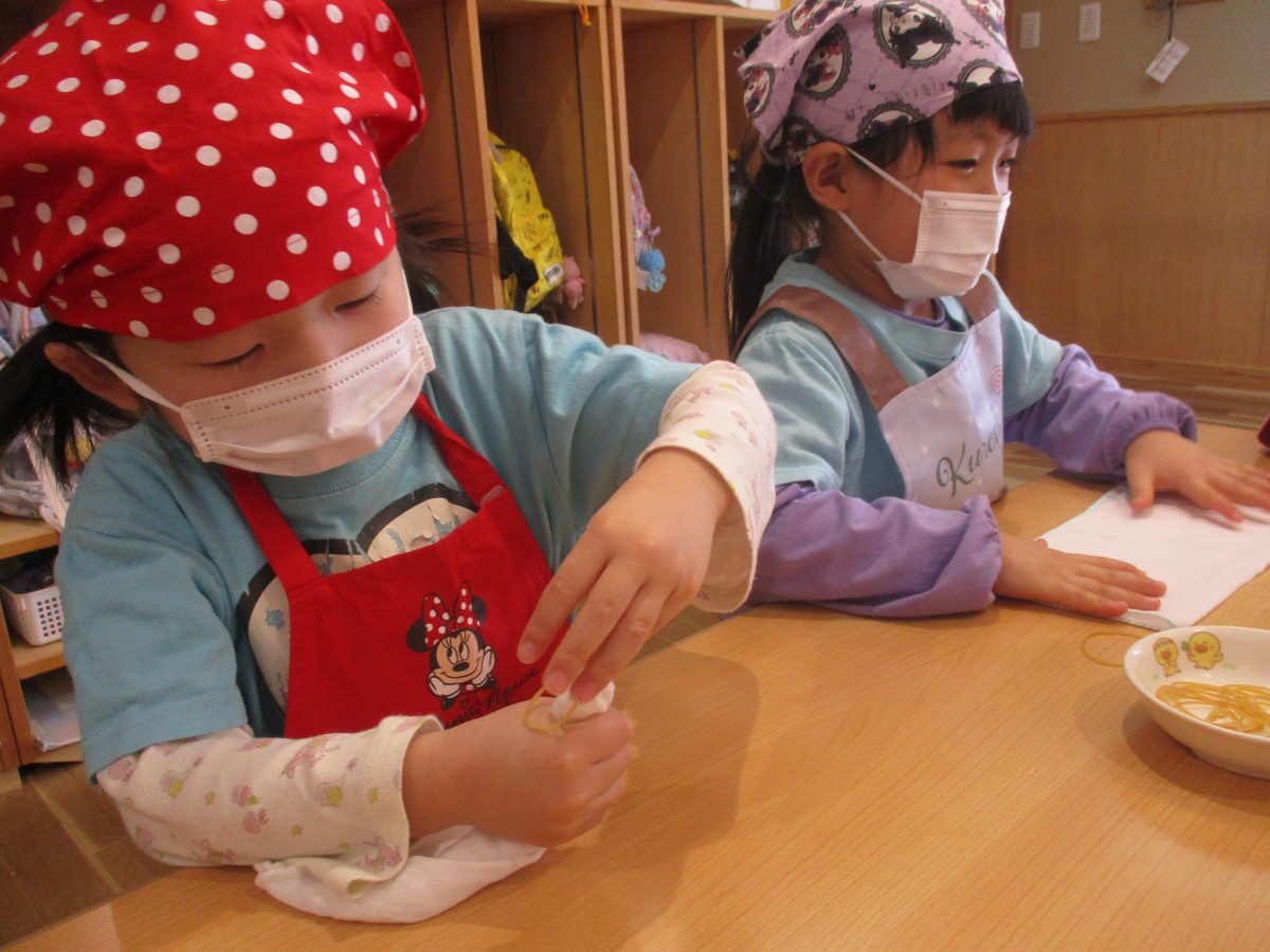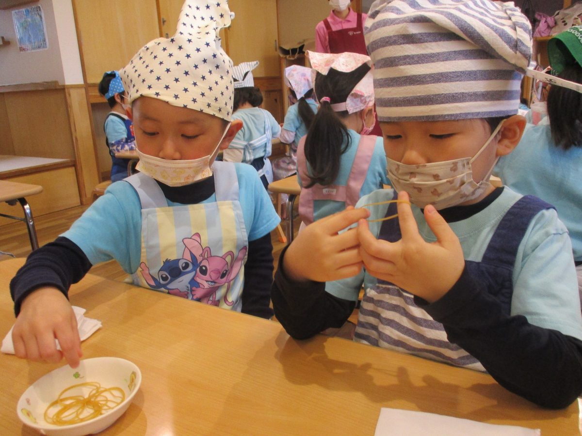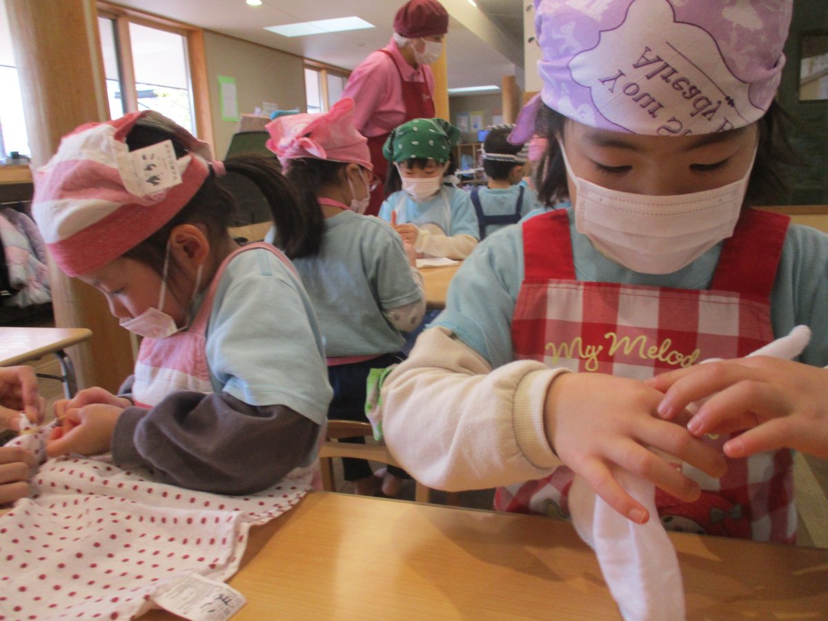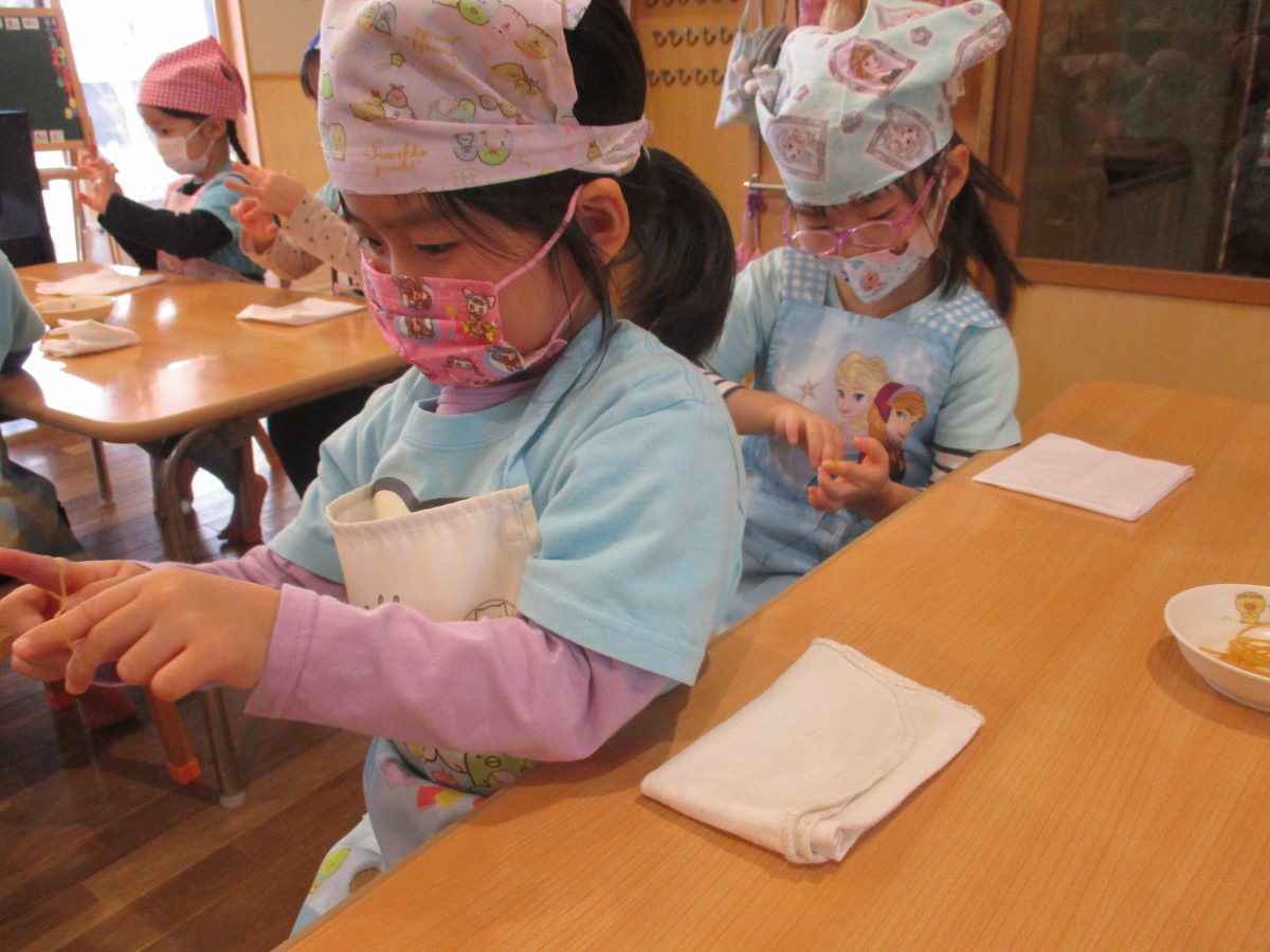 最初は、自分の指に輪ゴムを巻いてみよう!!苦戦しながらも頑張っていましたよ👏
