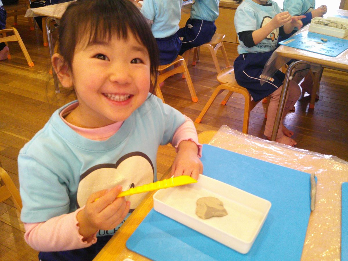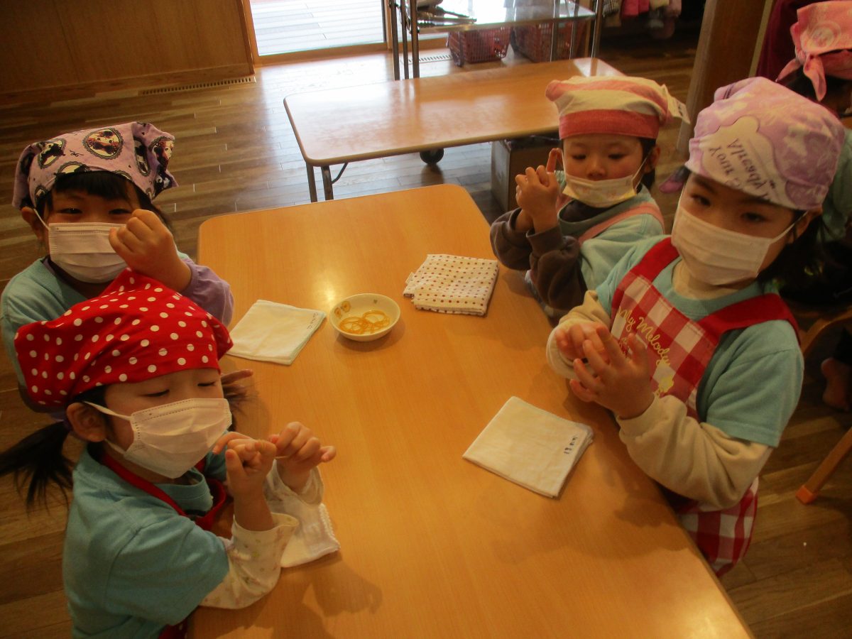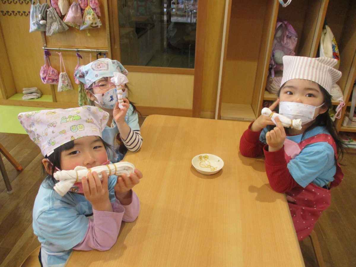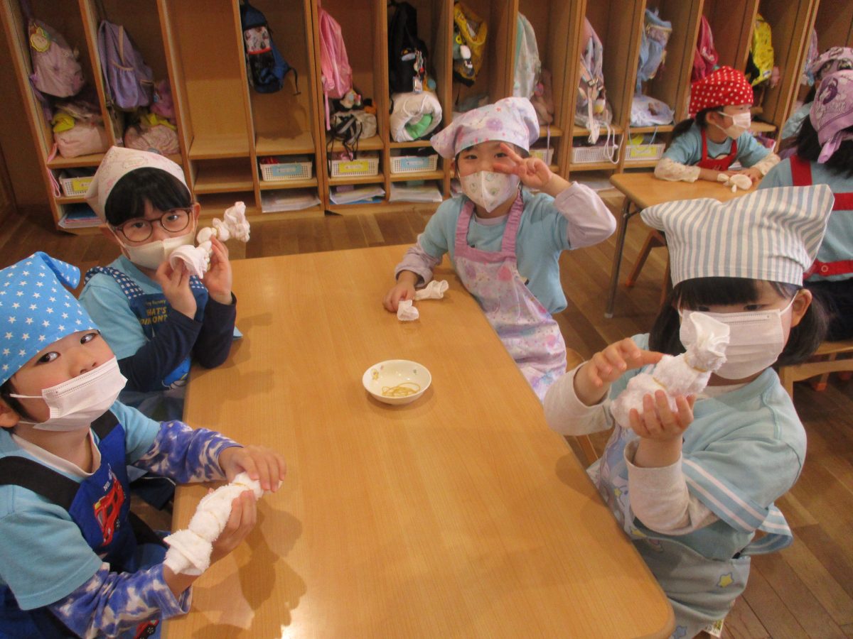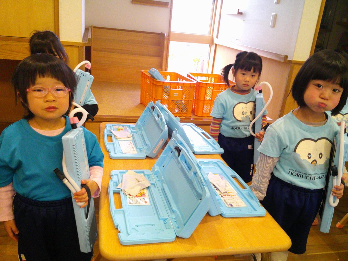 最初は、自分の指に輪ゴムを巻いてみよう!!苦戦しながらも頑張っていましたよ👏
