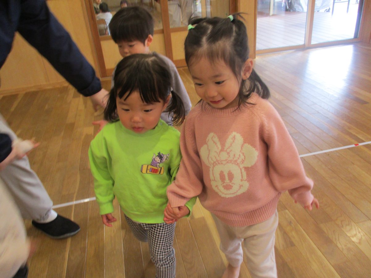 お友だちとガッシャンコで電車になってホールまで移動できるようになりました👏✨