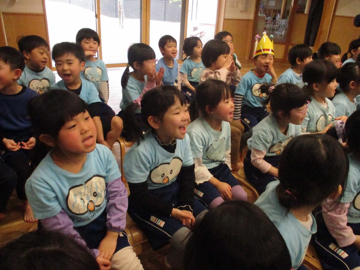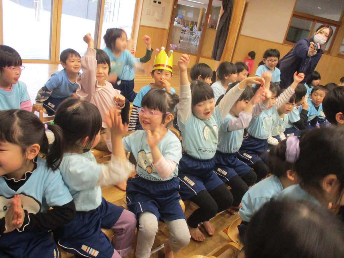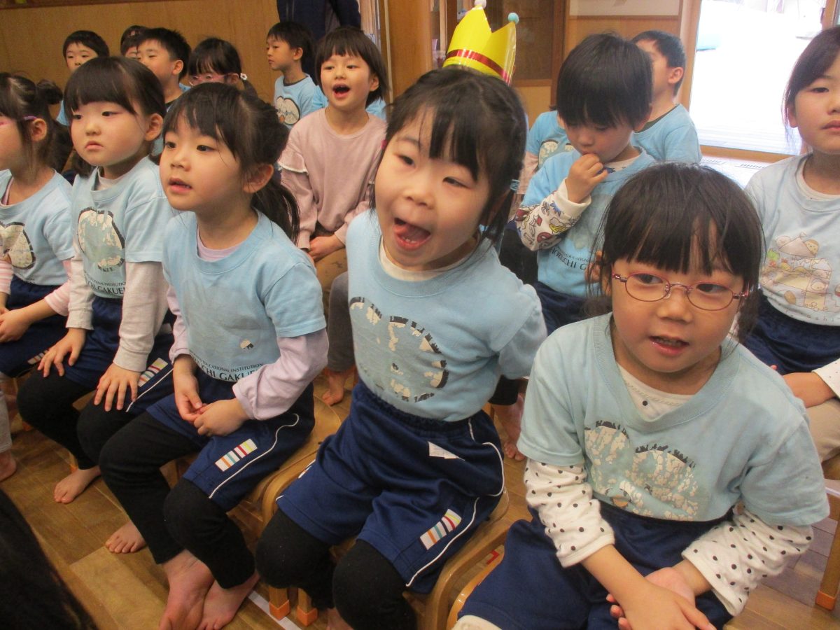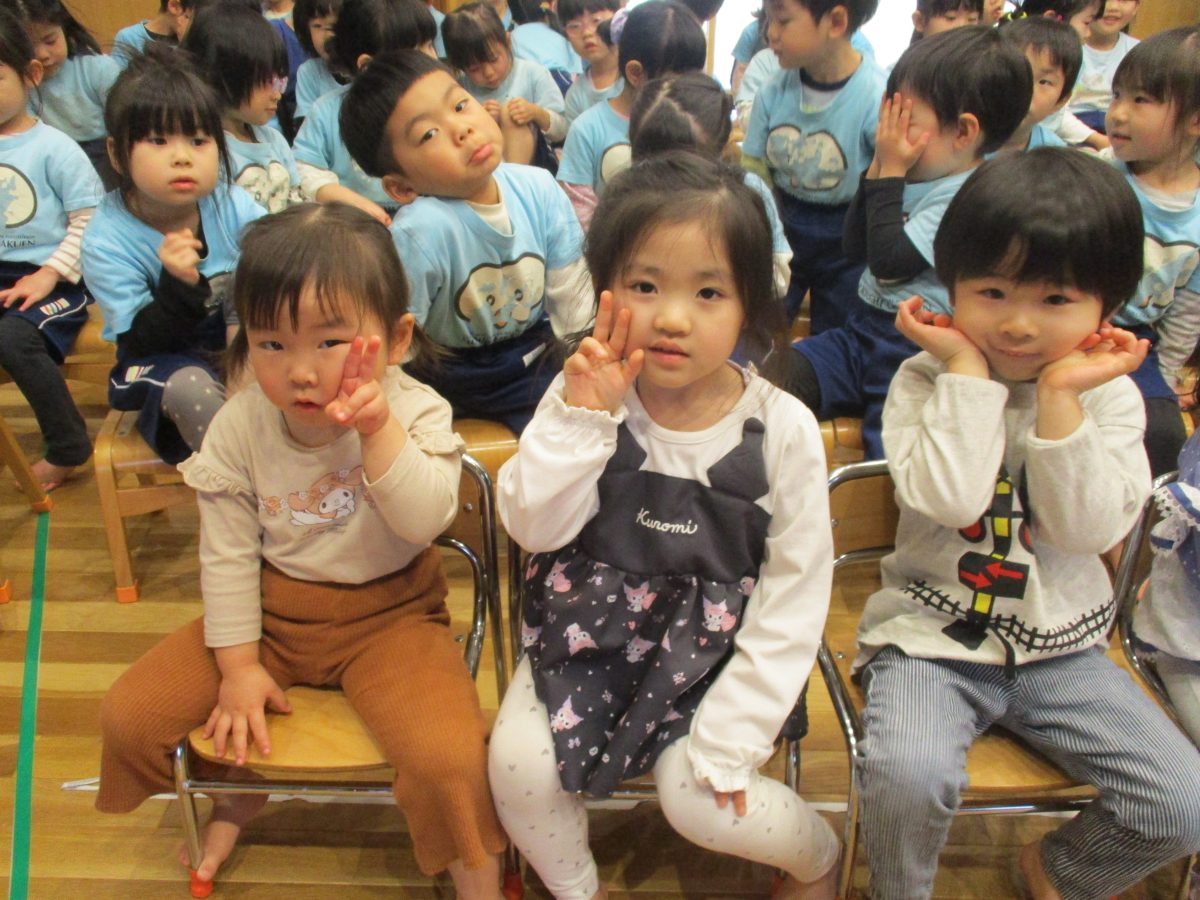 たくさんのお友だちにお祝いされ、とても嬉しそうな3人の幼児部さん😊