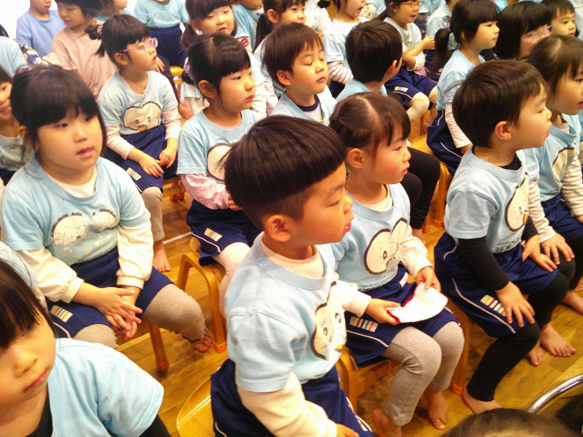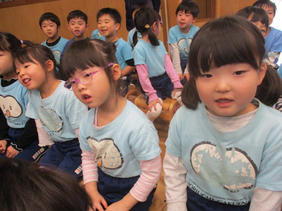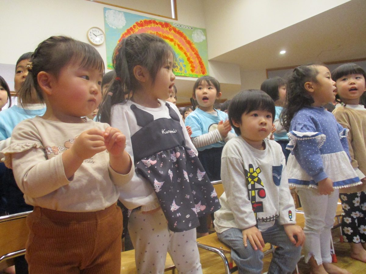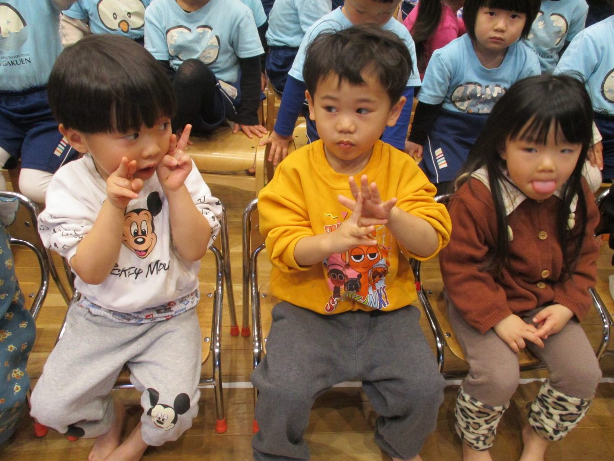 たくさんのお友だちにお祝いされ、とても嬉しそうな3人の幼児部さん😊