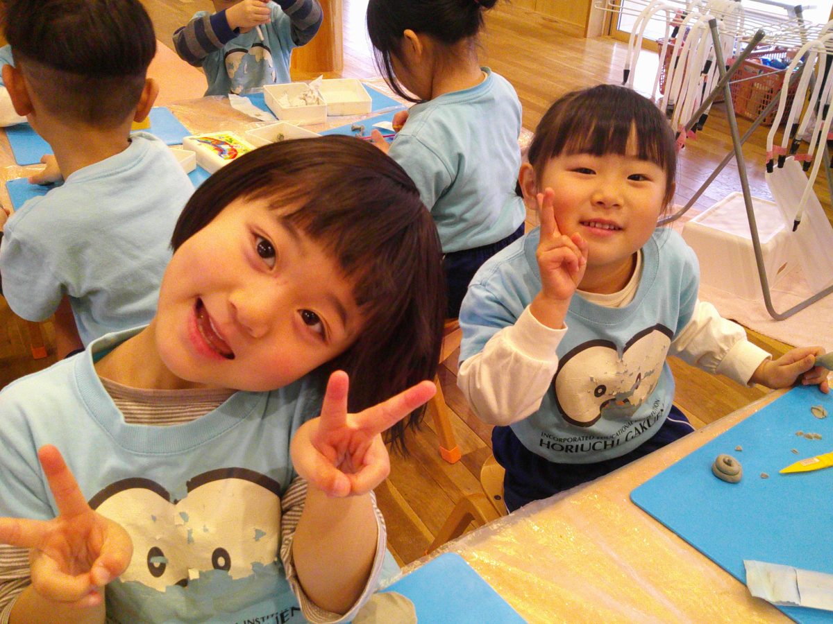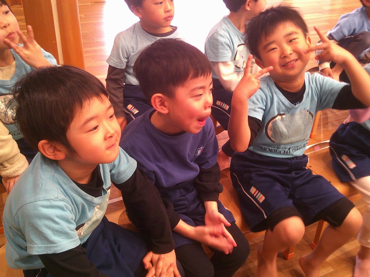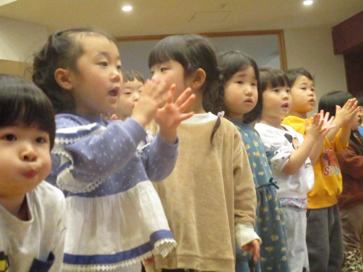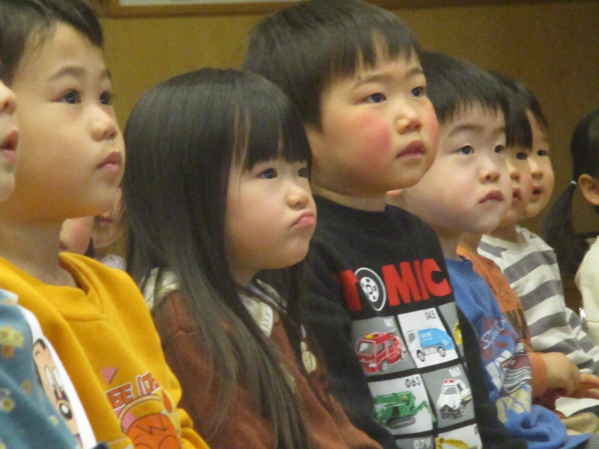 たくさんのお友だちにお祝いされ、とても嬉しそうな3人の幼児部さん😊