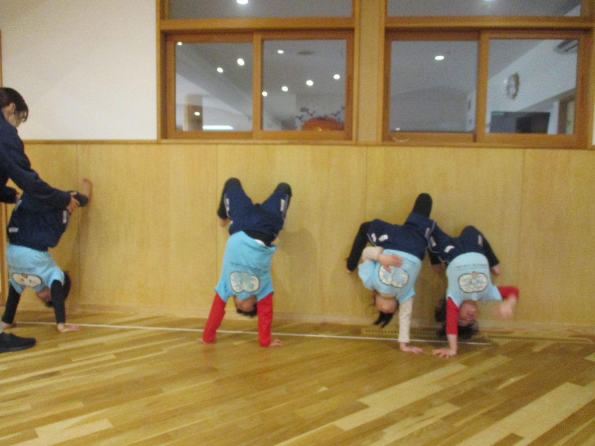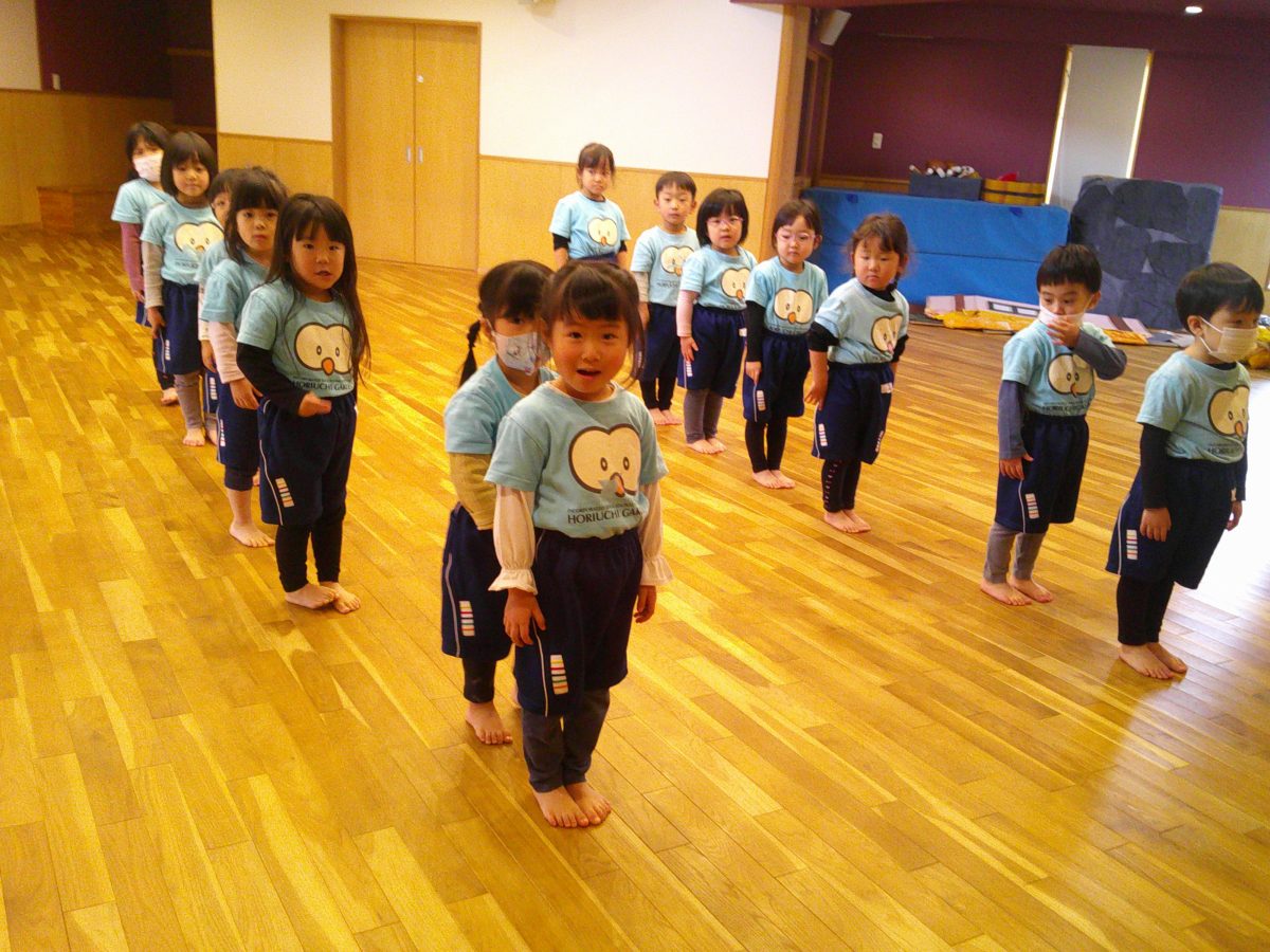 ホールへ移動し、マラソン柔軟体操を行いました☺️