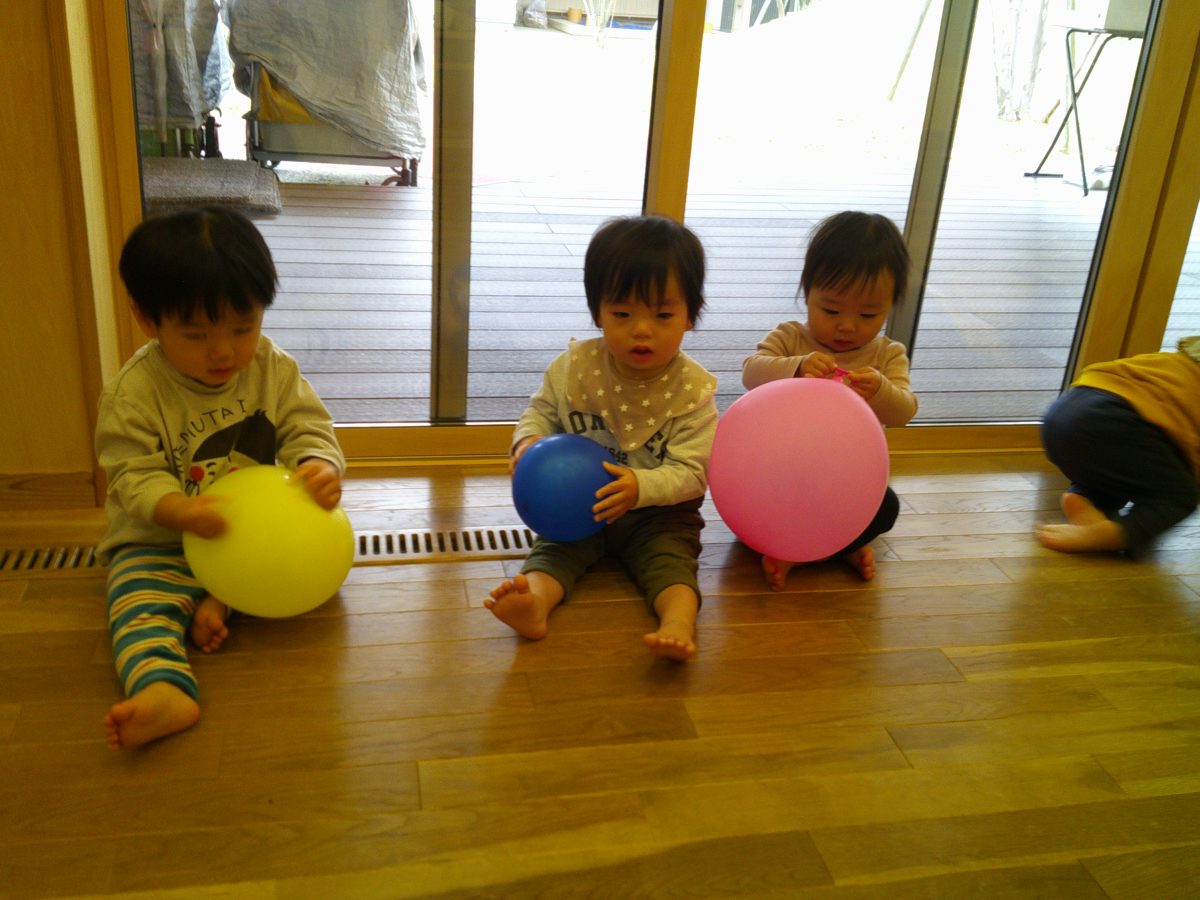 お部屋で風船遊び🎈風船よりもゴミ袋に空気を入れて飛ばして遊ぶ方が大人気でした😅