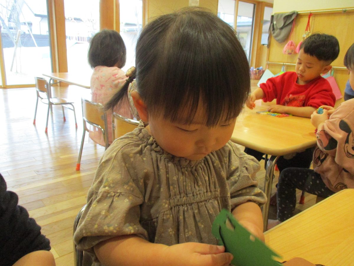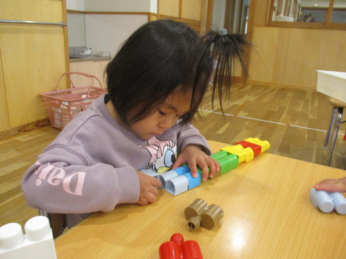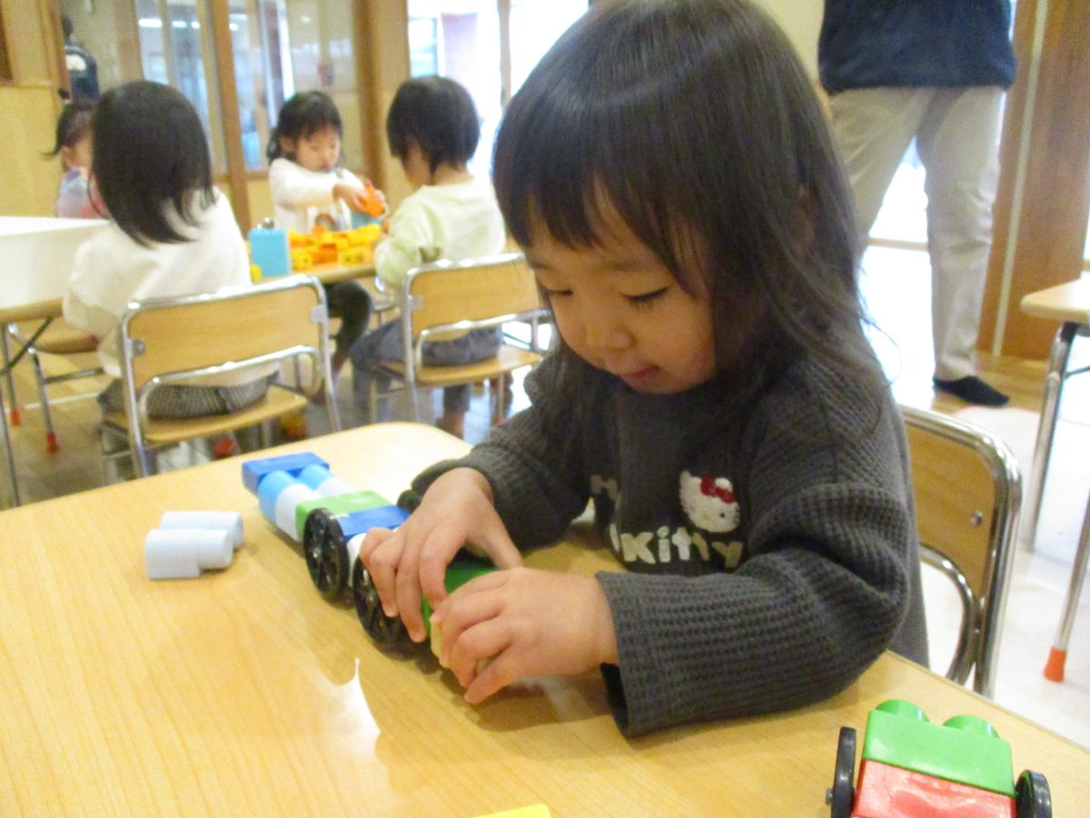 今日は、製作をして過ごしました!順番を待っている間はぬいぐるみでおままごとや、絵本にブロックで遊んで過ごしました!