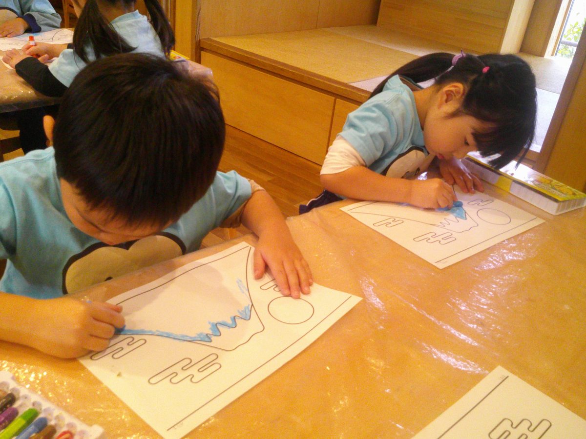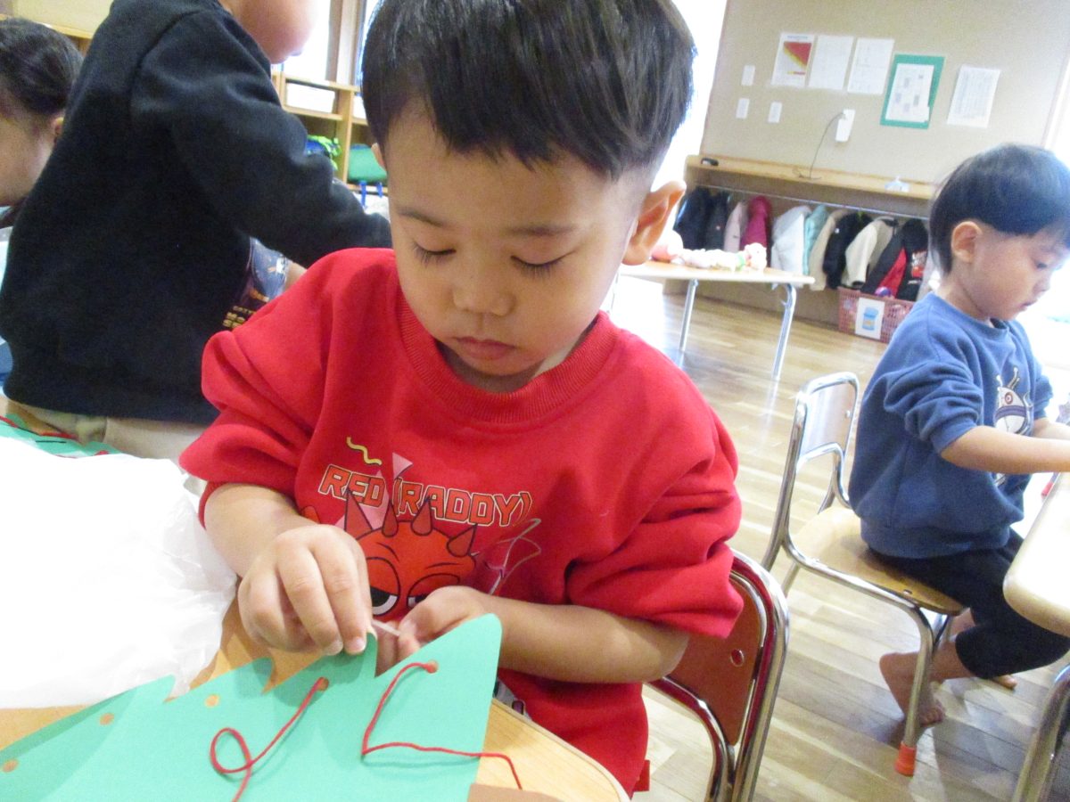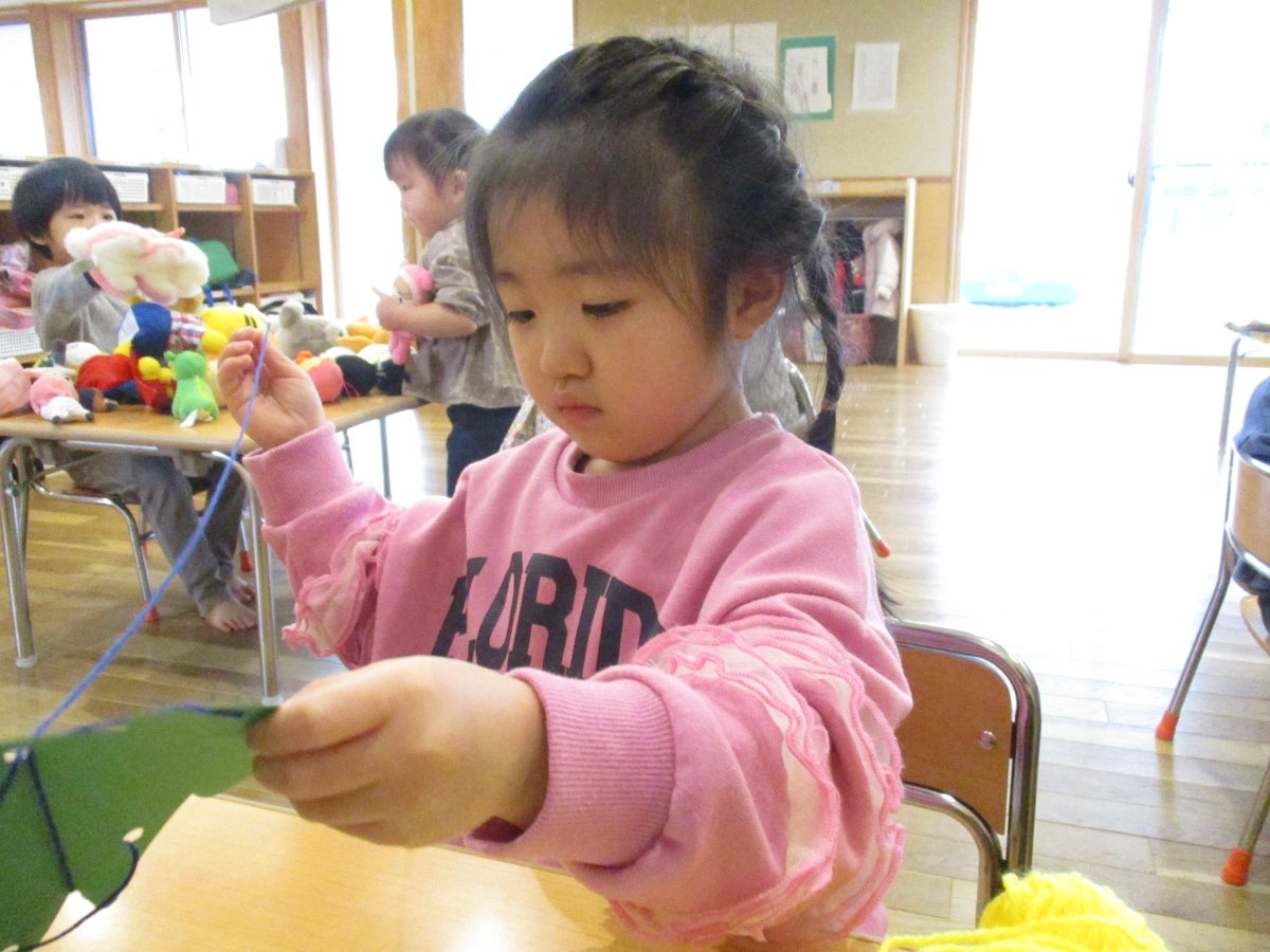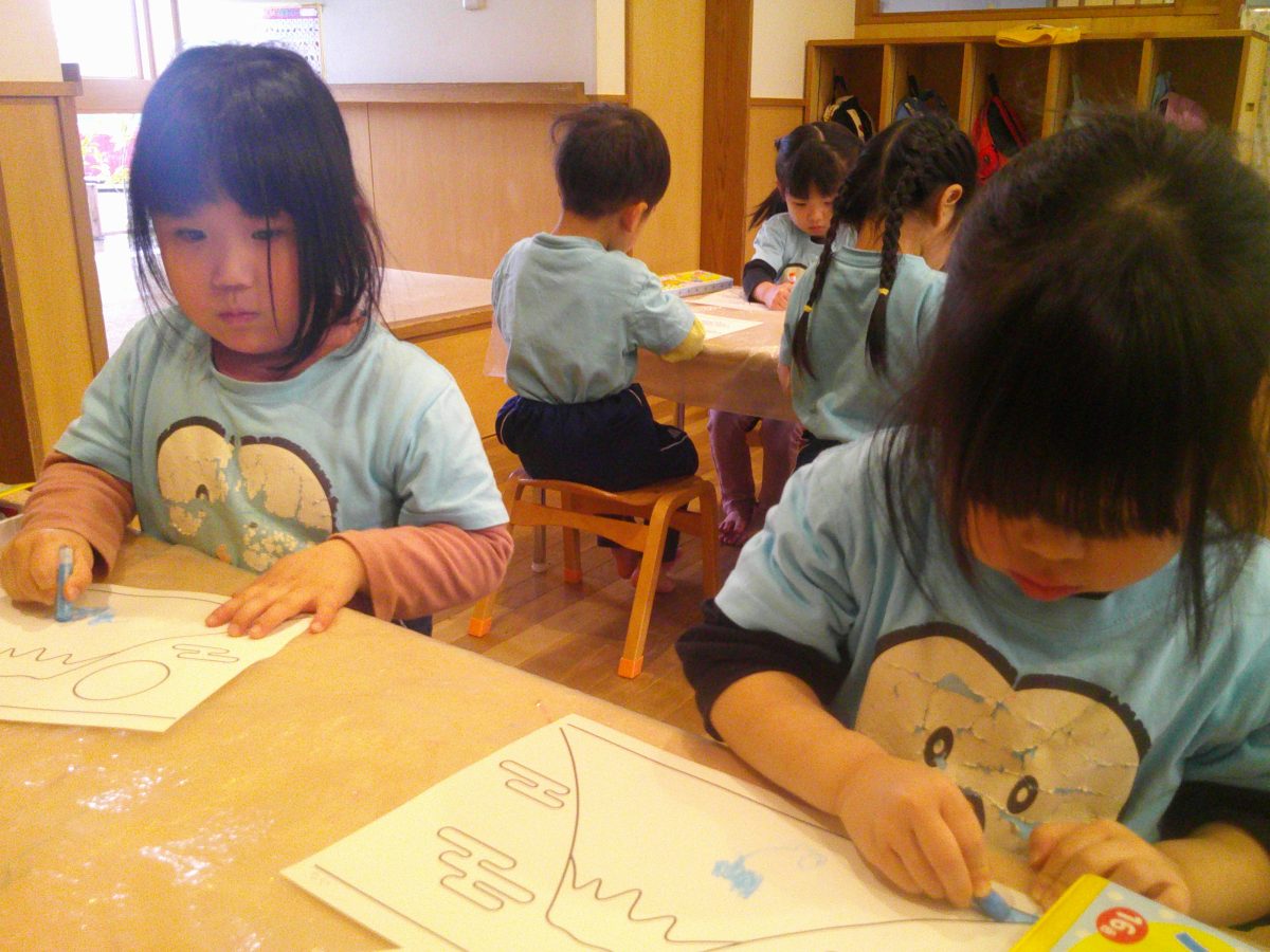 今日は、製作をして過ごしました!順番を待っている間はぬいぐるみでおままごとや、絵本にブロックで遊んで過ごしました!