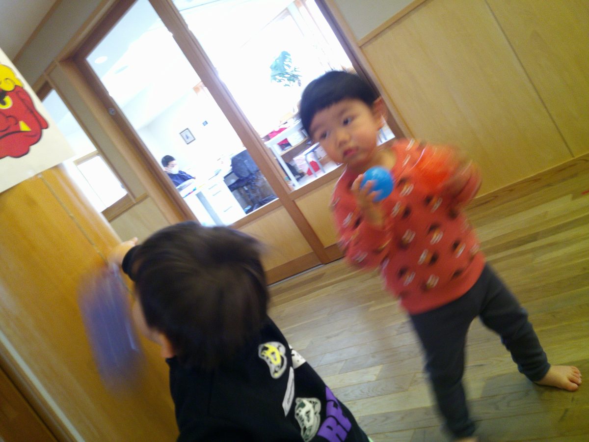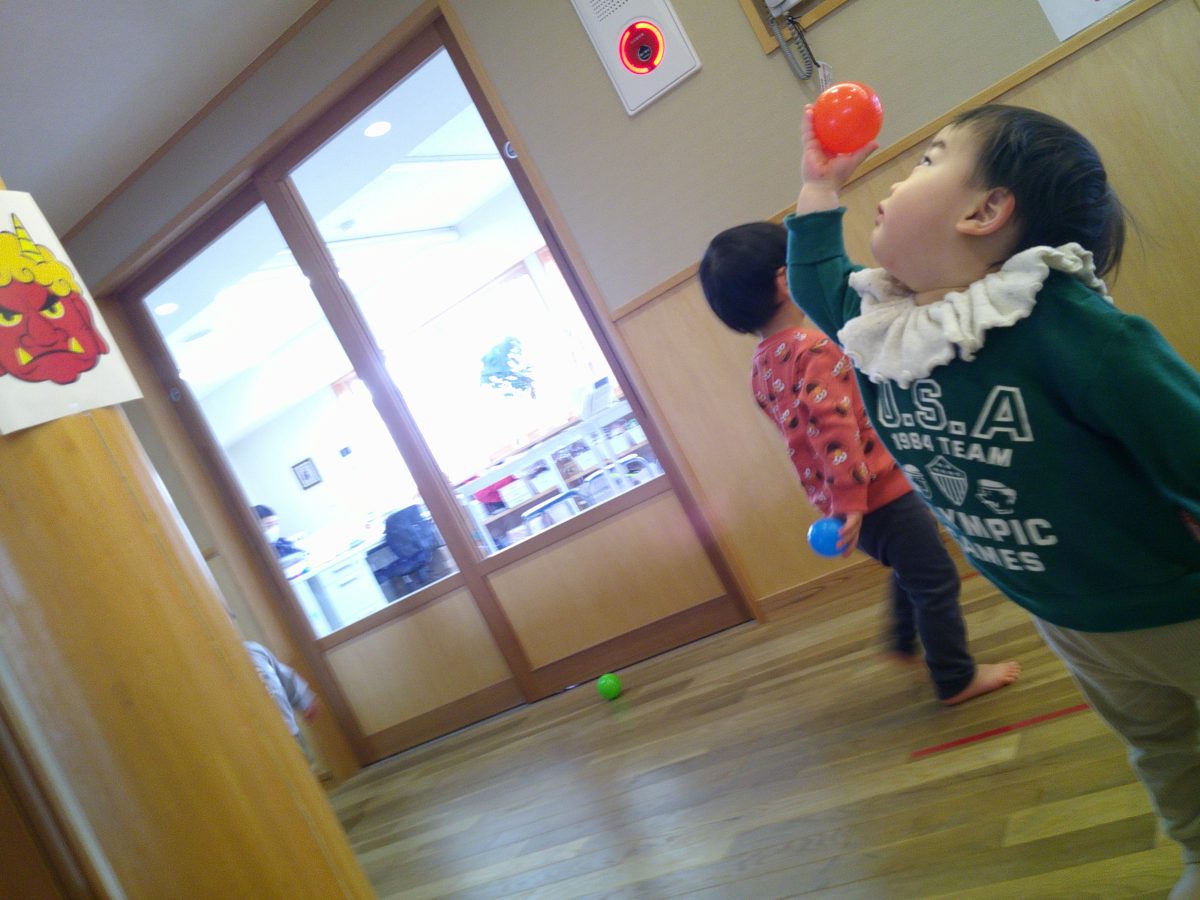 来月の節分に向けて鬼さんにボールを当てる練習をしました👹
