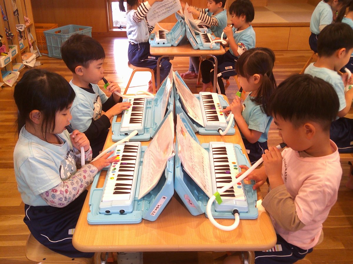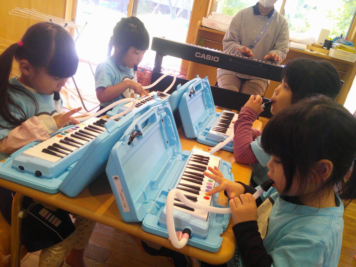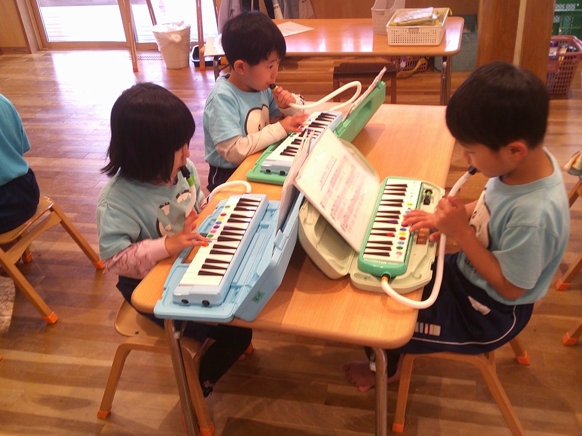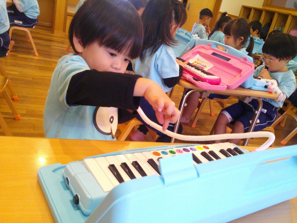 鍵盤ハーモニカでは、先生のピアノの音をよく聞いて取り組みました!
