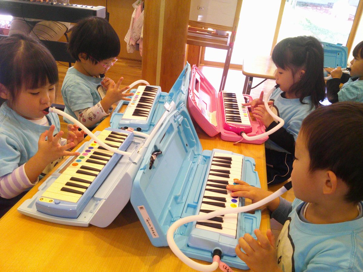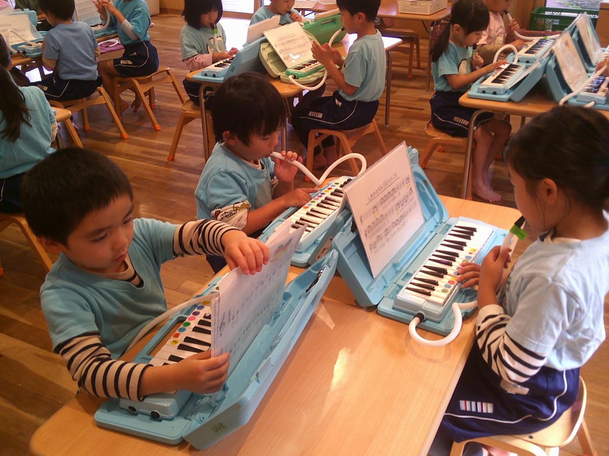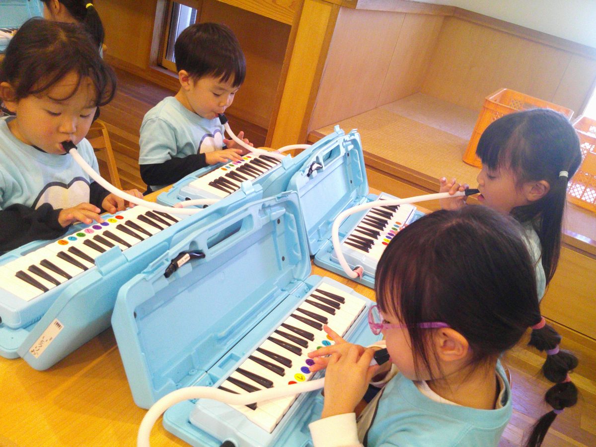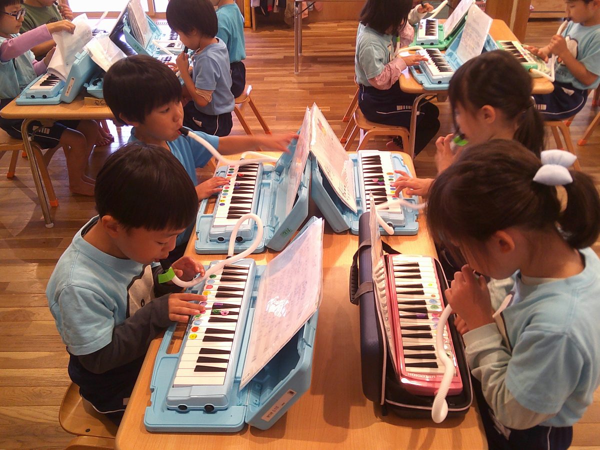鍵盤ハーモニカでは、先生のピアノの音をよく聞いて取り組みました!