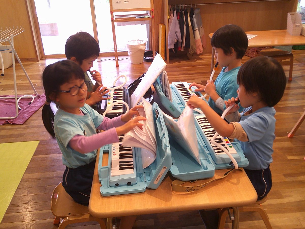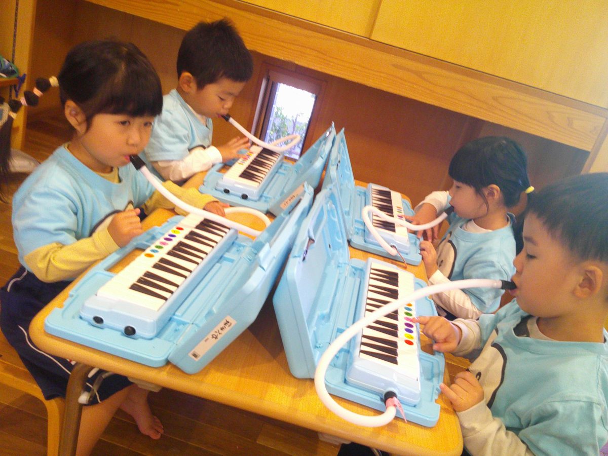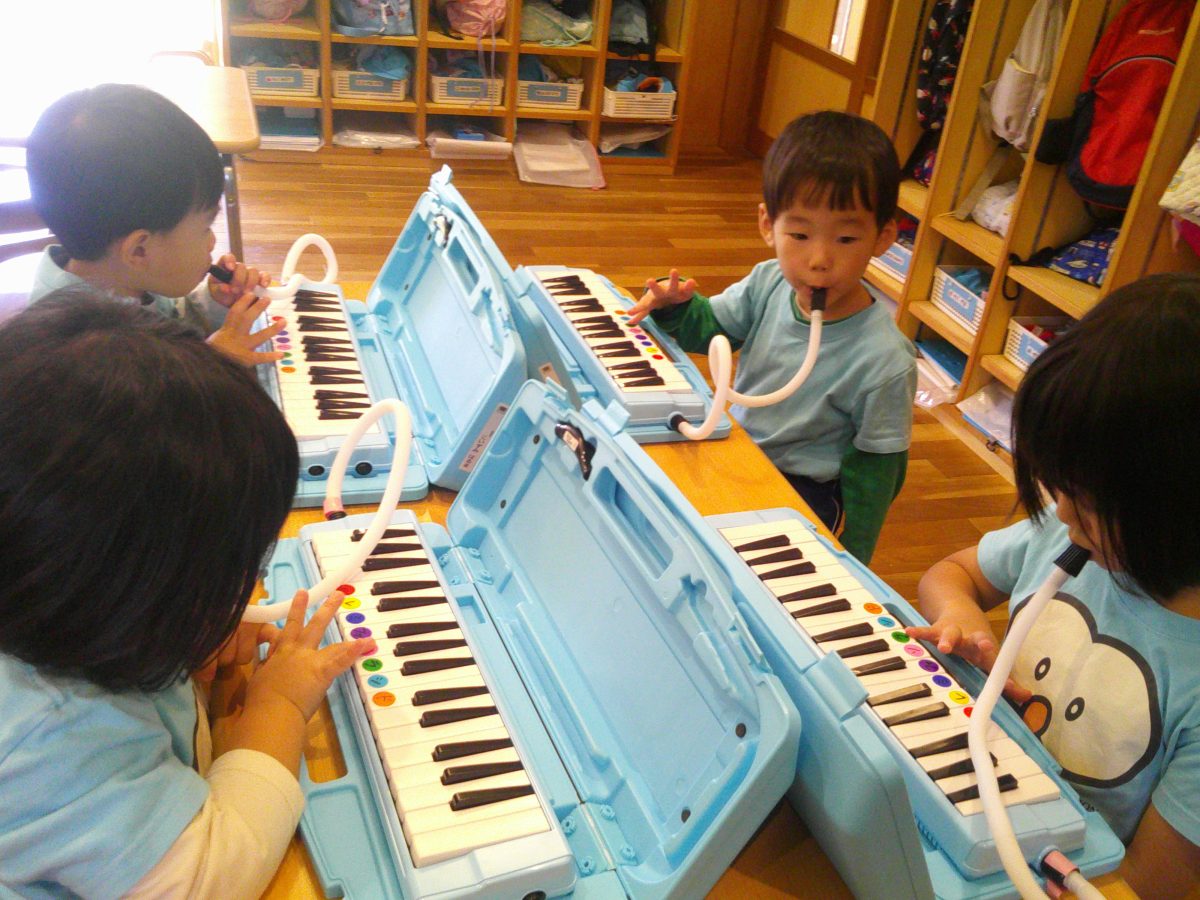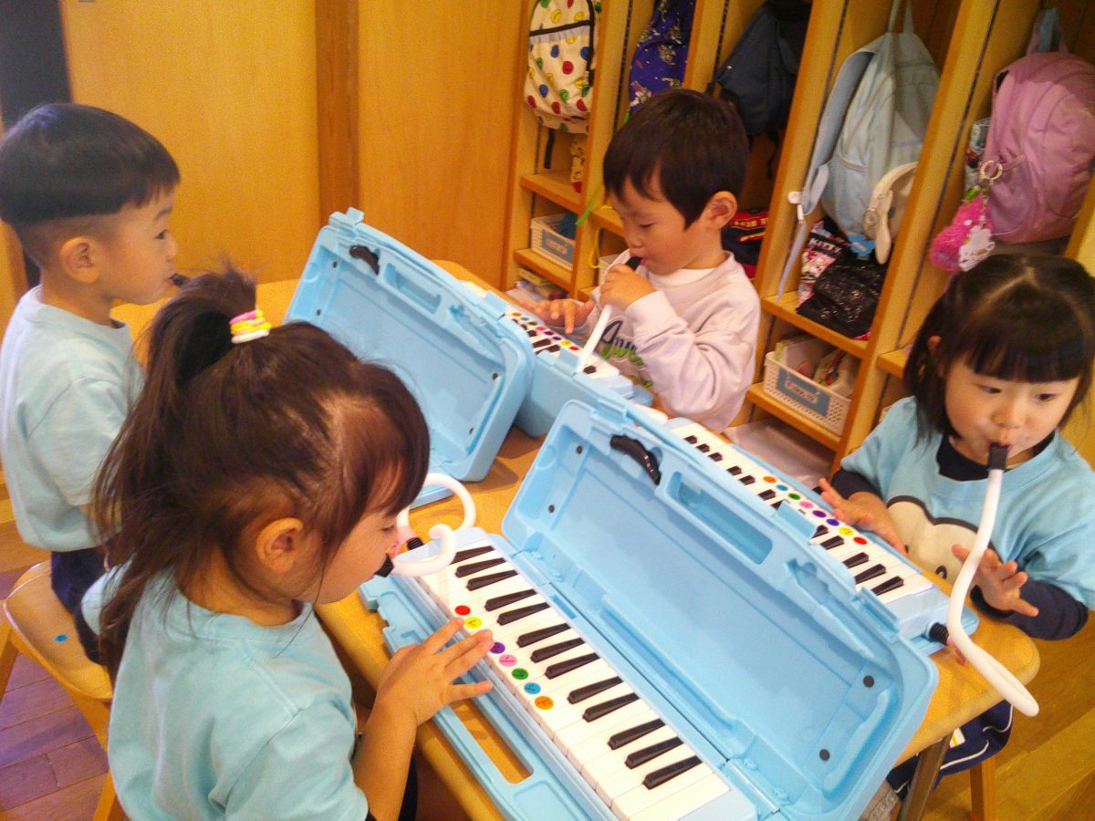 鍵盤ハーモニカでは、先生のピアノの音をよく聞いて取り組みました!