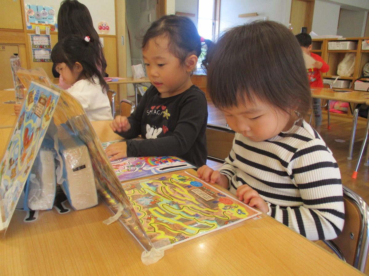 今日はお部屋で迷路やお弁当やさんごっこで遊んでから、園庭で遊んで過ごしました🍱