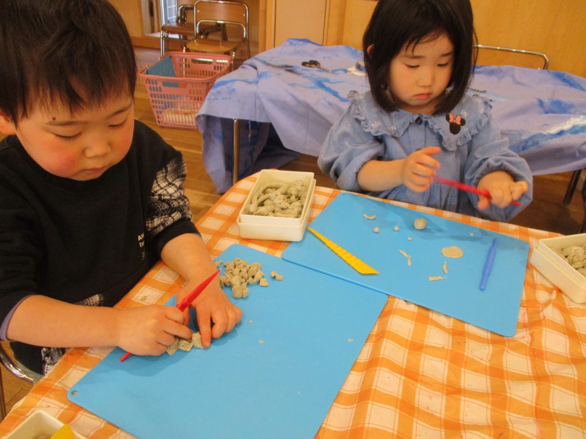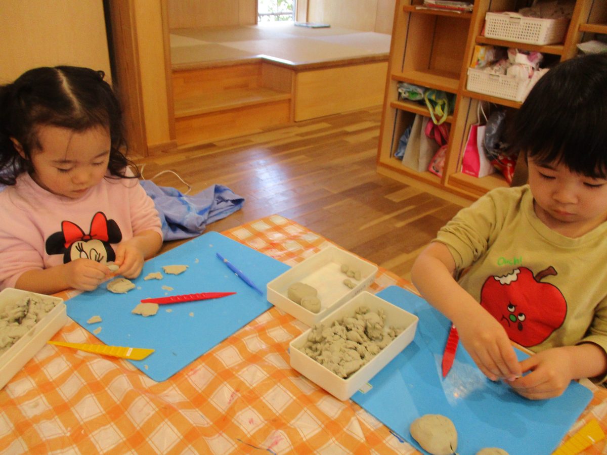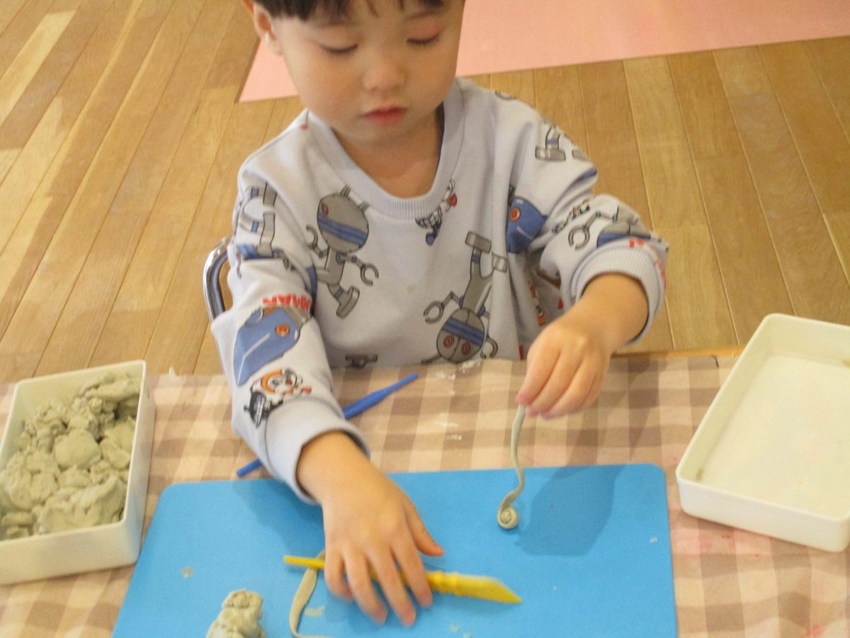 お部屋に戻ってからは粘土遊び🌟何を作ろうかなと想像を膨らませていました◎