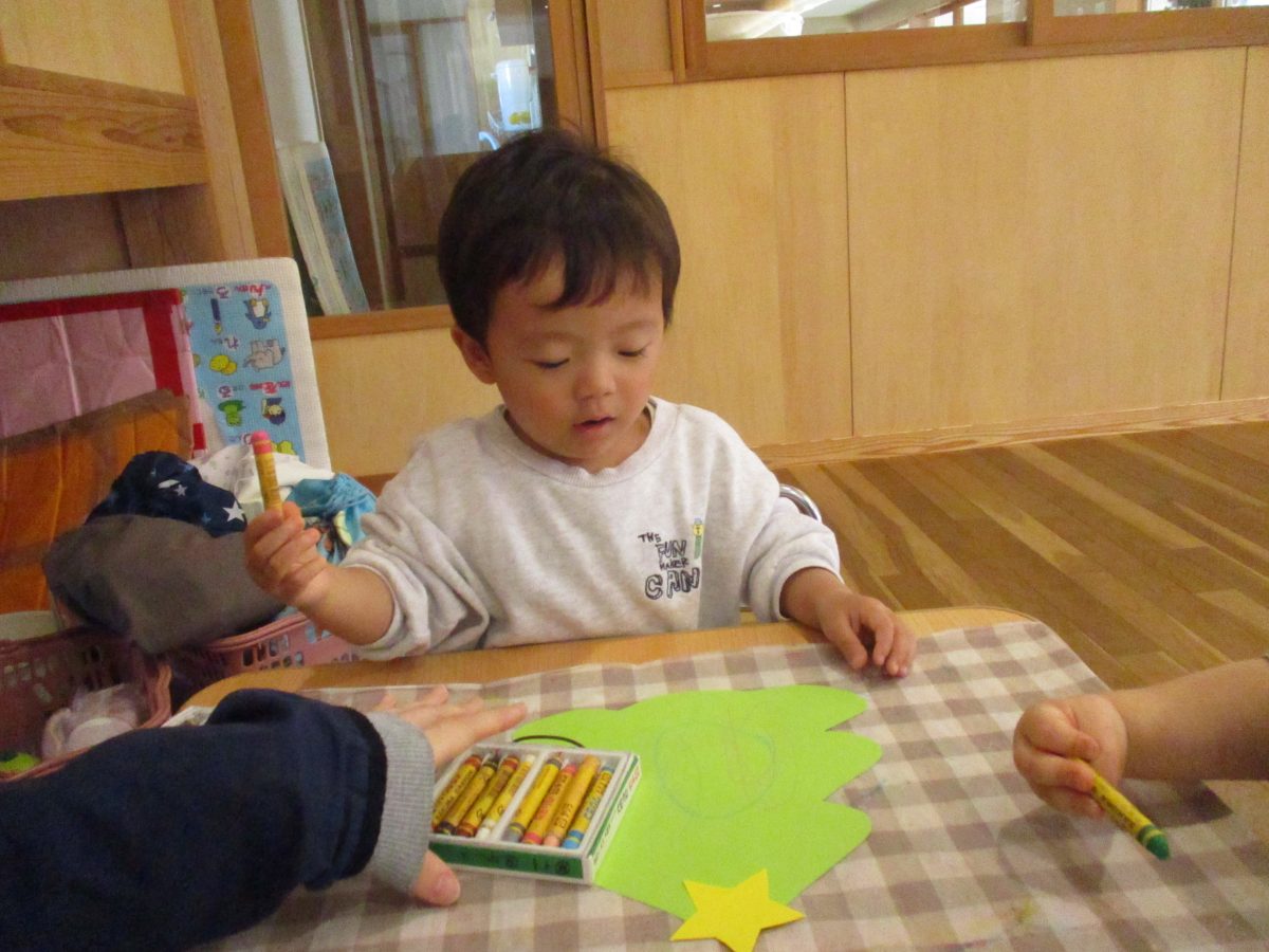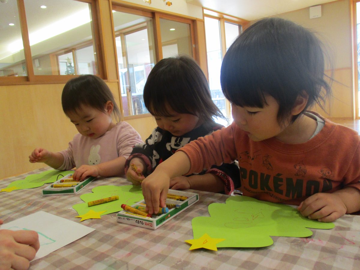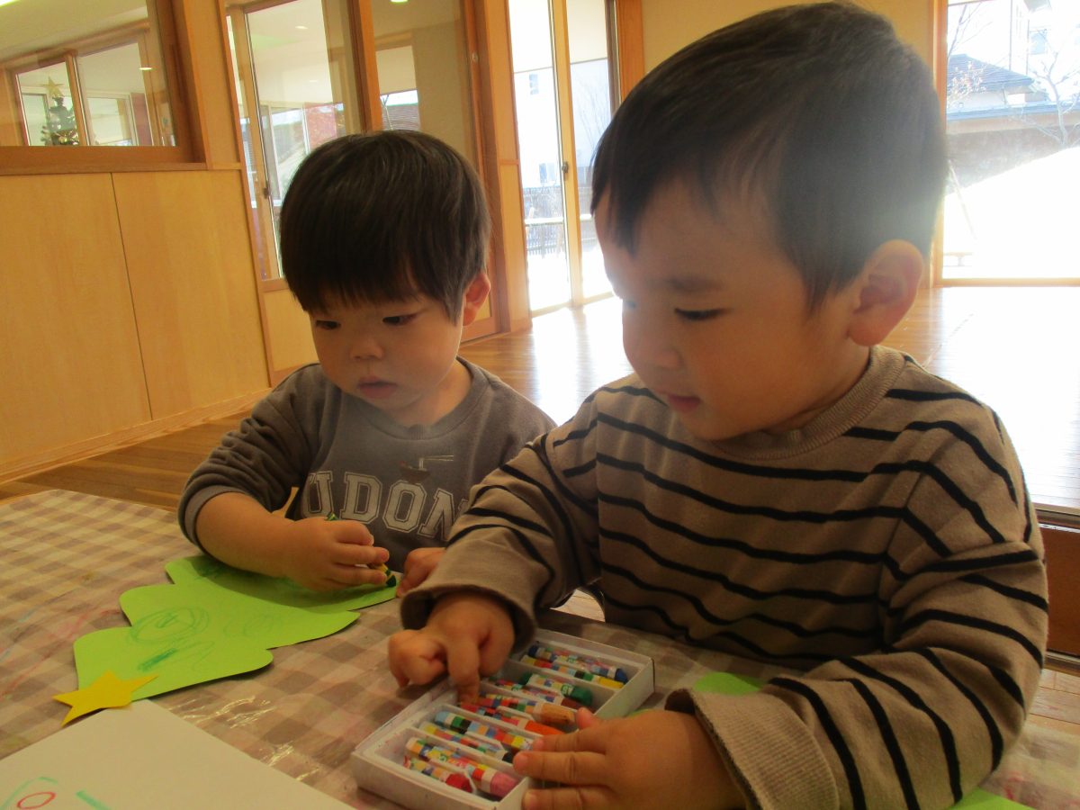 今日はクリスマス製作🎄で画用紙に絵を描きましたよ!